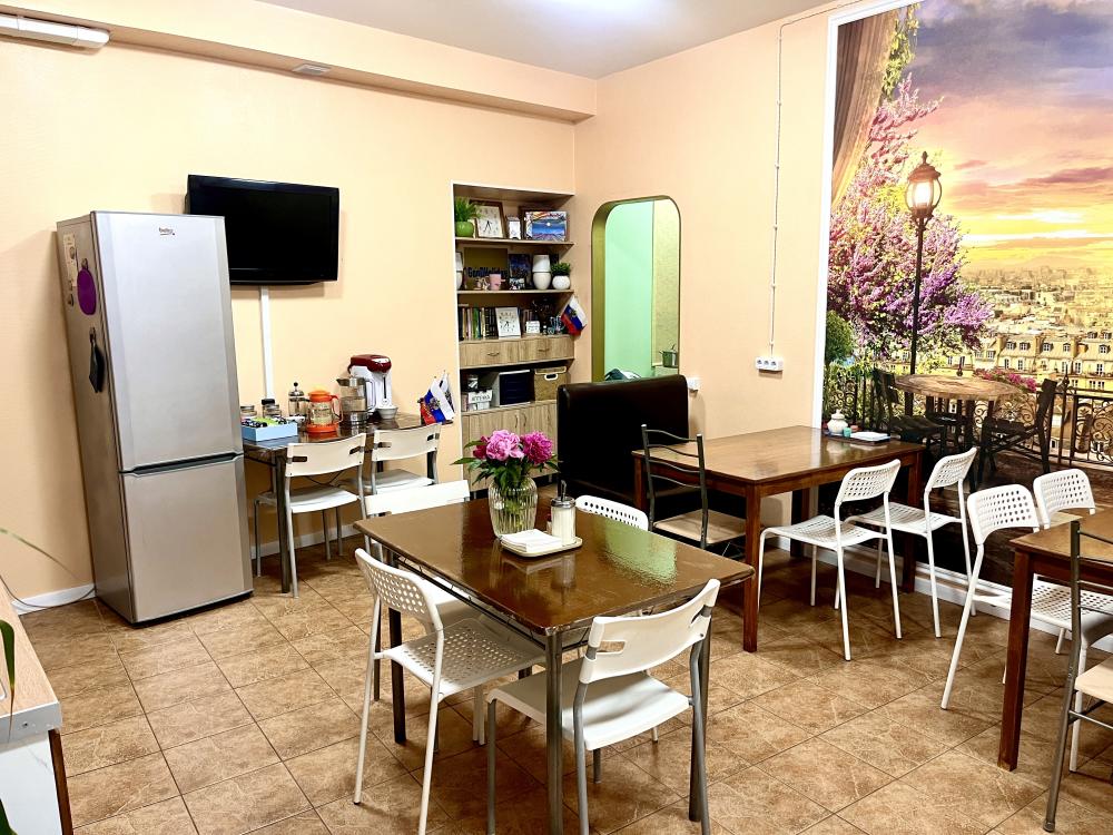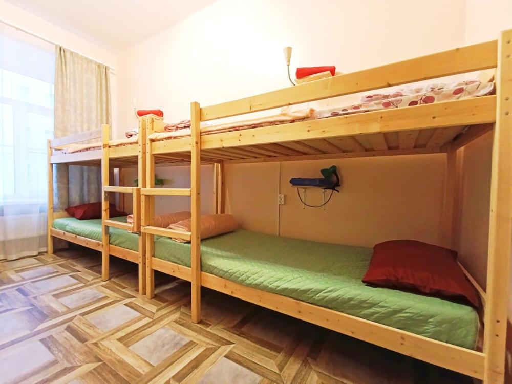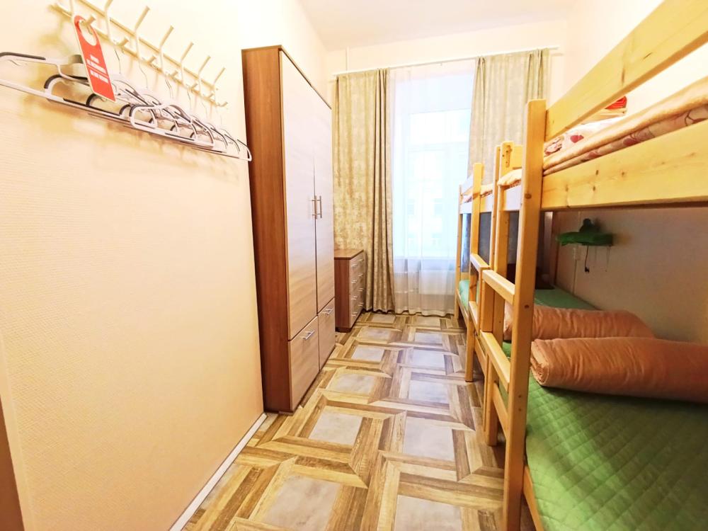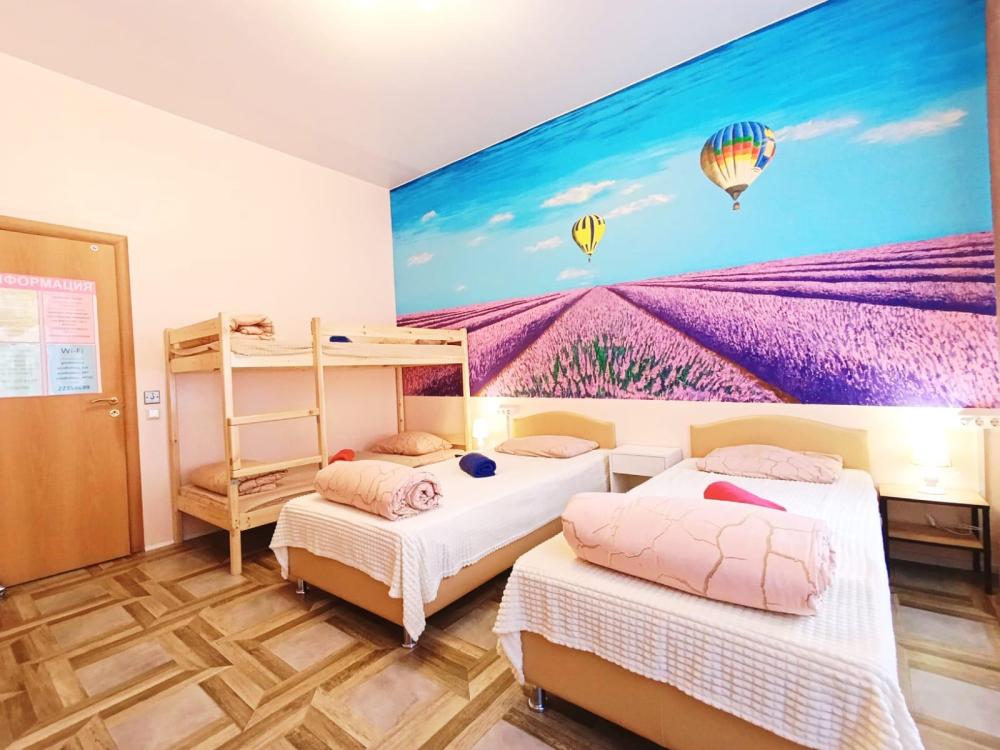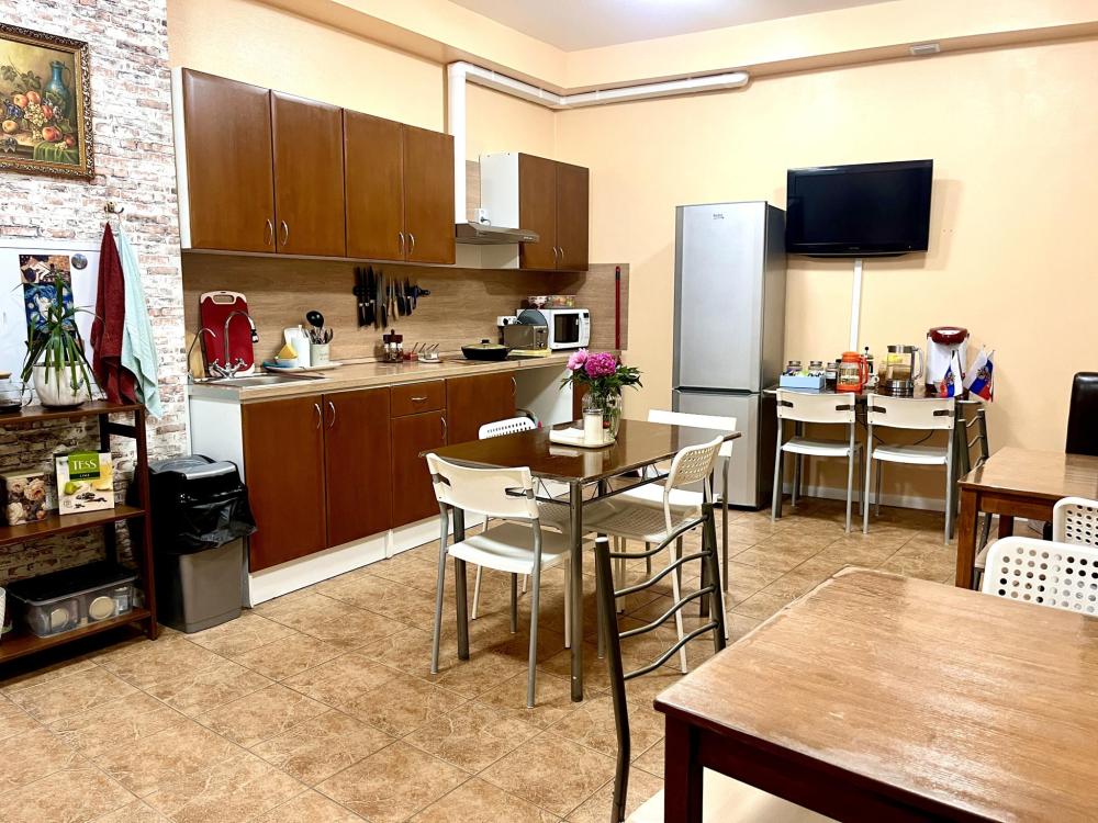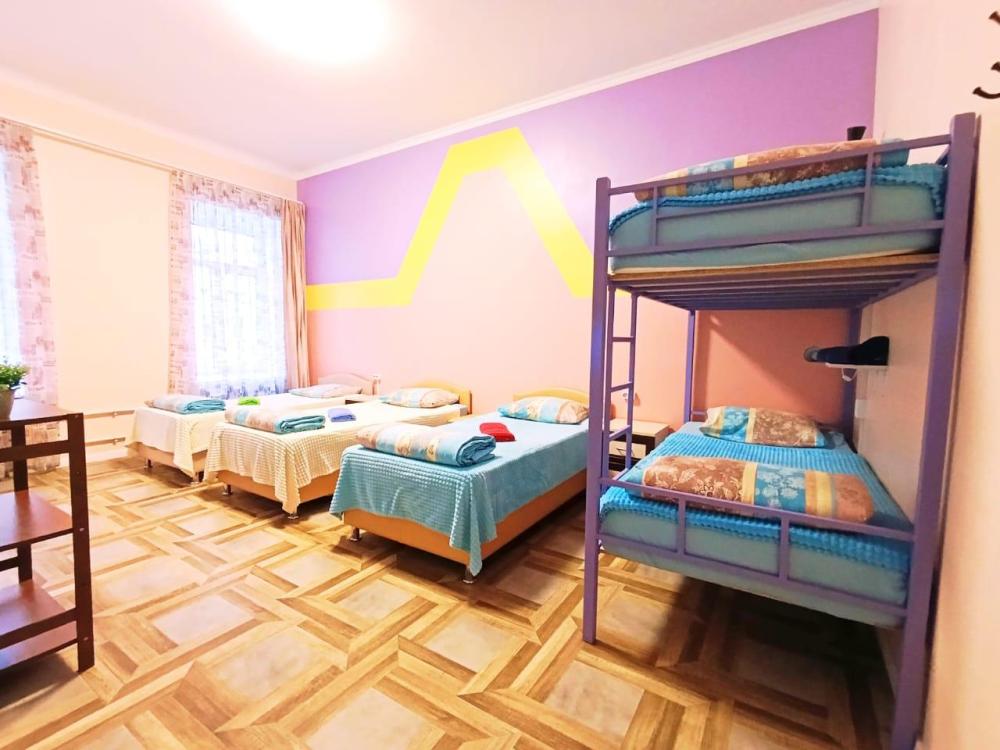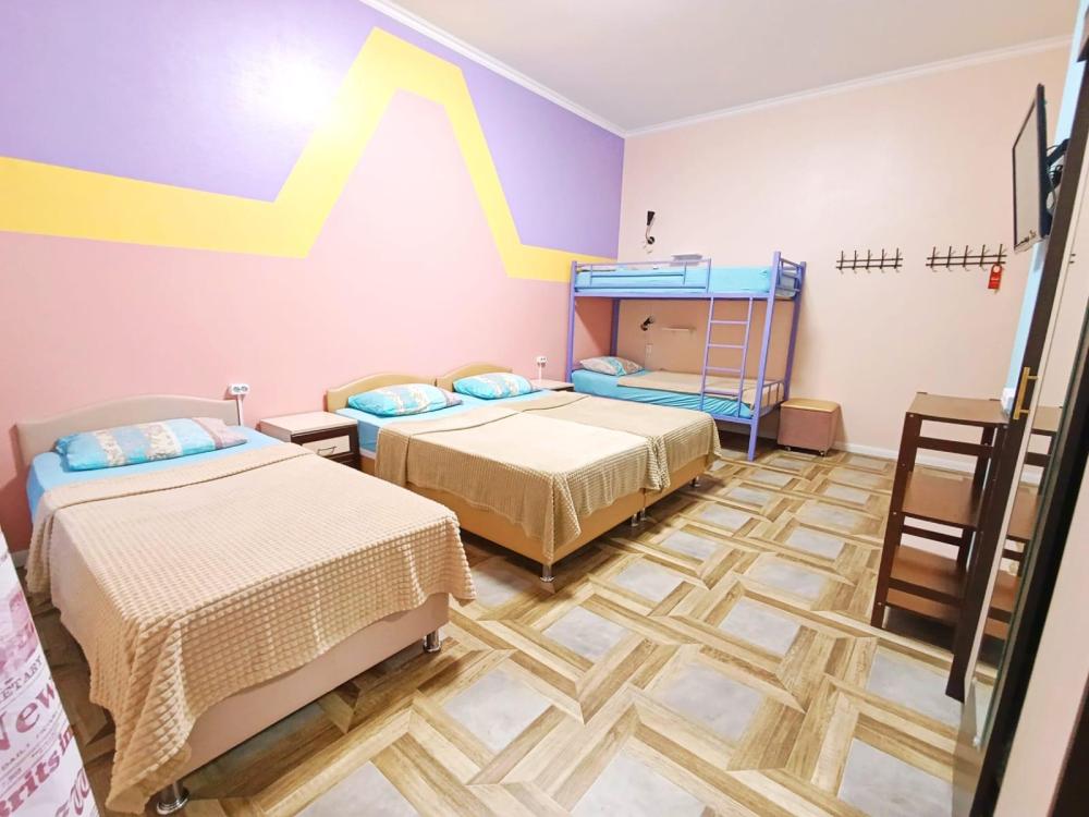 4-х местная стандартная комната, идеально подходящая, как для большой семьи, так и для дружной компании. В комнате есть 2 двухъярусные деревянные кровати 90х200 см, комфортные матрасы, подушки гречишные с ортопедическим эффектом, комод, стеллаж и настенная вешалка для вещей, зеркало, стол и стулья. Для гостей оборудованы общие санузлы и душевые: 3 санузла и 2 душевые на 7 комнат. В большой общей кухне-гостиной есть все необходимое: два холодильника, электрическая панель, микроволновая печь, тостер, термопот, посуда для приготовления и принятия пищи, чай, кофе, какао. Также в общем доступе есть гладильная доска, утюг, стиральная машина, фены.