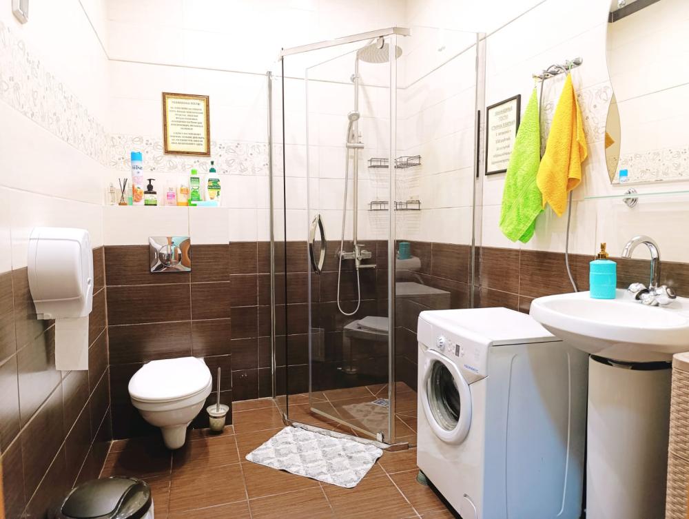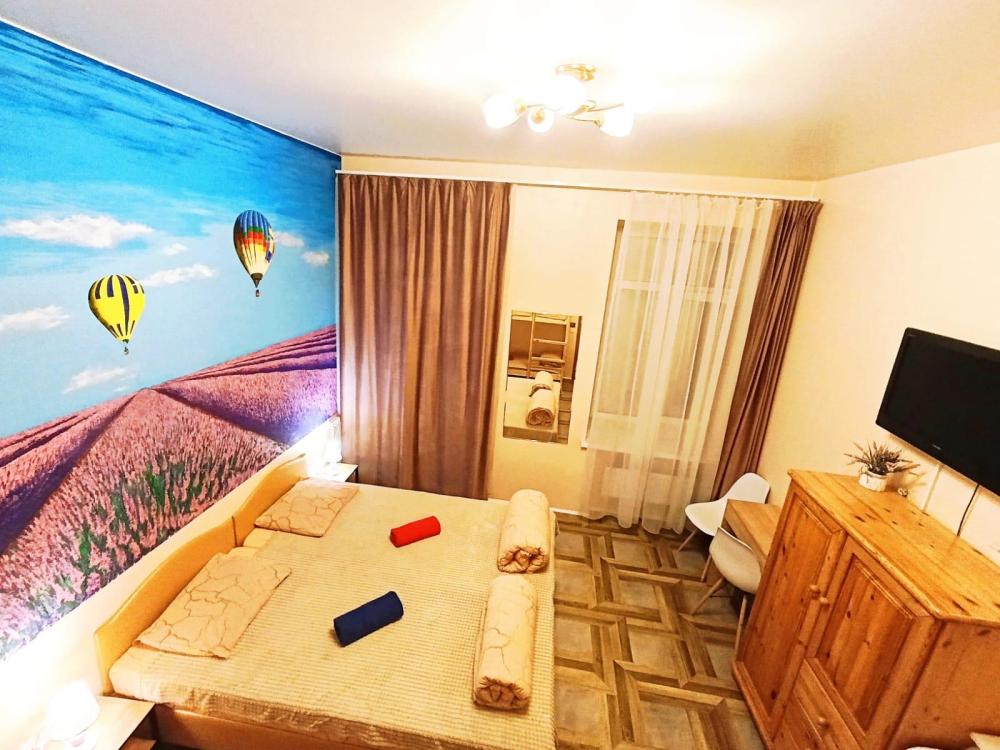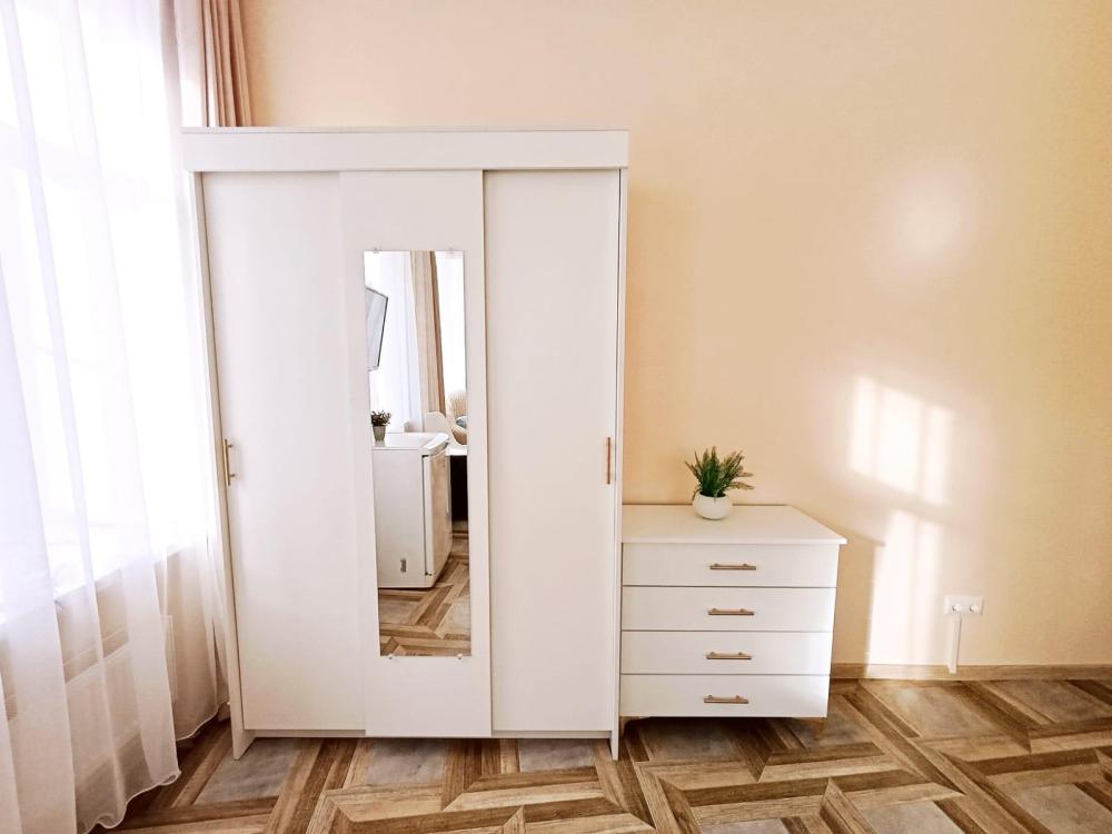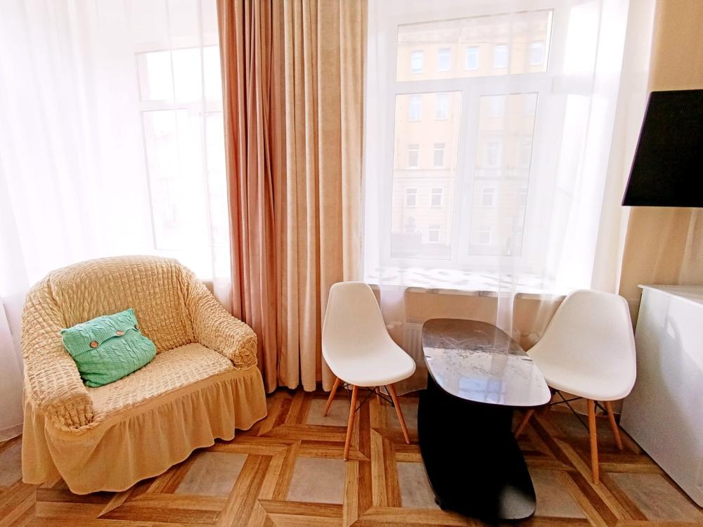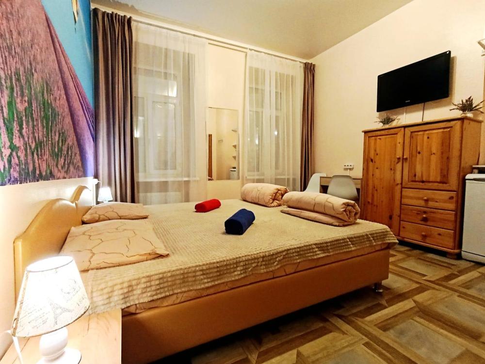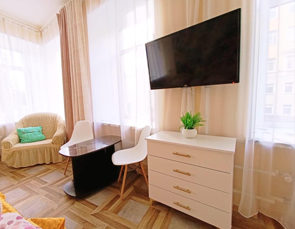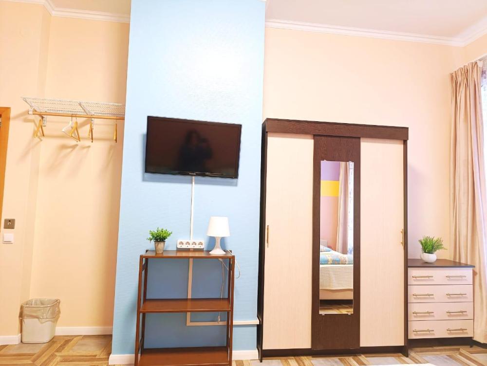 Большая 3- х местная видовая комната с 5 окнами. В комнате: 3 односпальные кровати, телевизор, шкаф-купе, комод для вещей, прикроватные тумбы, светильник, журнальный стол и стулья, телевизор и мини-холодильник. Для гостей оборудованы общие санузлы и душевые: 3 санузла из низ 2 душевые, совместно с туалетом и 1 туалет отдельный на 7 комнат. В большой общей кухне-гостиной есть все необходимое: два холодильника, электрическая панель, микроволновая печь, тостер, термопот, посуда для приготовления и принятия пищи, чай, кофе, какао. Также в общем доступе есть гладильная доска, утюг, стиральная машина, фены.