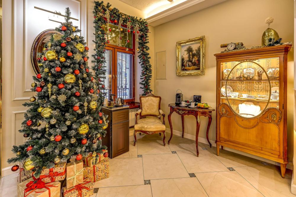 Просторные двухкомнатные апартаменты. Высокие потолки, большие окна с видом на тихий внутренний дворик делают пространство светлым и просторным. Антикварная мебель из древесины грушевого дерева, подвесные люстры, старинный трельяж, паркет из красного дерева насыщают апартаменты атмосферой покоя и расслабленности. Всё дышит традициями классической петербургской квартиры XIX века. Первая комната - уютная гостиная с раскладным двуспальным диваном и вторая комната - отдельная камерная спальная с двуспальной кроватью. В каждой комнате есть вместительный гардероб. В Вашем распоряжении - ванная комната с душем, чайный набор, фен, косметическая продукция, шапочка для душа, тапочки. Апартаменты оборудованы кондиционером, доступен бесплатный wi-fi. Наши гости могут воспользоваться услугами питания четырехзвездочного отеля, расположенного в том же комплексе.