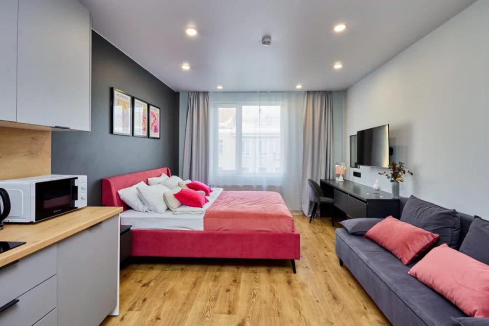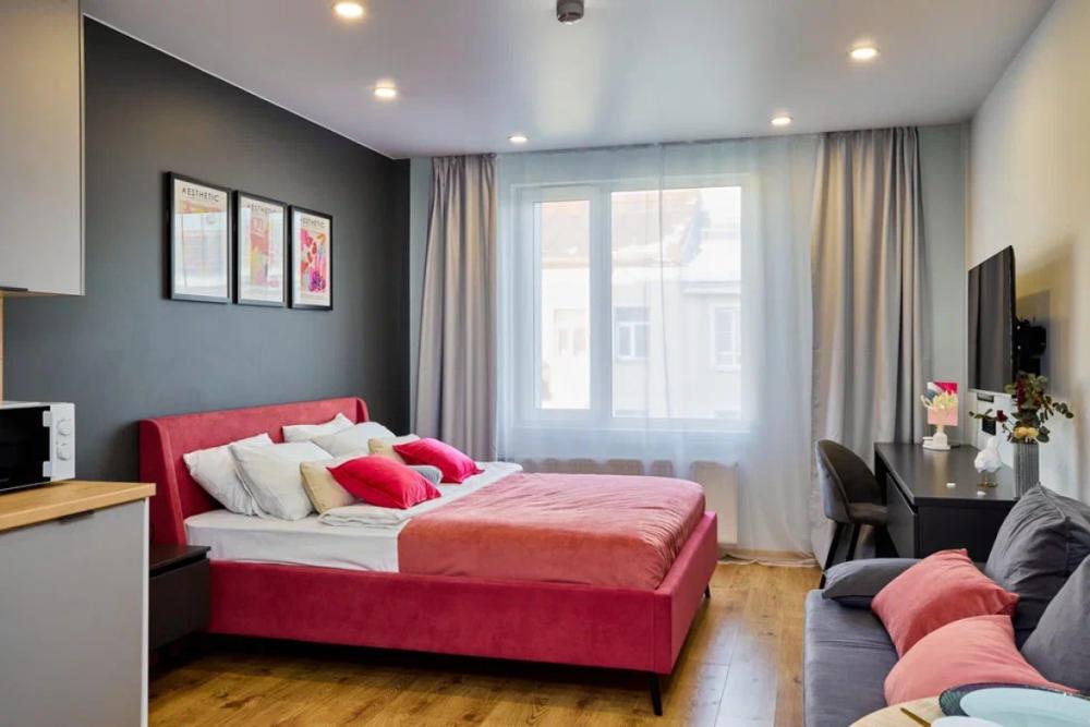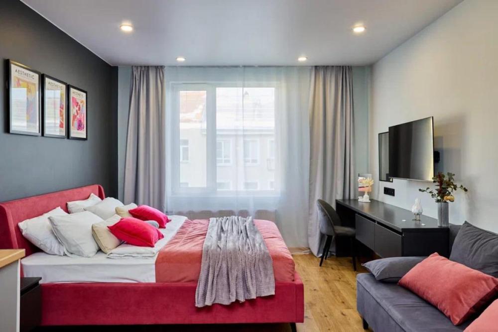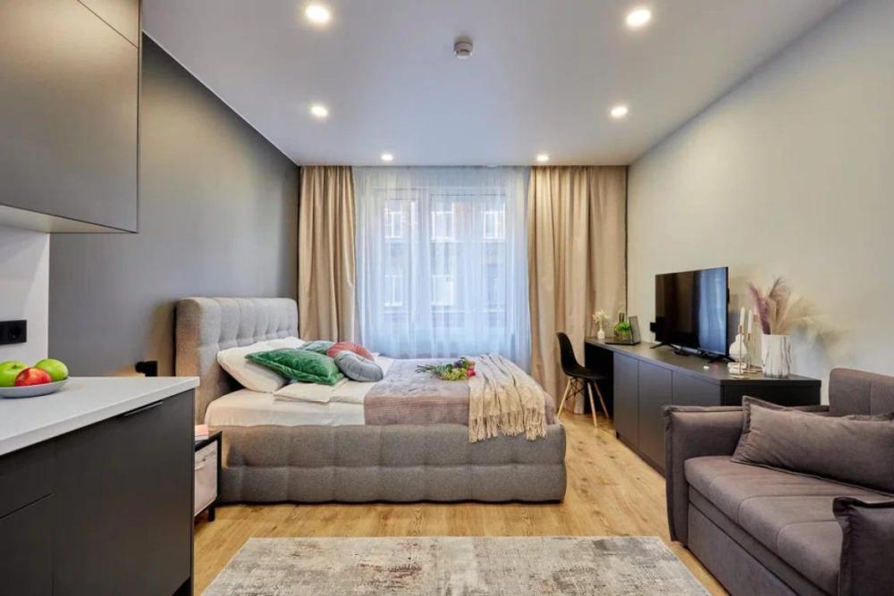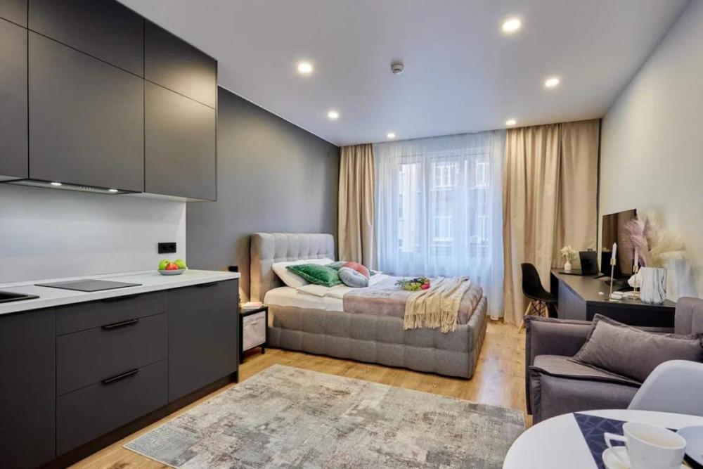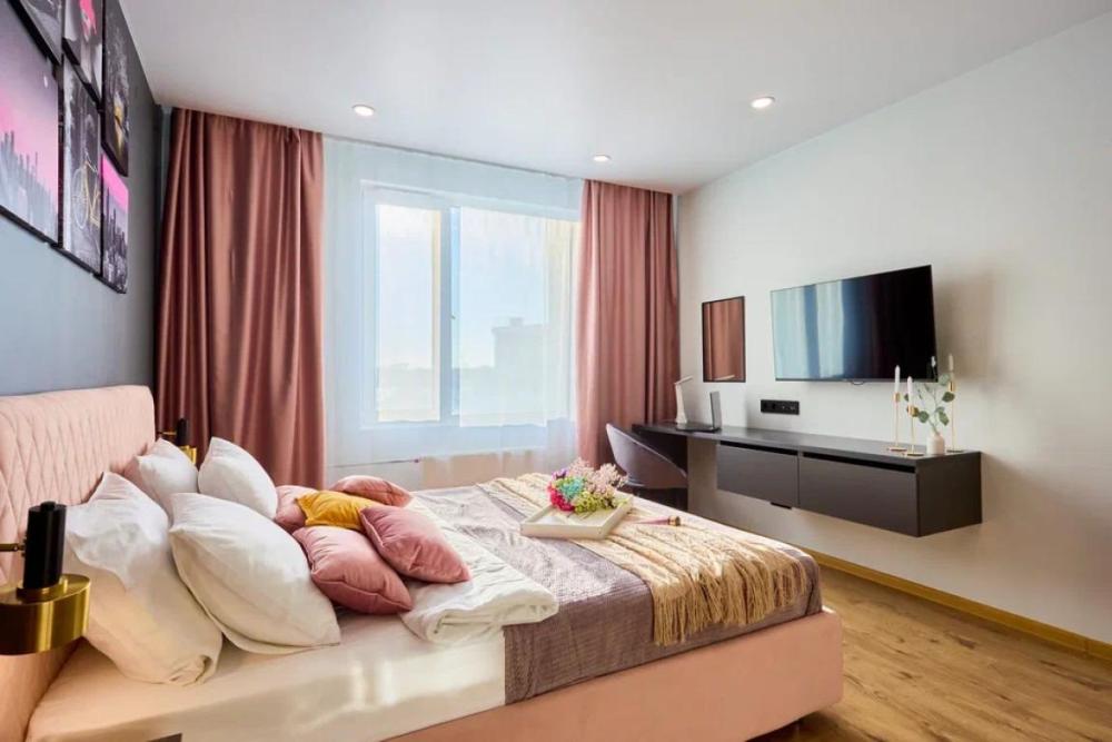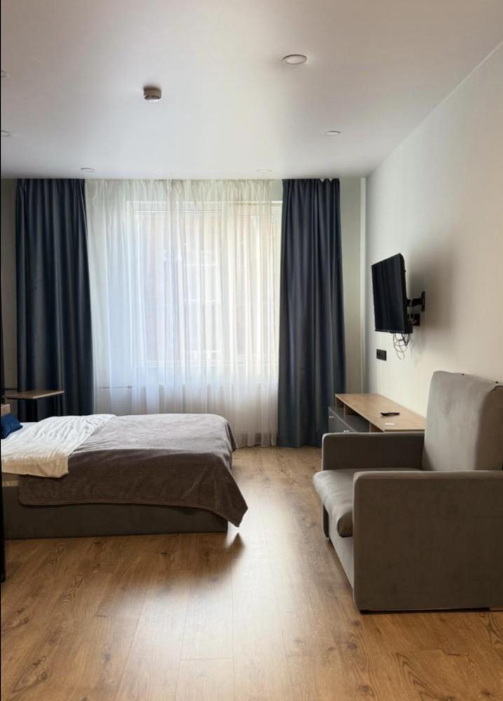 Новые стильные апартаменты. Оснащены всем необходимым. Кухня с набором посуды, чайник. Wi-fi, телевизор. Стиральная машина, фен, утюг. Холодильник. Набор постельного белья, набор полотенец.