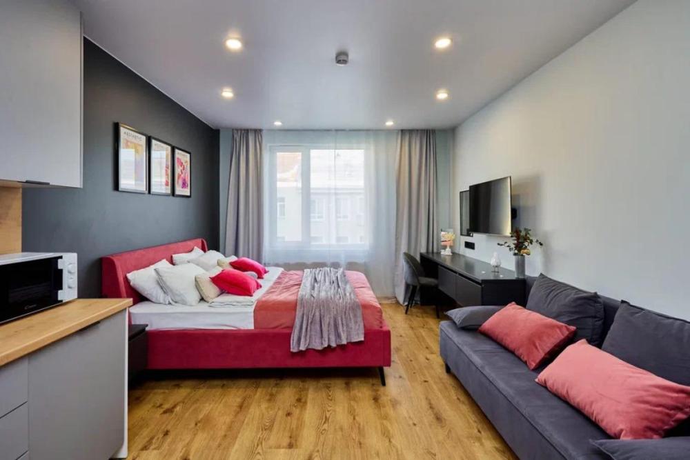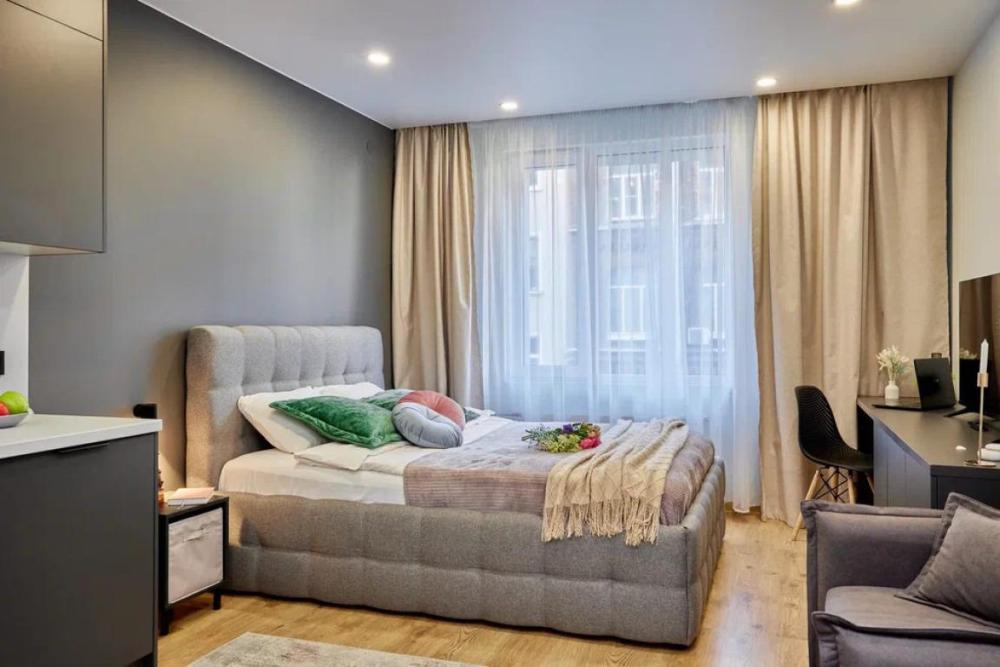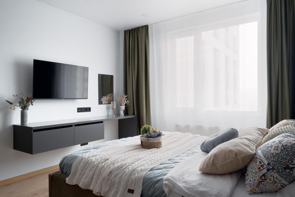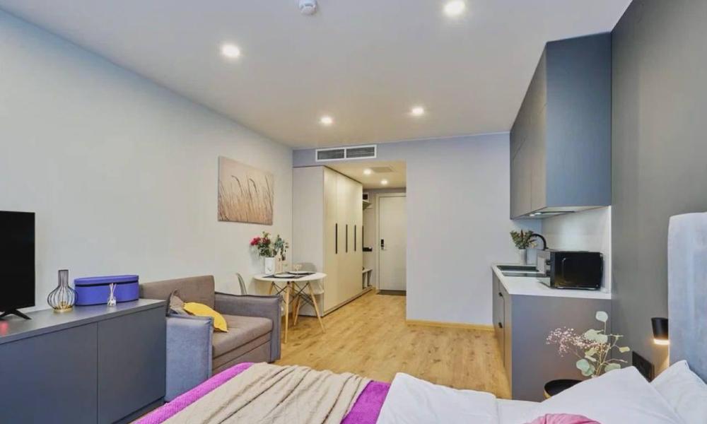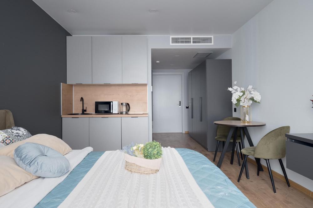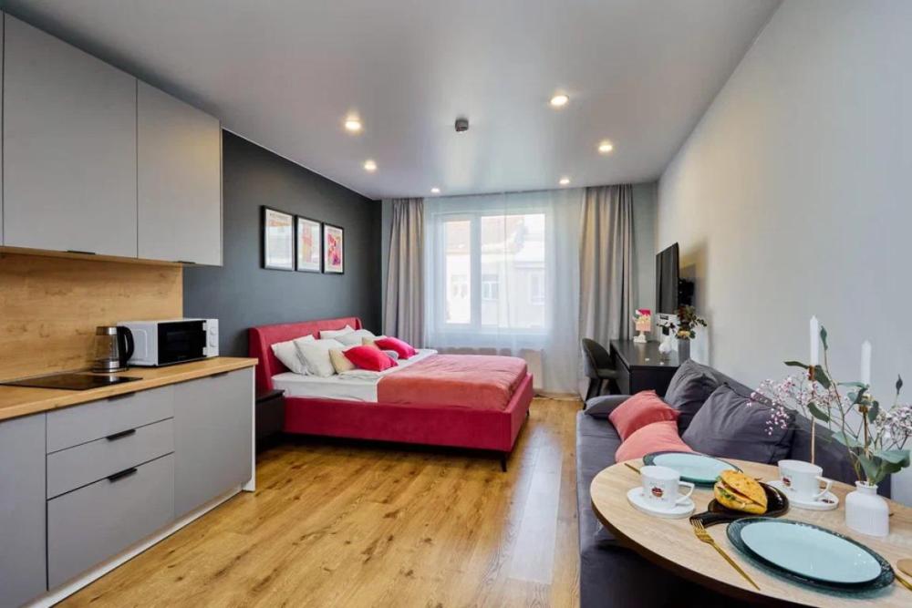 Новые стильные апартаменты. Оснащены всем необходимым. Кухня с набором посуды, чайник. Wi-fi, телевизор. Стиральная машина, фен, утюг. Холодильник. Набор постельного белья, набор полотенец.