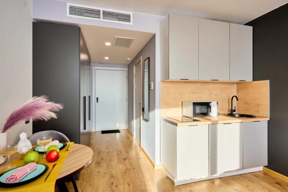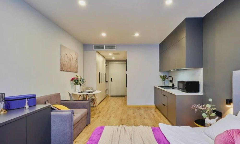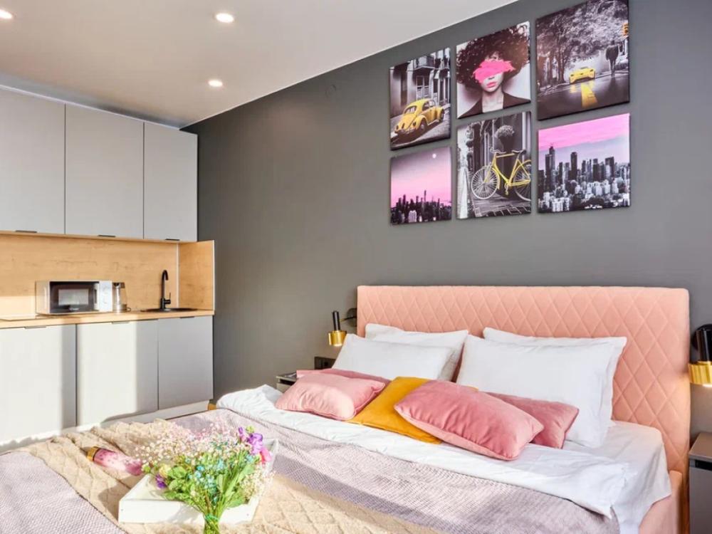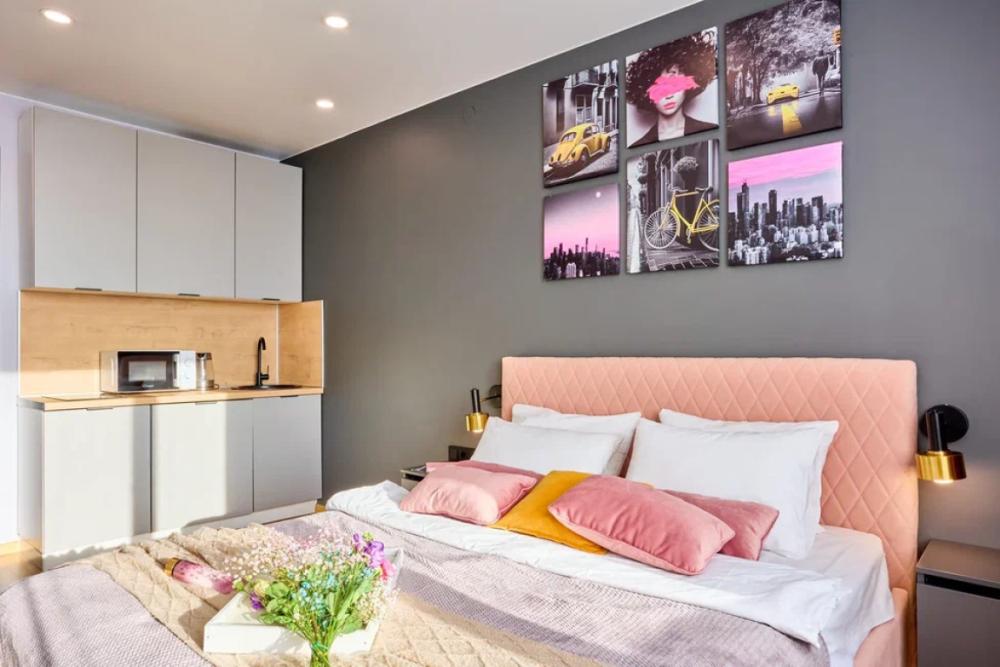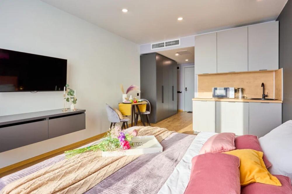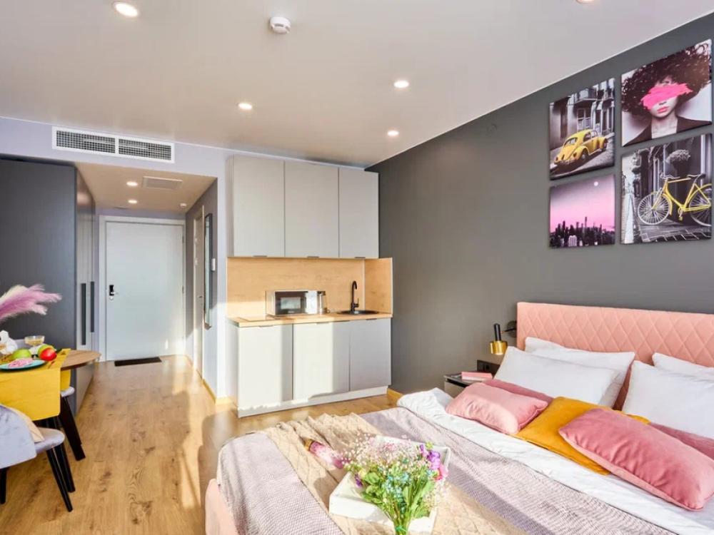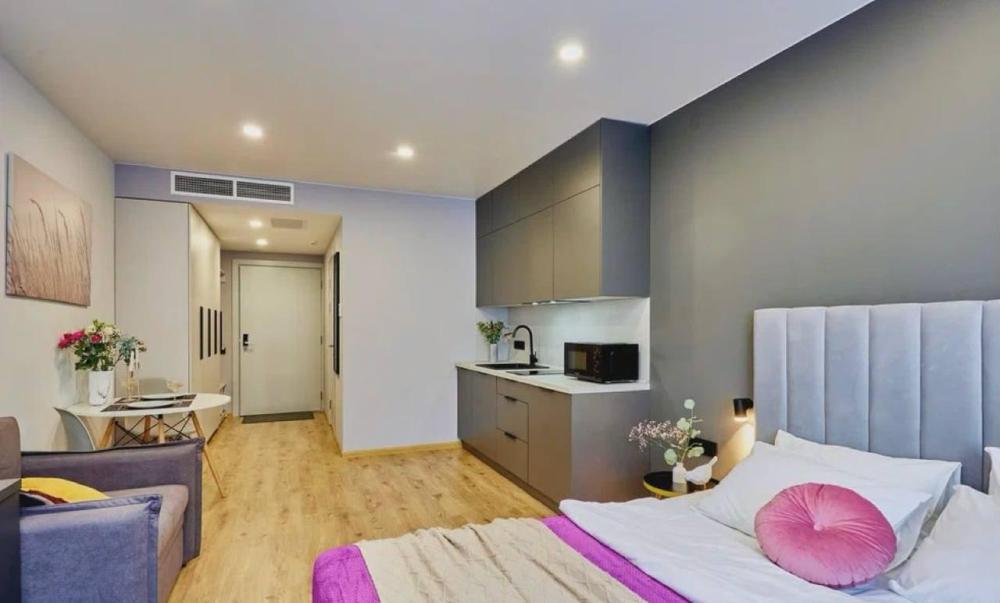 Новые стильные апартаменты. Оснащены всем необходимым. Кухня с набором посуды, чайник. Wi-fi, телевизор. Стиральная машина, фен, утюг. Холодильник. Набор постельного белья, набор полотенец.