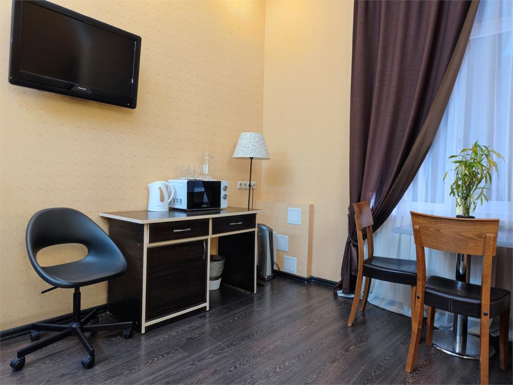Апартаменты с двумя раздельными кроватями, собственной ванной комнатой с душем, туалетом и раковиной. В наличии: микроволновая печь, в которой можно приготовить или разогреть обед, холодильник, электрический чайник и столовые приборы. Дополнительное удобство: рабочий стол. Рядом с апартаментами вы сможете поужинать в понравившемся кафе, сходить в кино или пройтись по вечерней набережной Невы и насладиться красотой достопримечательностей этого романтичного города. Такой отдых оставит незабываемые впечатления и яркие воспоминания от пребывания в центре Петербурга.