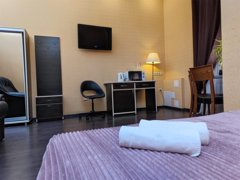 Апартаменты с двуспальной кроватью, собственной ванной комнатой с душем, туалетом и раковиной. При необходимости в качестве дополнительного места предоставляется раскладушка. В наличии: микроволновая печь, в которой можно приготовить или разогреть обед, холодильник, электрический чайник и столовые приборы. Дополнительное удобство: рабочий стол. Рядом с апартаментами вы сможете поужинать в понравившемся кафе, сходить в кино или пройтись по вечерней набережной Невы и насладиться красотой достопримечательностей этого романтичного города. Такой отдых оставит незабываемые впечатления и яркие воспоминания от пребывания в центре Петербурга. По запросу предоставляется дополнительное спальное место (услуга платная, предоставляется при наличии).