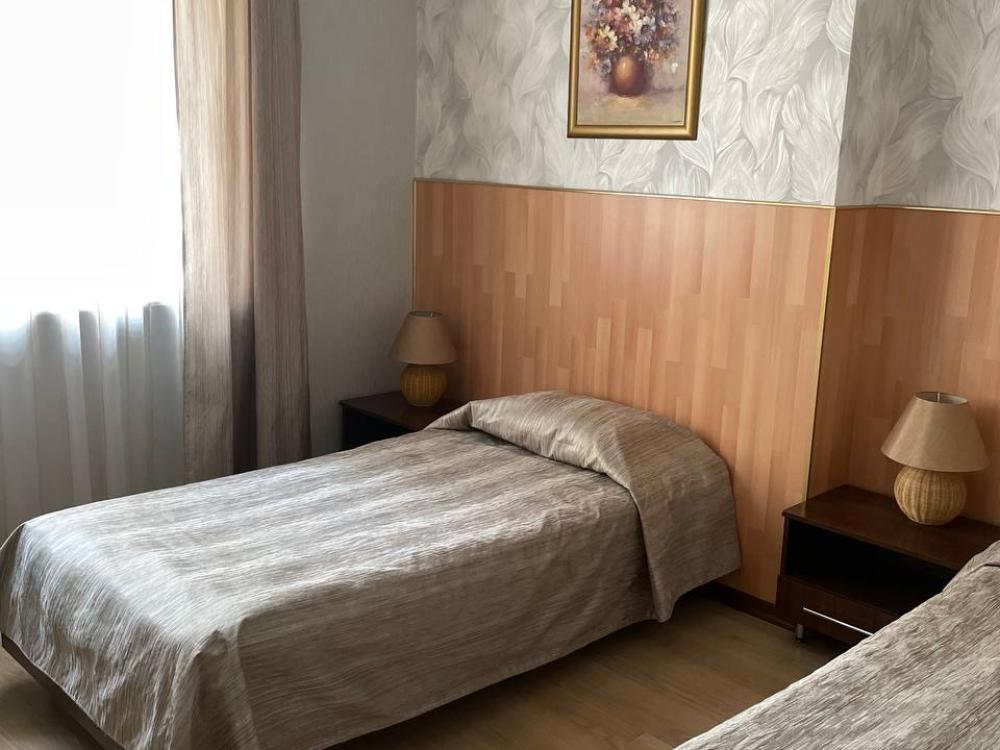 Элегантные трехкомнатные апартаменты (2 спальни и гостинная) площадью от 62 кв.м. расположенны на 4 этаже. В спальнях установлены кровати с прикроватными тумбочками и шкафе-купе с зеркальными створками. В гостиной есть диванный уголок и телевизор, телефон, Интернет, обеденный стол, зона кухни с газовой плитой и холодильником. Санузел оборудован классической ванной с душем и стиральной машиной