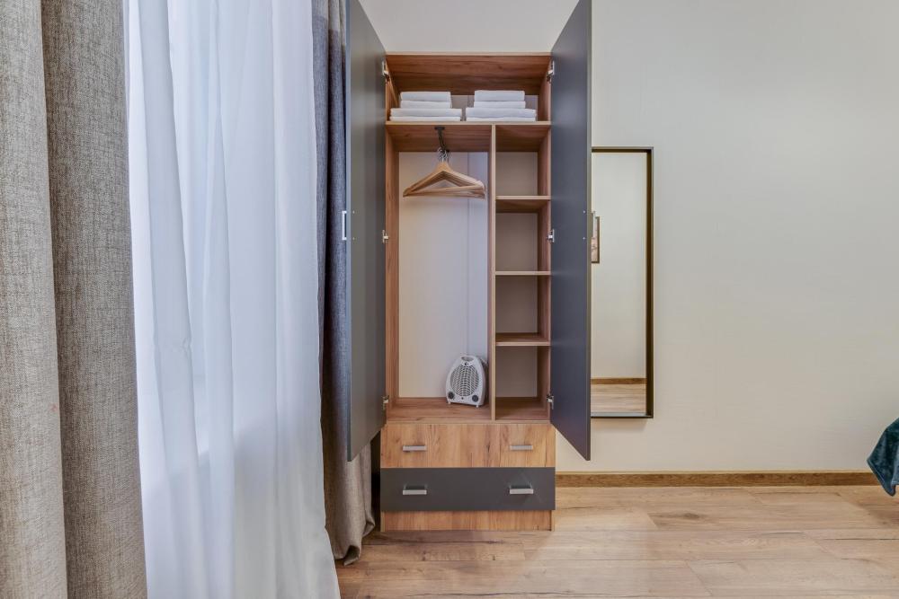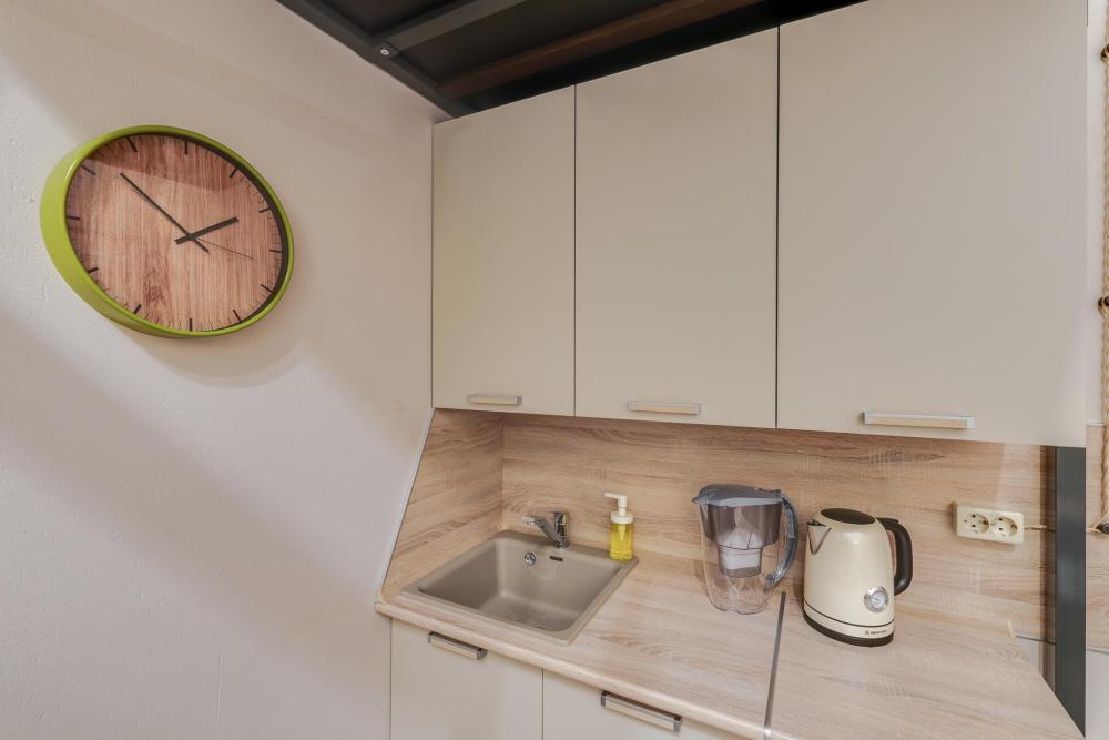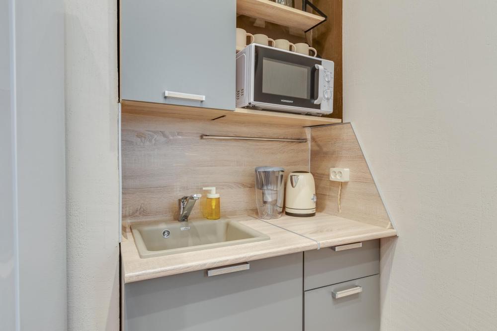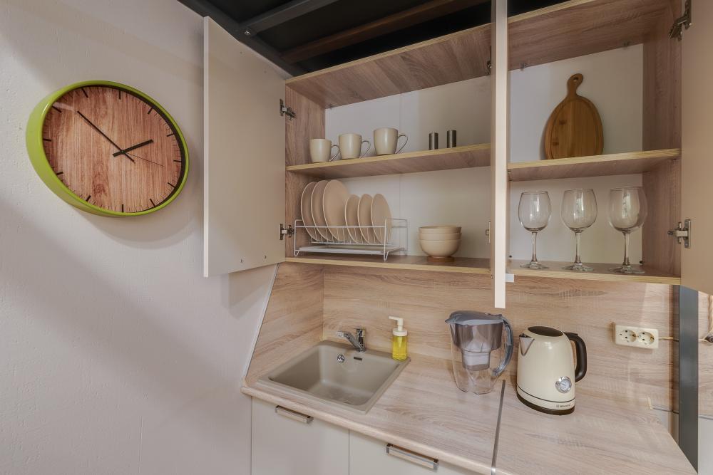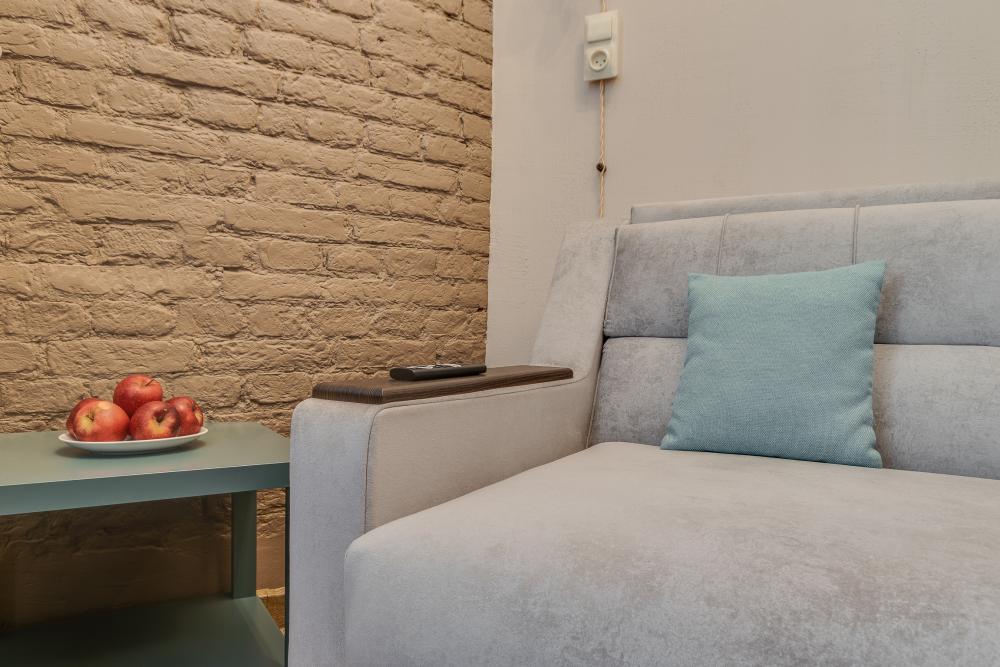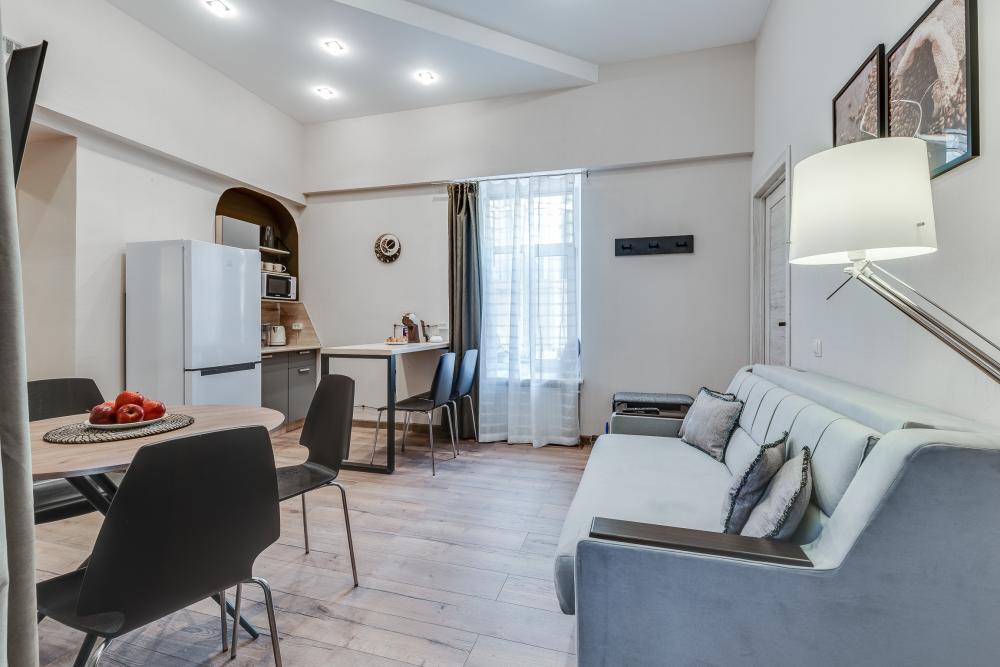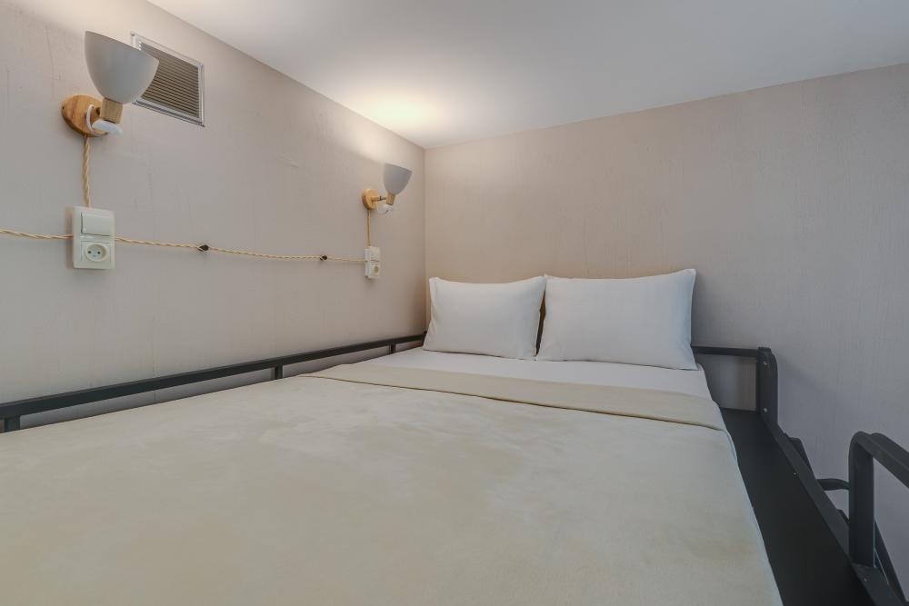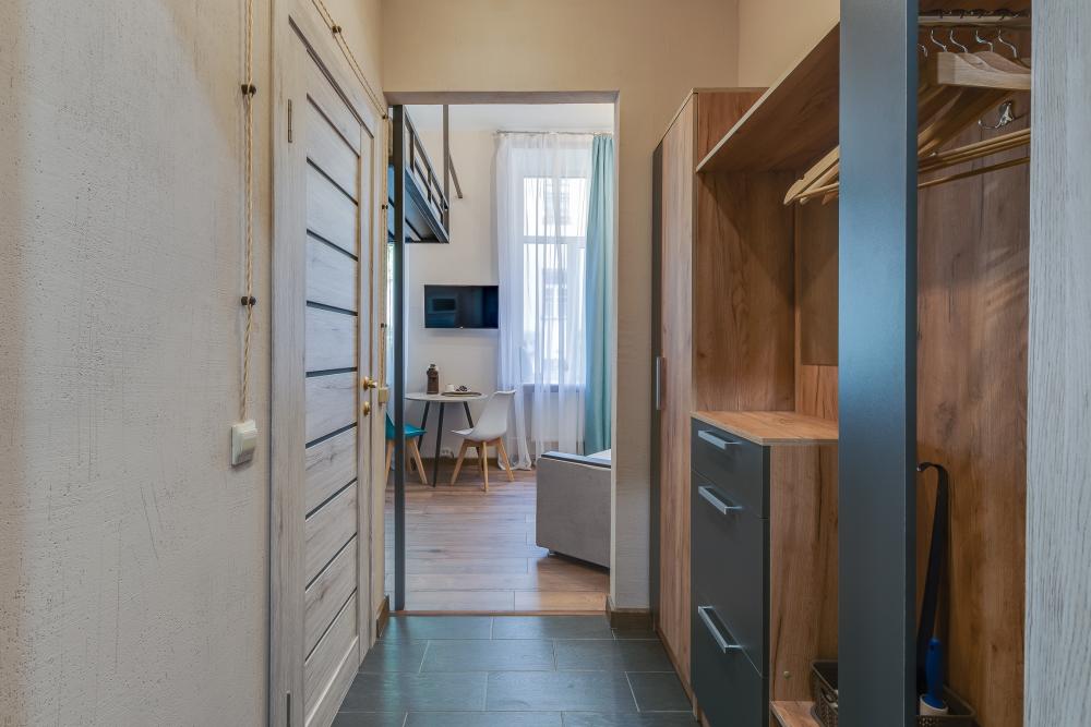 Уютная двухуровневая студия "Латте" в самом центре Санкт-Петербурга, оснащенная всей необходимой мебелью и техникой для комфортного проживания. Спальное место на втором уровне с ортопедическим матрасом. На первом уровне мини-кухня, гостиная зона с обеденным столом, диваном и телевизором и шкафом для хранения вещей. Мини-кухня оборудована холодильником, чайником, микроволновой печью и необходимой посудой и столовыми приборами. В студии индивидуальный санузел с душем, есть фен, гель для душа, мыло для рук, полотенцесушитель и большое зеркало с дополнительной подсветкой. Окна студий выходят в тихий внутренний дворик. Гостям предоставляется: комплект полотенец по количеству гостей, моющие средства, одноразовые салфетки, чай, кофе, сахар, соль. Так же в студии есть бесплатные средства для чистки одежды и обуви и сушилка для обуви. На всей территории апарта работает бесплатный Wi-Fi . Так же в апартах есть хозяйственная комната, где гости могут воспользоваться стиральной машинкой и гладильной доской с утюгом. Оснащение номера и мебель: Площадь 14 кв.м. Обогреватель Вентилятор Рабочее пространство Утюг Шкаф/Гардероб Москитная сетка Светонепроницаемые шторы Ванная комната: Собственный санузел Тапочки Туалетно-косметические принадлежности Душ Фен Стиральная машина Кухня: Микроволновка Холодильник Столовые приборы Обеденный стол Кофе/Чай Кофемашина/Кофеварка Чайник Электроника и развлечения: Телевизор Кабельное ТВ WiFi Вид: Вид на внутренний двор Услуги: Хранение багажа