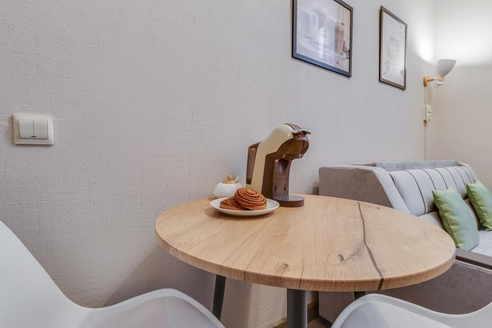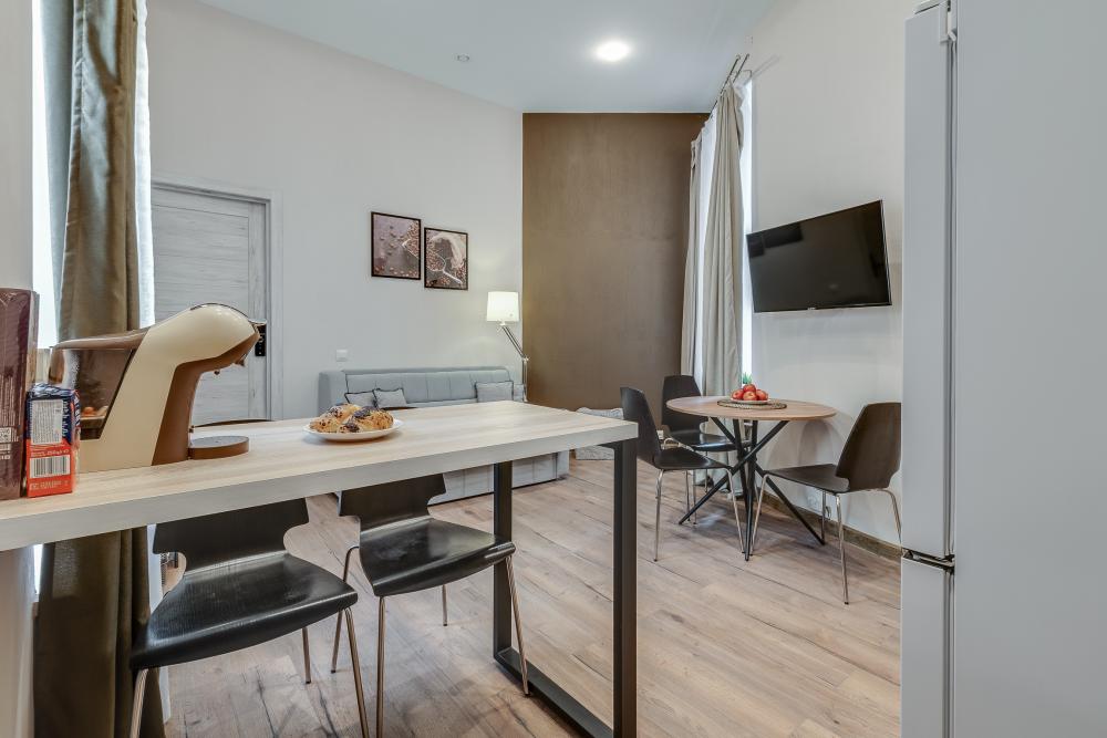Уютная двухкомнатная студия "Двойной эспрессо" в самом центре Санкт-Петербурга. В номере просторная спальня с большой двуспальной кроватью, окно спальни выходит в тихий внутренний дворик. Гостиная в номере обустроена мини-кухней со всей необходимой техникой (индукционная плита, большой холодильник, микроволновая печь, капсульная кофемашина, чайник) посудой и приборами. Также в гостиной есть обеденный стол, раскладной диван, который используется как дополнительное спальное место, телевизор. В номере индивидуальный санузел с душем, в котором есть фен, полотенцесушитель и зеркало с дополнительной подсветкой. Гостям предоставляется: комплект полотенец по количеству гостей, моющие средства, одноразовые салфетки, чай, кофе, сахар, соль. В студии есть бесплатные средства для ухода за обувью одеждой и сушилка для обуви. На всей территории апарта работает бесплатный Wi-Fi . Так же в апартах есть хозяйственная комната, где гости могут воспользоваться стиральной машинкой и гладильной доской с утюгом. Оснащение номера и мебель: Площадь 32 кв.м. Обогреватель Вентилятор Рабочее пространство Утюг Шкаф/Гардероб Москитная сетка Ванная комната: Собственный санузел Тапочки Туалетно-косметические принадлежности Душ Фен Стиральная машина Кухня: Всё необходимое для приготовления еды Микроволновка Холодильник Столовые приборы Обеденный стол Кофе/Чай Кофемашина/Кофеварка Чайник Электроника и развлечения: Телевизор Кабельное ТВ WiFi Вид: Вид на внутренний двор Услуги: Хранение багажа