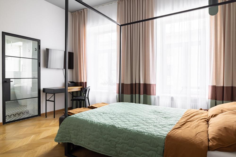 Дизайнерская квартира бизнес-класса в Адмиралтейском районе Петербурга. В апартаментах возможно размещение до 2 гостей: предусмотрена двуспальная кровать с ортопедическим матрасом и белым постельным бельем. В апартаментах есть все для комфортного проживания: уютная рабочая зона для бизнес-путешественников, проектор и качественная акустическая система, цифровое ТВ, WI-FI. Вся необходимая бытовая техника: варочная поверхность, холодильник, СВЧ, чайник, посудомоечная машина. Капсульная кофемашина. Посуда и кухонные принадлежности для приготовления вкусной еды. Welcome-набор (чай, кофе, сладости, соль, сахар, специи, крупы, вода, масло подсолнечное). Для удобства гостей: набор полотенец, гель для душа, шампунь и бальзам для волос, жидкое мыло, тапочки, махровые халаты. Стиральная машина. Утюг и гладильная доска, сушилка, фен.