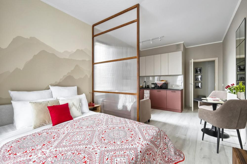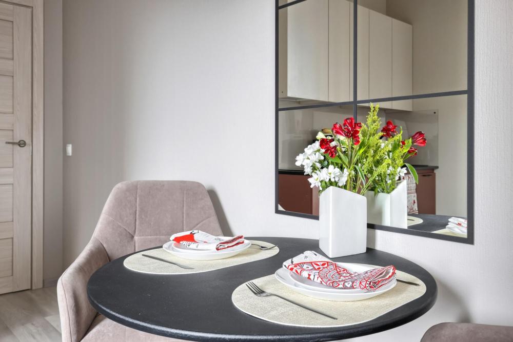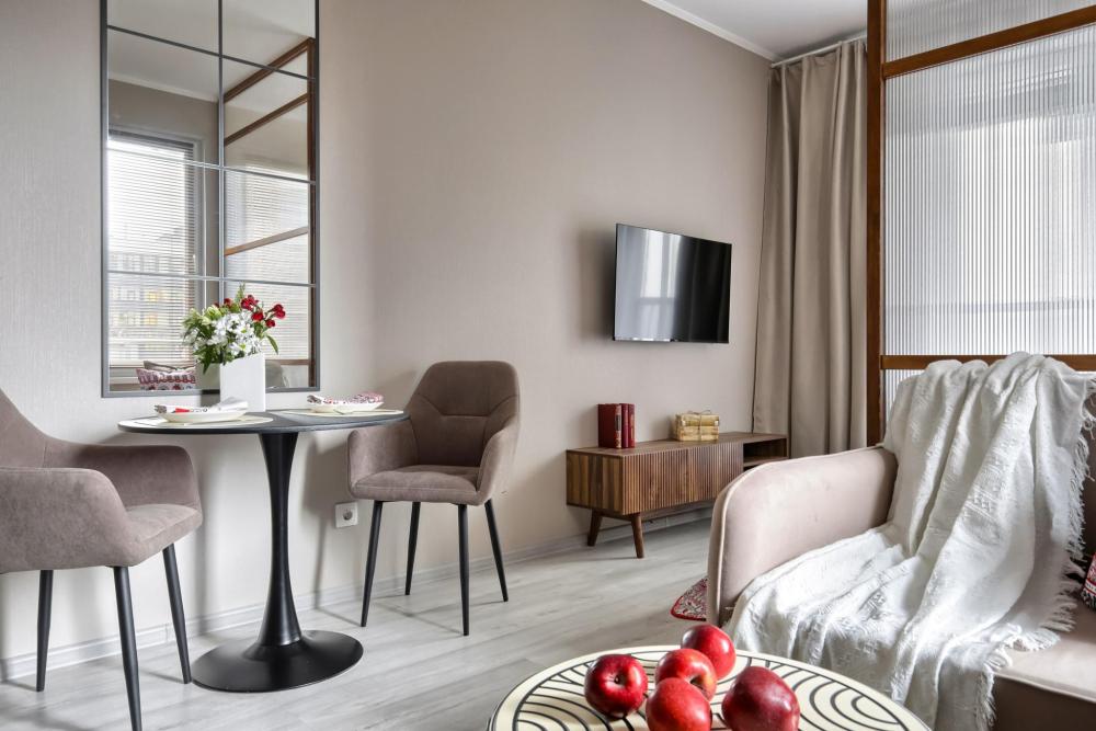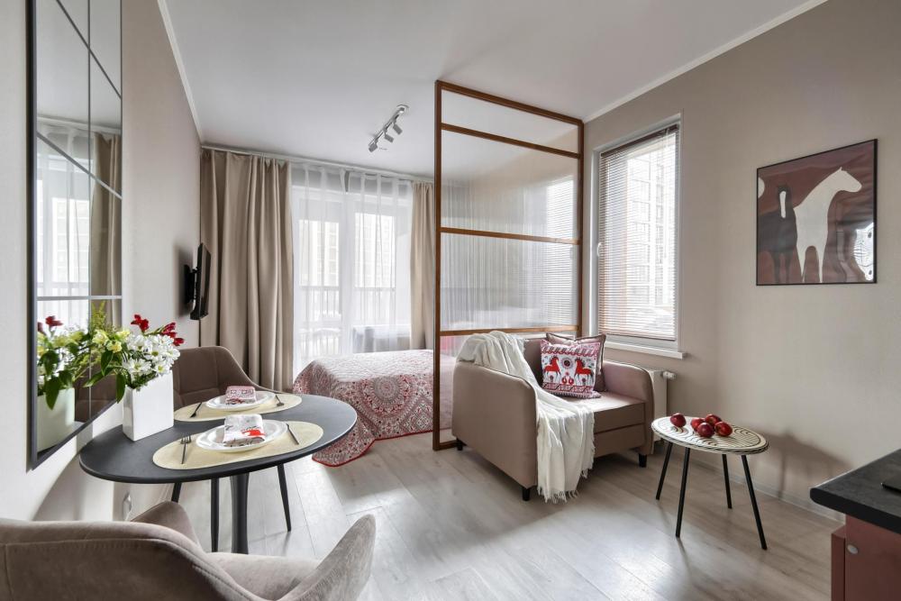 HАШИ ПРEИМУЩECTBА: В апартаментах K&K действует единый стандарт качества: — Белоснежное постельное белье высокого качества для каждых новых гостей — Профессиональный клининг — Наличие необходимых в быту вещей: посуда, техника, средства гигиены — Приветственный набор продуктов — Качественный сервис. В КВАРТИРЕ ЕСТЬ: — Двуспальная кровать с ортопедическим матрасом (160х200) — Диван односпальный (размер спального места 100х 200) — Кухня со всем необходимым (питьевой фильтр, холодильник, варочная панель, микроволновая печь, чайник, посуда) — WI-FI, Smart -TV — Просторный балкон с лаундж зоной —Стиральная машина, водонагреватель, фен, утюг, гладильная доска, сушилка для одежды — Шкаф — Шампунь, гель для душа, жидкое мыло, ватные палочки, ватные диски, гель для стирки, кондиционер для белья, одноразовые тапочки, одноразовый зубной набор. — Чай, кофе, конфеты, сахар, соль, масло. — На каждого гостя предусмотрено по 4 полотенца. Замена белья и полотенец производится при бронировании свыше 7 суток бесплатно. В других случаях за дополнительную плату.