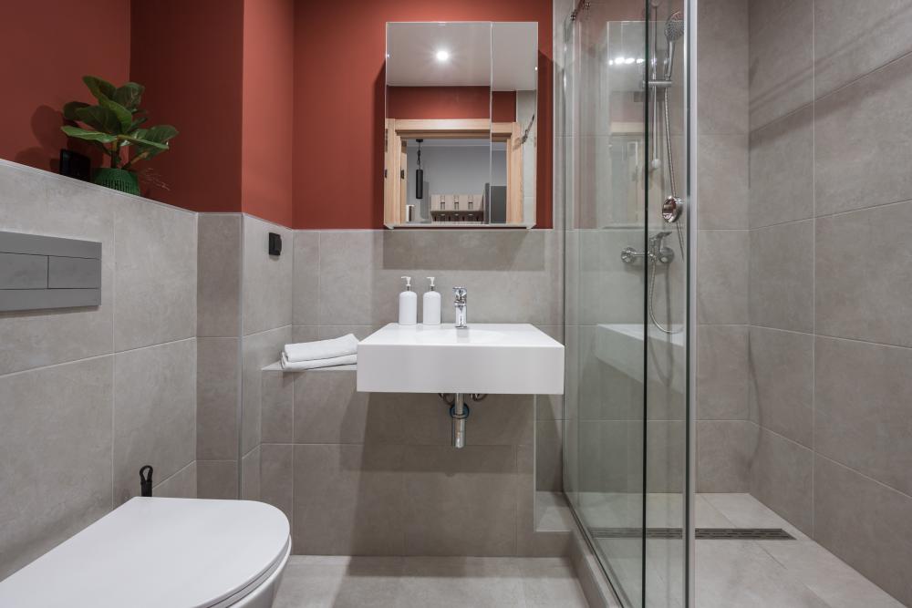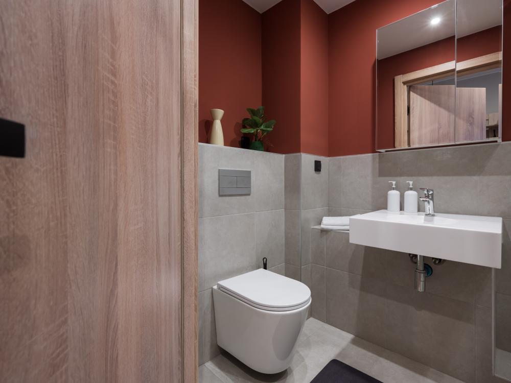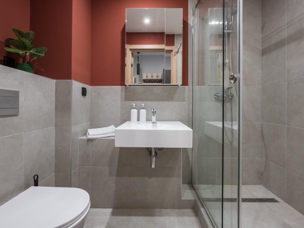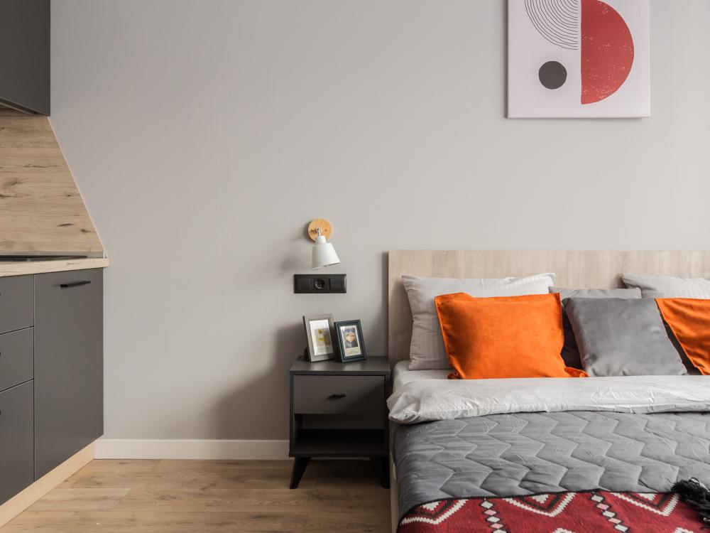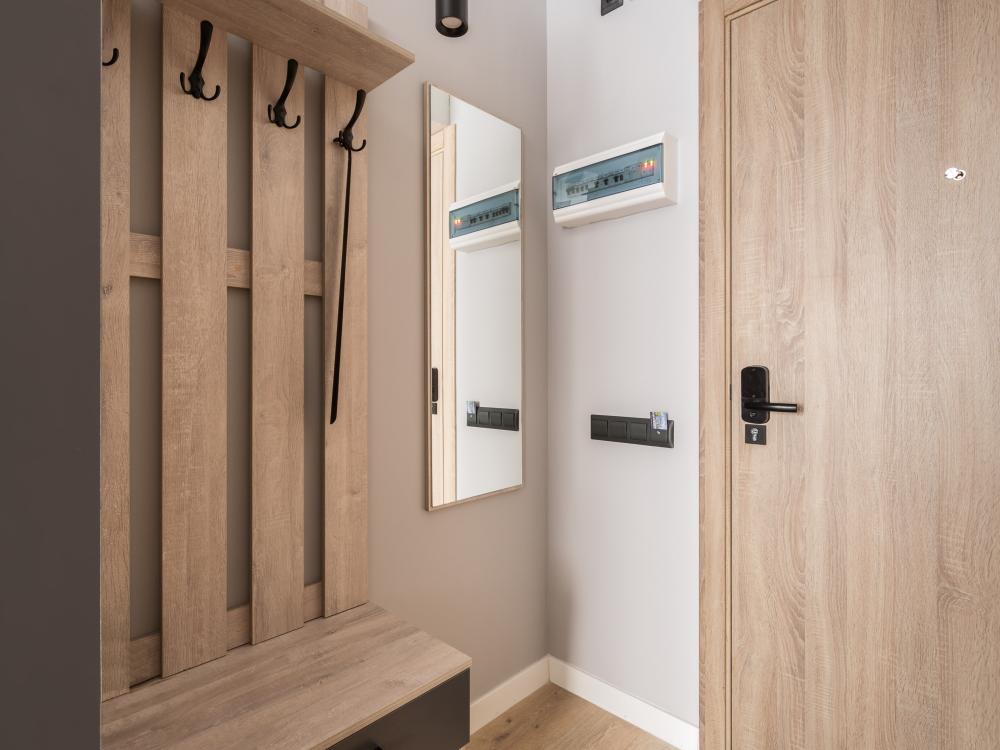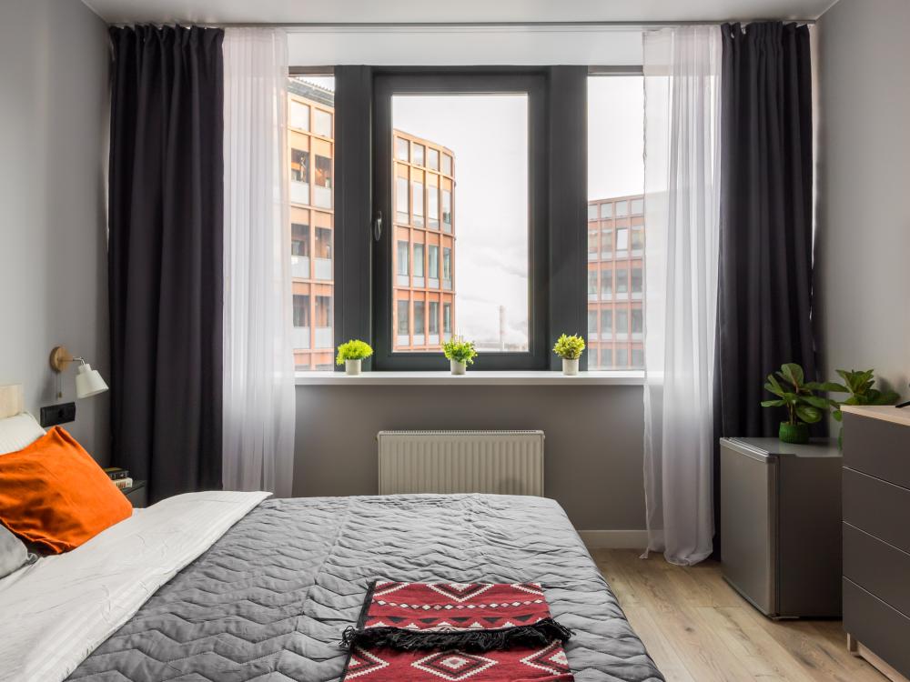 Размещение для 2 гостей. В апартаментах: двуспальная кровать с ортопедическим матрасом. Современный ЖК-телевизор для просмотра любимых программ и фильмов. Система для хранения вещей; Полностью оборудованный кухонный гарнитур с плитой, электрическим чайником, микроволновкой и всей необходимой посудой для приготовления. Обеденный стол и стулья; Собственный санузел, где есть душ и туалет. Утюг, зеркало, стиральная машинка и фен. Постельное белье и полотенца предоставляются.