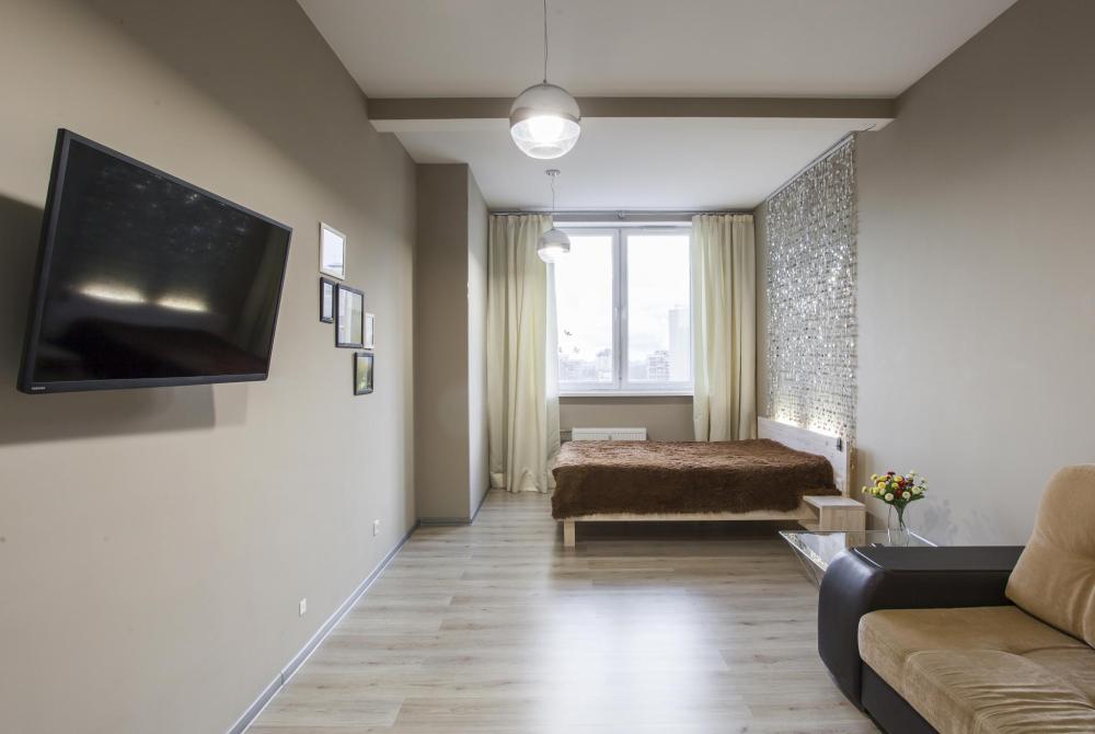 Уютная студия вмещает до 4-ти гостей и находится на 7 этаже дома бизнес-класса в ЖК “Граф Орлов”. В квартире есть все необходимое для комфортного проживания: двуспальная кровать, раскладной диван, телевизор, кухонная зона со всем необходимым, совмещенный санузел.