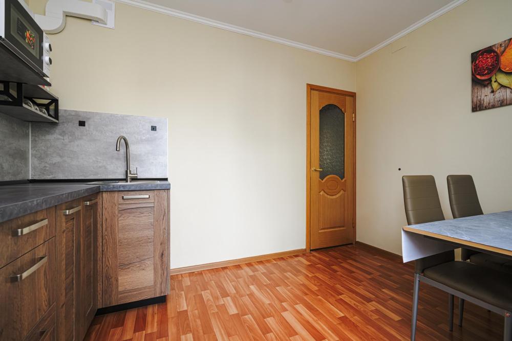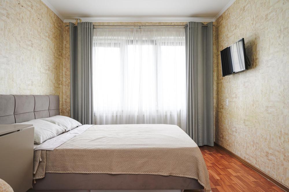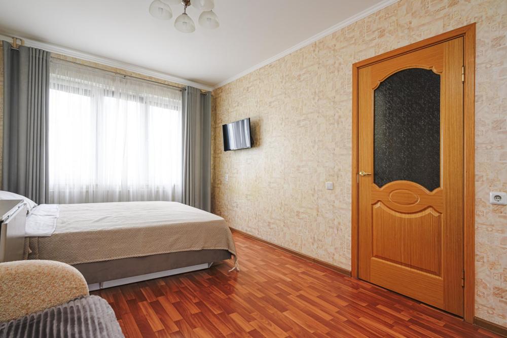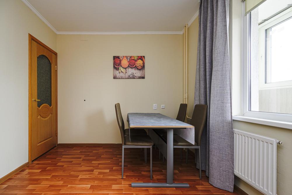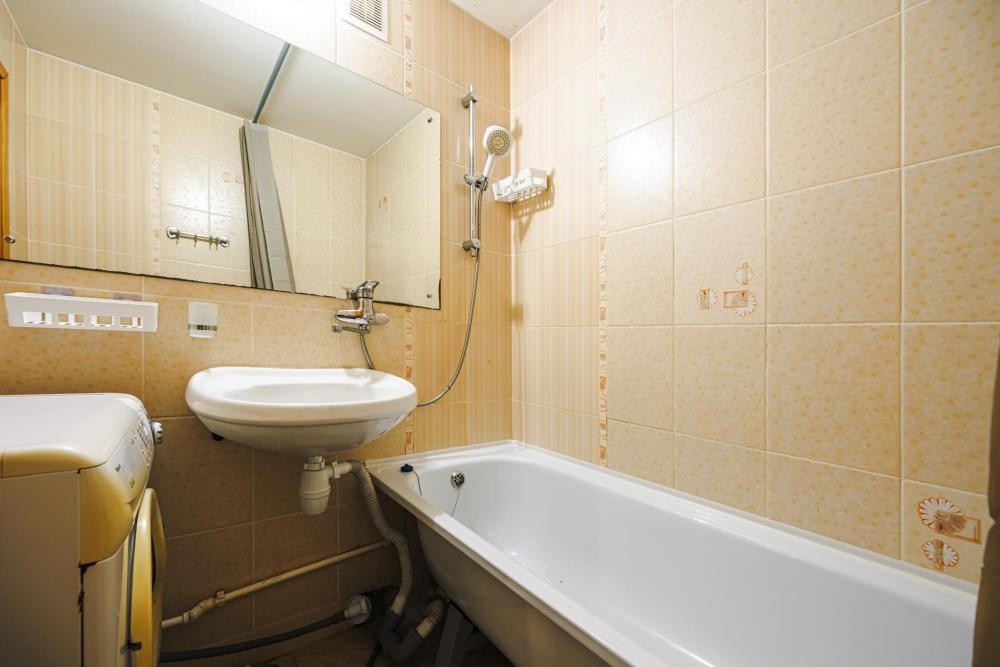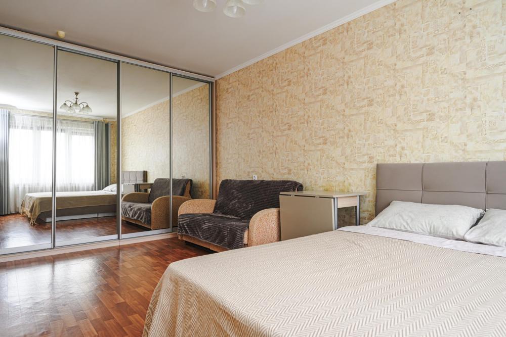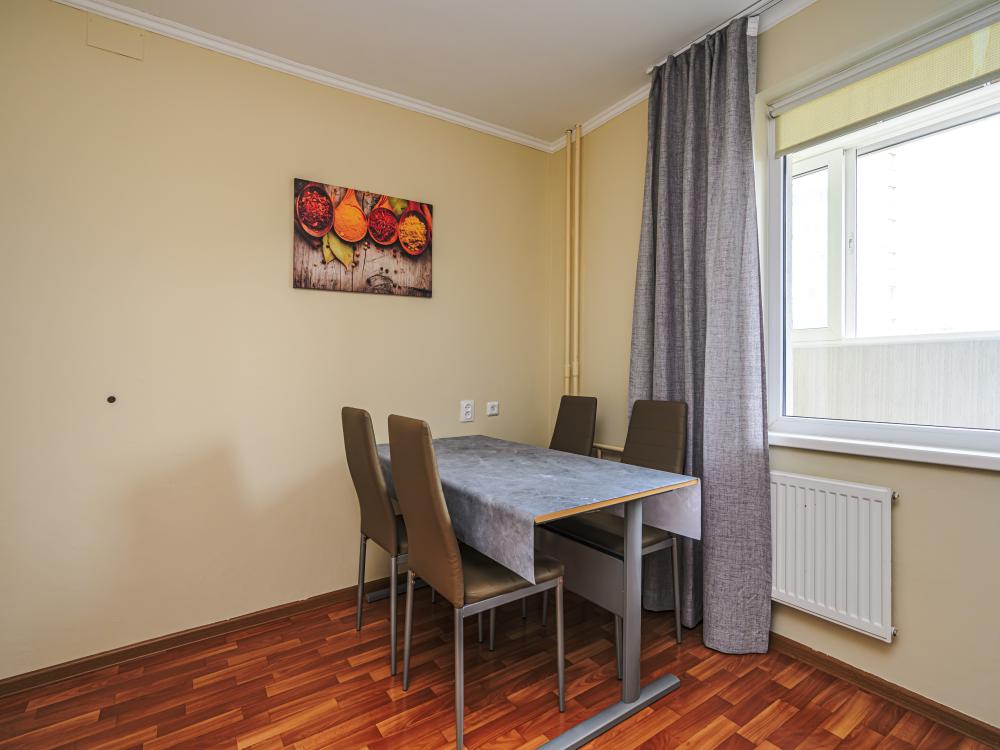 Уютная однокомнатная квартира на 15 этаже 18-этажного дома с лифтом. Размещение для 4 гостей (2+2). Комфорт и удобства: в спальне двуспальная кровать, раскладной диван, шкаф для хранения вещей, телевизор для вечернего досуга. Кухня: полностью оборудованный кухонный гарнитур с электрическим чайником, холодильником, плитой, духовкой, микроволновокй и всей необходимой посудой для приготовления, также обеденный стол и стулья. Ванная комната: ванна, раковина и стиральная машинка, чтобы всегда иметь свежую одежду под рукой.Отдельный туалет. Вид во двор. Свежее постельное белье и полотенца предоставляются.
