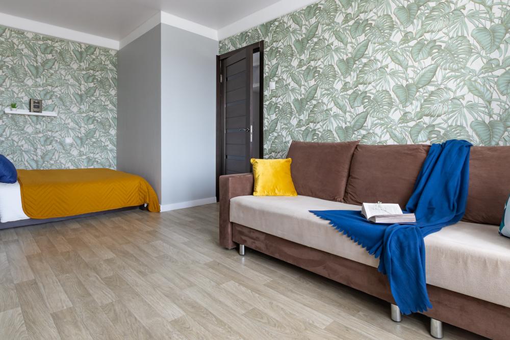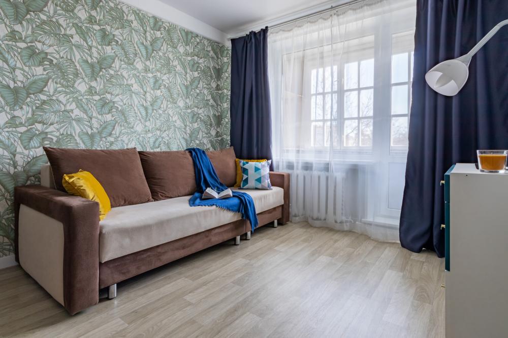 Однокомнатная квартира в пятиэтажном доме на 3м этаж. Имеется балкон, окна выходят на улицу, напротив окон нет других домов. В квартире: двуспальная кровать, диван-кровать, постельное белье, полноценная кухня, где можно приготовить еду, укомплектована всей необходимой посудой, есть кофемашина Nespresso. При проживании предоставляется шампунь, гель для душа, мыло, стиральный порошок, комплект полотенец, безлимитный Wi-Fi.
