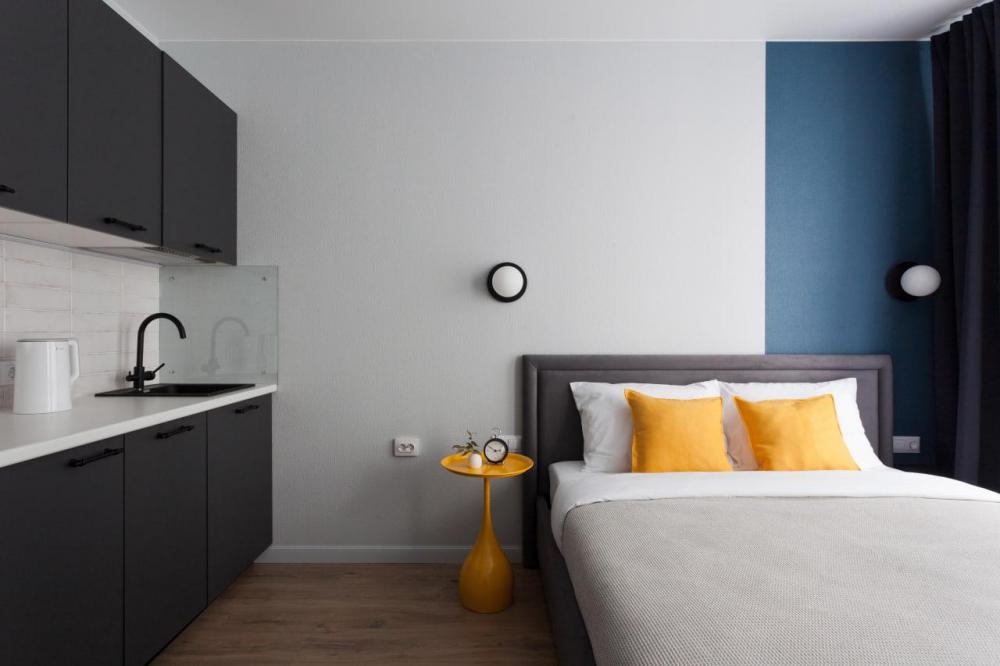 RoomyRoom Apartaments "Рalladio" - новая квартира комфорт класса с дизайнерским ремонтом в современном Апарт комплексе Начало. Недалеко от комплекса находится Ивановский сад и озеро. Ближайшее метро Ломоносовская, откуда прямая ветка для центра города (10 минут на метро до центра), пешком до метро 15-20 минут. На кухне имеется вся необходимая посуда для сервировки и приготовления пищи. Проведен высокоскоростной интернет для работы и просмотра телевизора. Мы предоставляем постельное белье, полотенца, средства для душа и гигиены, фен и утюг, сушилка для белья. Бытовая техника: телевизор, СВЧ-печь, электрическая плита, холодильник, стиральная машина, посудомоечная машина. Площадь квартиры: 25кв.м. Спальные места: в распоряжении гостей двуспальная кровать с ортопедическим матрасом 160*200 и раскладное кресло 80*190 О парковке. Бесплатная вдоль улицы, вы легко найдете свободное место. Также имеется платная парковка недалеко от комплекта, точные геоданные направлю по запросу. Правила проживания и бронирования. Стандартный выезд до 11. Стандартный заезда после 15. Для вас предусмотрен бесконтактный заезд в любое удобное для вас время. При заселении берем залог за сохранность имущества в размере 3000р. При бронировании на 2х человек, если нужны раздельные спальные места, сообщите, пожалуйста, администратору, доплата 1000р После бронирования мы с Вами свяжемся для уточнения деталей и прохождения короткой процедуры оформления. Для этого понадобится документ, удостоверяющий личность и отдельно ваше селфи).