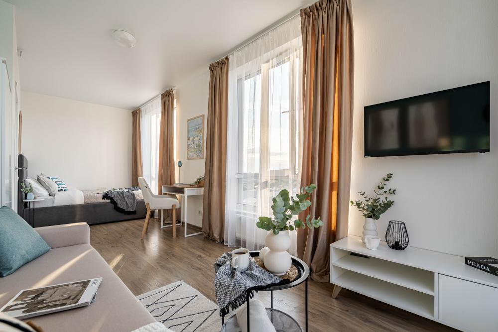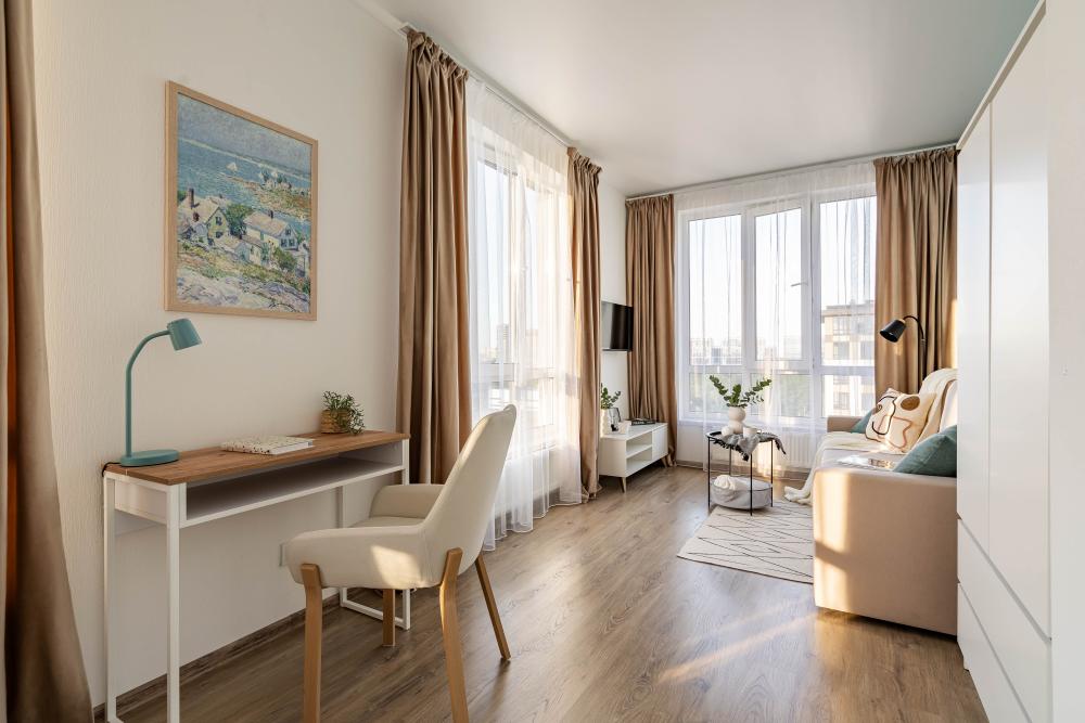 Просторная и стильная однокомнатная квартира с отдельной спальней и большими панорамными окнами в новом Апарт-комплексе бизнес класса. Недалеко от комплекса находится Ивановский сад и озеро. Ближайшее метро Ломоносовская, откуда прямая ветка для центра города (10 минут на метро до центра), пешком до метро 15-20 минут. Просторная и стильная однокомнатная квартира с отдельной спальней и большими панорамными окнами в новом Апарт-комплексе бизнес класса. Недалеко от комплекса находится Ивановский сад и озеро. Ближайшее метро Ломоносовская, откуда прямая ветка для центра города (10 минут на метро до центра), пешком до метро 15-20 минут. Добро пожаловать в наши апартаменты! В квартире имеется все для проживания, удаленной работы и спокойного отдыха. На кухне имеется вся необходимая посуда для сервировки и приготовления пищи. Проведен высокоскоростной интернет для работы и просмотра телевизора. Мы предоставляем постельное белье, полотенца, средства для душа и гигиены, фен и отпариватель для одежды, сушилка для белья. Бытовая техника: телевизор, микроволновка, электрическая плита, холодильник, стиральная машина. Площадь квартиры: 40кв.м. Спальные места. Благодаря продуманной планировки, в наших апартаментах с комфортом разместятся 5 взрослых. В распоряжении гостей двуспальная кровать с ортопедическим матрасом 140*200 и двуспальный диван размер 140*200 в спальне. На кухне имеется отдельное спальное место – раскладной диван размером 120*200. О парковке. Бесплатная вдоль улицы, вы легко найдете свободное место. Правила проживания и бронирования. Стандартный выезд до 11. Стандартный заезда после 15. Для вас предусмотрен бесконтактный заезд в любое удобное для вас время. После бронирования мы с Вами свяжемся для уточнения деталей и прохождения короткой процедуры оформления. Для этого понадобится документ, удостоверяющий личность и отдельно ваше селфи). На время проживания берется залог за сохранность имущества в размере 3000 р, он возвращается в день выезда. Вне зависимости от срока проживания оплачивается сервисный сбор – уборка 1500 руб.На кухне имеется вся необходимая посуда для сервировки и приготовления пищи. Проведен высокоскоростной интернет для работы и просмотра телевизора. Мы предоставляем постельное белье, полотенца, средства для душа и гигиены, фен и отпариватель для одежды, сушилка для белья. Бытовая техника: телевизор, микроволновка, электрическая плита, холодильник, стиральная машина. Площадь квартиры: 40кв.м. Спальные места. Благодаря продуманной планировки, в наших апартаментах с комфортом разместятся 5 взрослых. В распоряжении гостей двуспальная кровать с ортопедическим матрасом 140*200 и двуспальный диван размер 140*200 в спальне. На кухне имеется отдельное спальное место – раскладной диван размером 120*200. О парковке. Бесплатная вдоль улицы, вы легко найдете свободное место. Правила проживания и бронирования. Стандартный выезд до 11. Стандартный заезда после 15. Для вас предусмотрен бесконтактный заезд в любое удобное для вас время. После бронирования мы с Вами свяжемся для уточнения деталей и прохождения короткой процедуры оформления. Для этого понадобится документ, удостоверяющий личность и отдельно ваше селфи). На время проживания берется залог за сохранность имущества в размере 3000 р, он возвращается в день выезда. Вне зависимости от