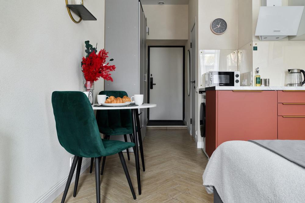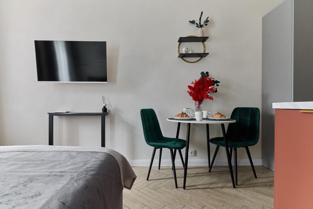 Современная уютная студия Trezzini в самом центре города Исторический доходный дом Чернявского после реновации Невский проспект - 5 минут пешком московский вокзал в 10 минутах Метро «Площадь Александр Невского» в пешей доступности Вместимость — до 2 гостей Самостоятельное онлайн-заселение и выезд Наполнение квартиры | уровень комфорт+ Кухня: Индукционная плитка | посудомоечная машина | микроволновка | холодильник | чайник | вся посуда и приборы | обеденная зона с мягкими стульями Спальное место: Двуспальная кровать 160×200 Техника и комфорт: Smart-tv Стабильный wi-fi Кондиционер Множество приятных бытовых мелочей - от тапочек до капсул для стирки Ванная комната: Душевая | стиральная машина | сушилка | Бойлер | фен | отпариватель Для наших гостей предоставляются Wеlсоmе - наборы: средства личной гигиены (зубной набор, ватные палочки/диски), качественное постельное бельё/полотенца, чай и кофе, множество приятных бытовых мелочей - от тапочек, до средств для стирки. На протяжении всего времени начиная с онлайн-бронирования и до конца проживания, мы будем с вами на связи по всем возникающим вопросам. До скорых встреч! Отдыхайте С. утками! Об остальном мы позаботились))