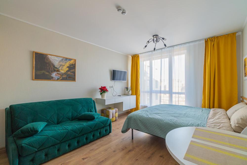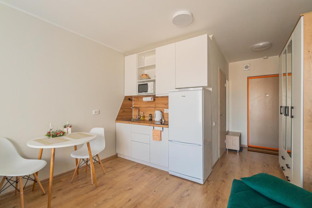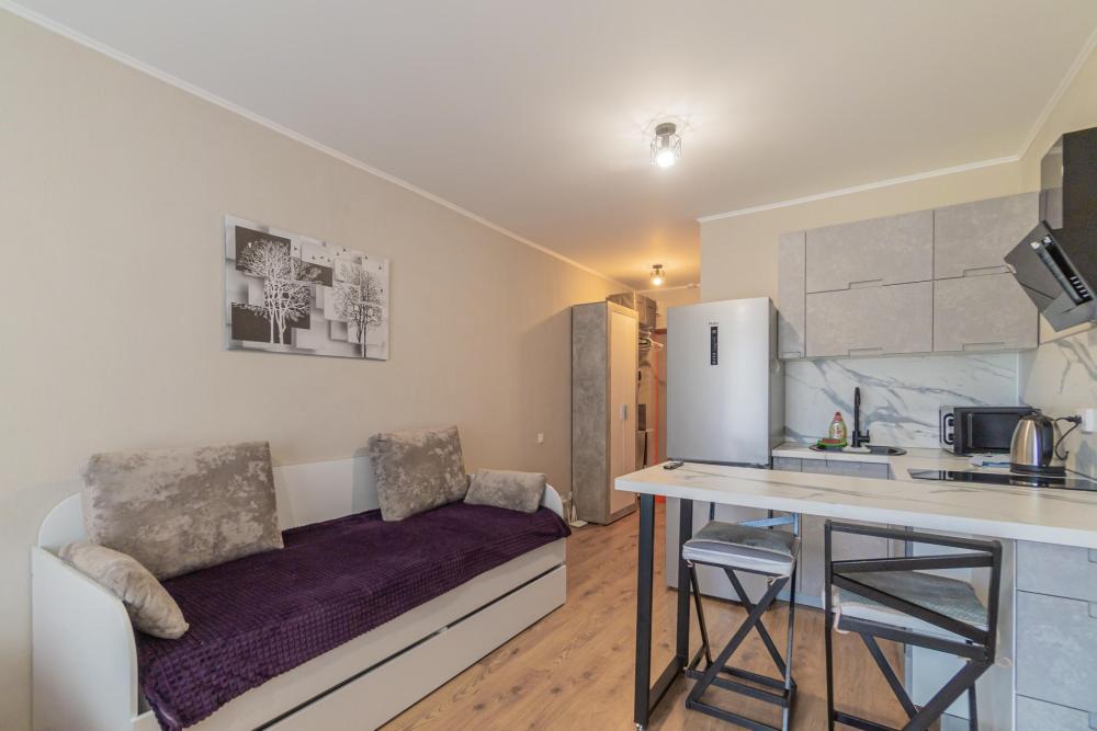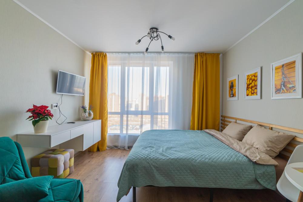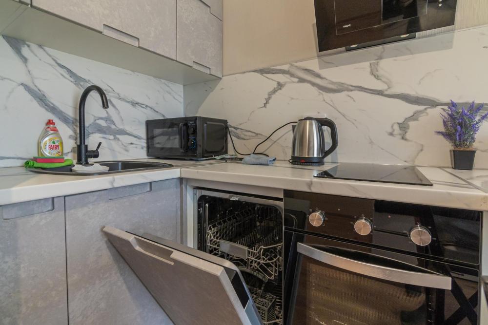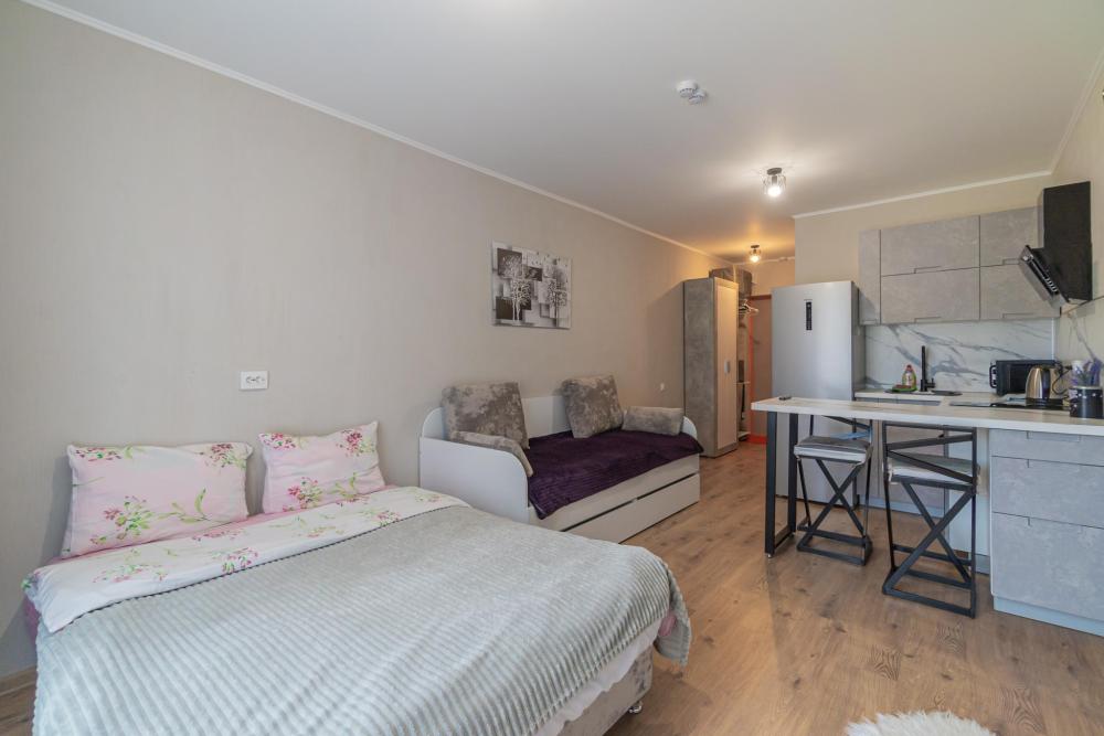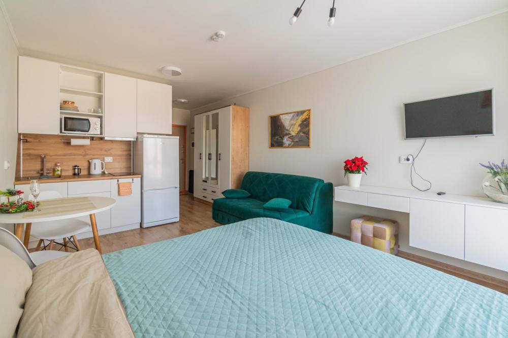 В апартаментах: большое панорамное окно, телевизор, утюг и гладильная доска, сушилка, фен, постельное белье и полотенца -спальная зона (2-х спальная кровать или две раздельные, платяной шкаф). обеденная зона (холодильник, чайник, микроволновка, плита, столовая группа, посуда на 2 персоны, стол со стульями) - Сан.узел (душевая кабина, туалет, стиральная машинка).