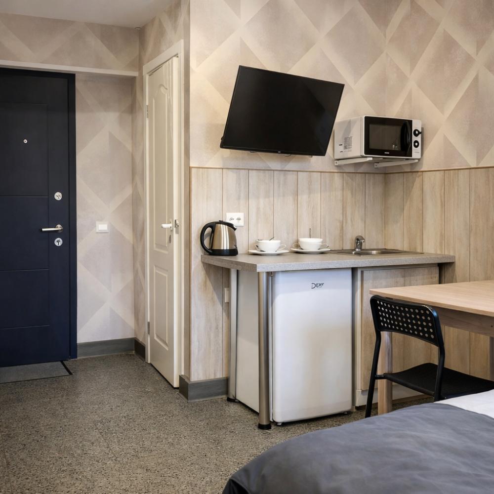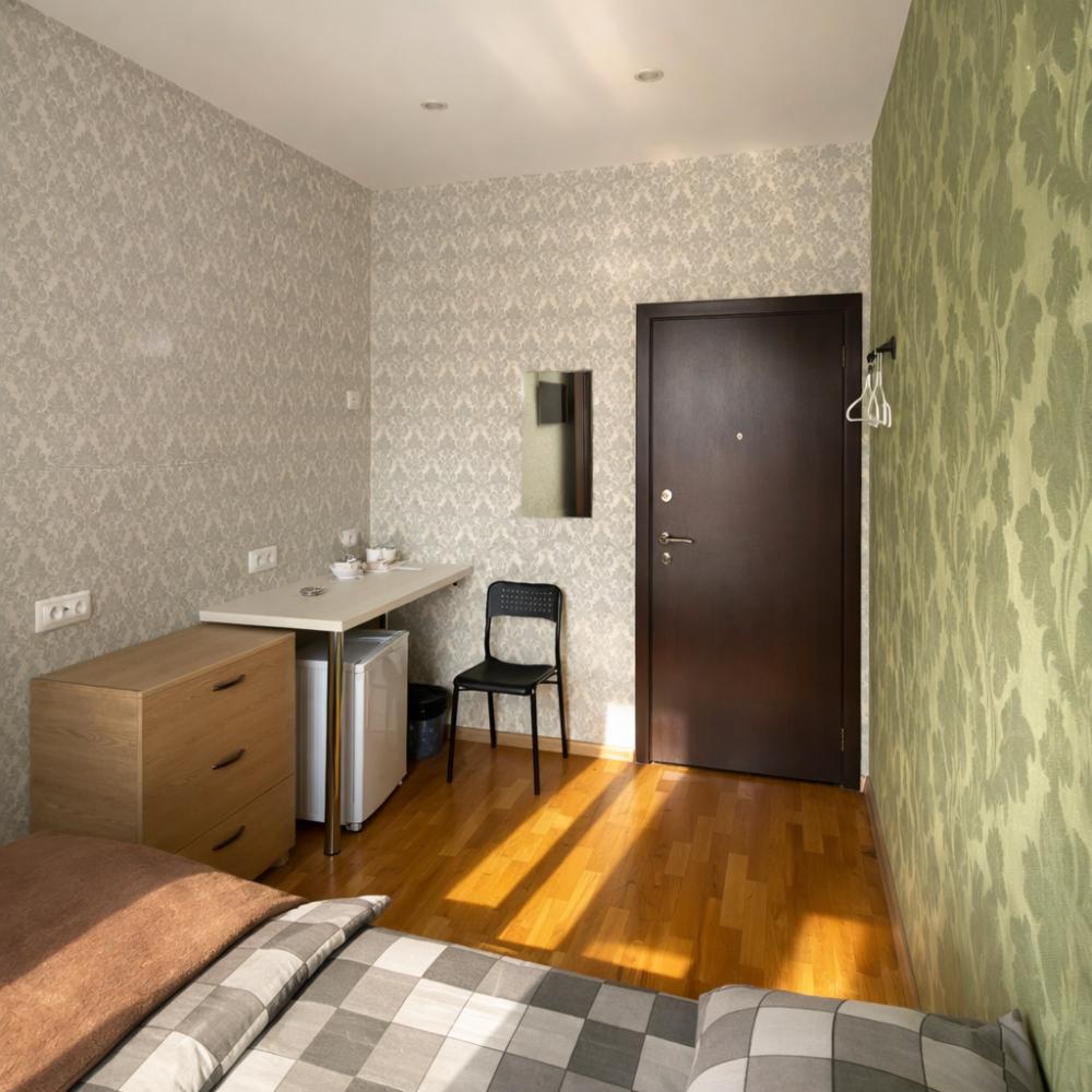 Эконом-апартаменты на улице Академика Лебедева Удобное и функциональное размещение эконом-класса в центральном районе Санкт-Петербурга. Подходит как для туристов, так и для командировочных. Номер расположен на 6 этаже. Обратите внимание: лифт в доме не работает, доступ возможен только по лестнице. Удобства в номере: Двуспальная кровать Телевизор Мини-холодильник Бесплатный Wi-Fi Общие зоны (для всех гостей объекта): Просторная общая кухня 2 совмещённых санузла (душ + туалет) 1 отдельный туалет Для командировочных: По запросу предоставляются официальные отчётные документы (БСО или кассовый чек). Расположение: 7 минут пешком до станции метро «Площадь Ленина» В шаговой доступности — магазины, кафе, аптеки и другие объекты инфраструктуры Размещение подходит для гостей, не имеющих ограничений по подъёму по лестнице.