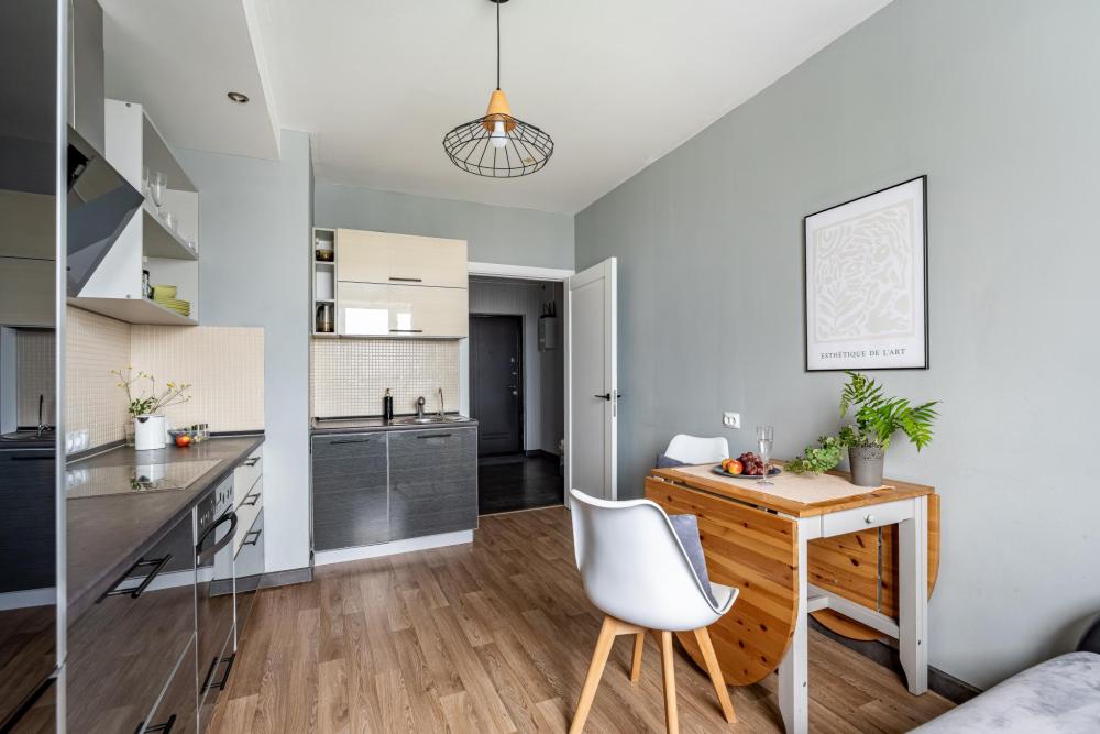 Однокомнатная квартира рядом со станцией метро "Парнас". В квартире есть все, что нужно для комфортного проживания: двуспальная кровать, два раскладных дивана, посудомоечная машина, фильтр для воды, столовые приборы, WiFi, телевизор.