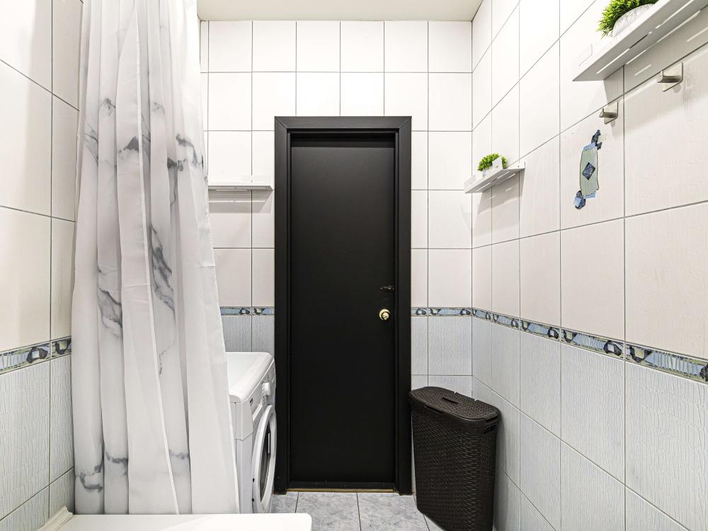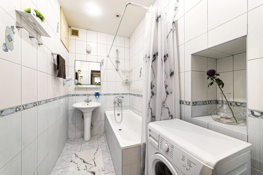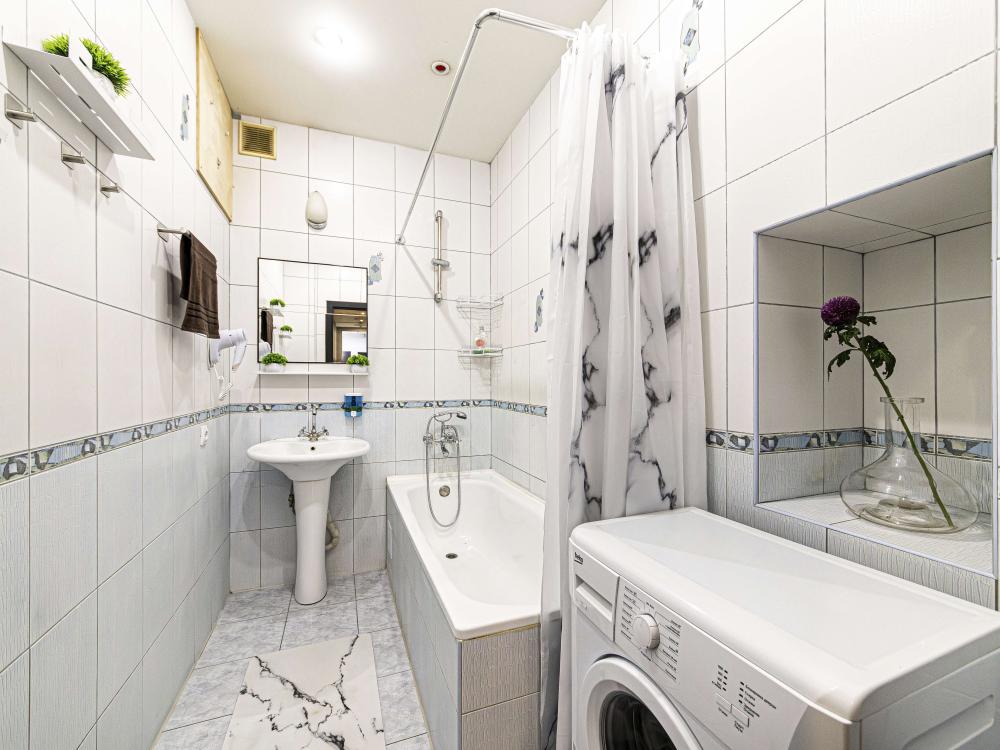 - Стирка вещей возможна благодаря стиральной машине в общей ванной комнате.