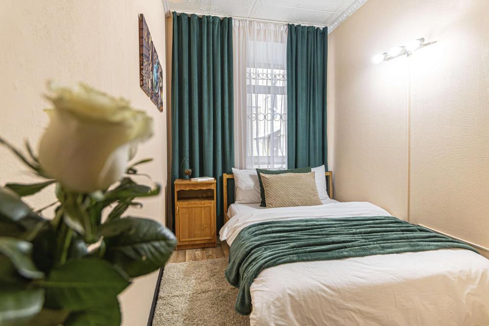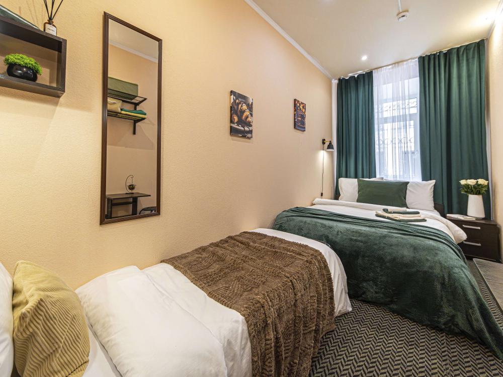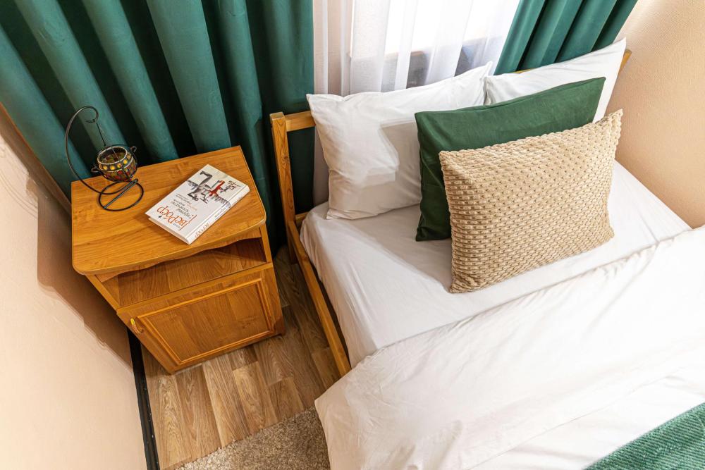 Добро пожаловать в уютный уголок, где можно расслабиться и отдохнуть после насыщенного дня. Эта комната создана для того, чтобы подарить вам комфорт и чувство заботы. Светлые стены, дополненные зелеными шторами и стильным декором, создают атмосферу спокойствия. Мягкие пастельные тона делают обстановку по-настоящему домашней. Оборудование комнаты: Две удобные односпальные кровати (120Х200; 90Х200) с мягким пледом Светильник для чтения Настенный декор Зеркало во весь рост Полка для хранения вещей Вешалка для одежды Стол с табуретами Приезжайте, чтобы ощутить домашний уют вдали от дома!