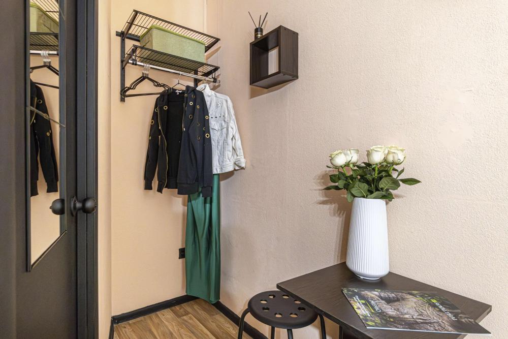 Добро пожаловать в нашу уютную комнату! Здесь вы почувствуете себя как дома. Интерьер оформлен в теплых тонах, которые придают комнатке особую атмосферу уюта и спокойствия. Комната оснащена всем необходимым для вашего комфортного пребывания: удобная кровать с мягкими подушками и пушистым пледом создают идеальные условия для отдыха. Мягкий свет, сочетающийся с зелеными шторами, добавляет гармонии и расслабленности. Оснащение комнаты: Удобная кровать Кровать с мягкими подушками и пледом Шкаф для одежды и полка для хранения Тумбочка с лампой Журналы и журнальный столик Журнальный столик с табуретом