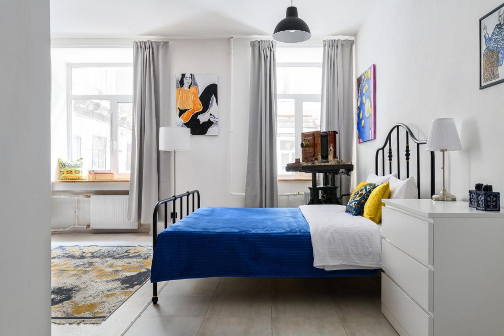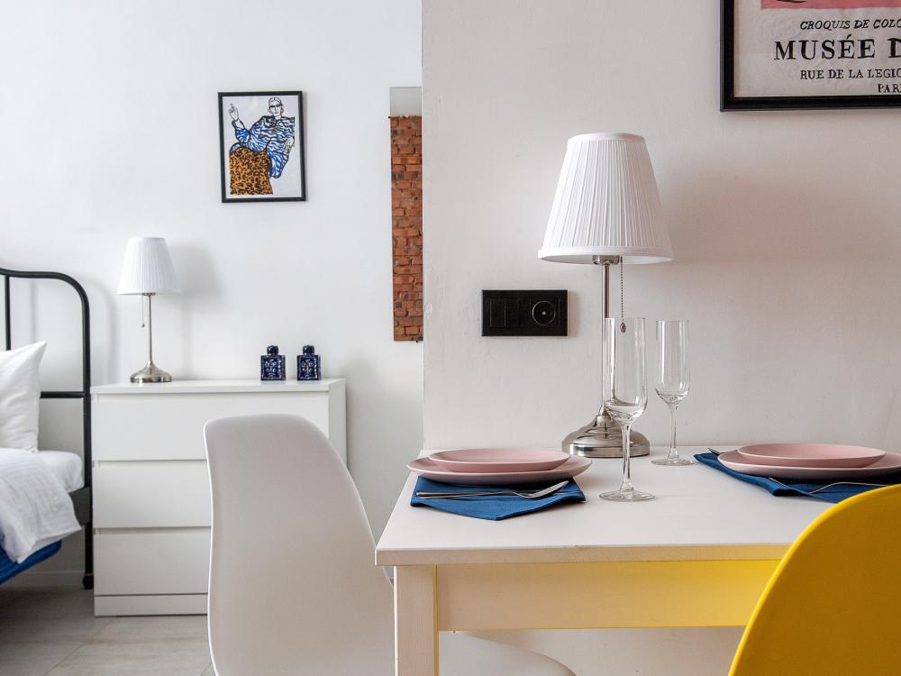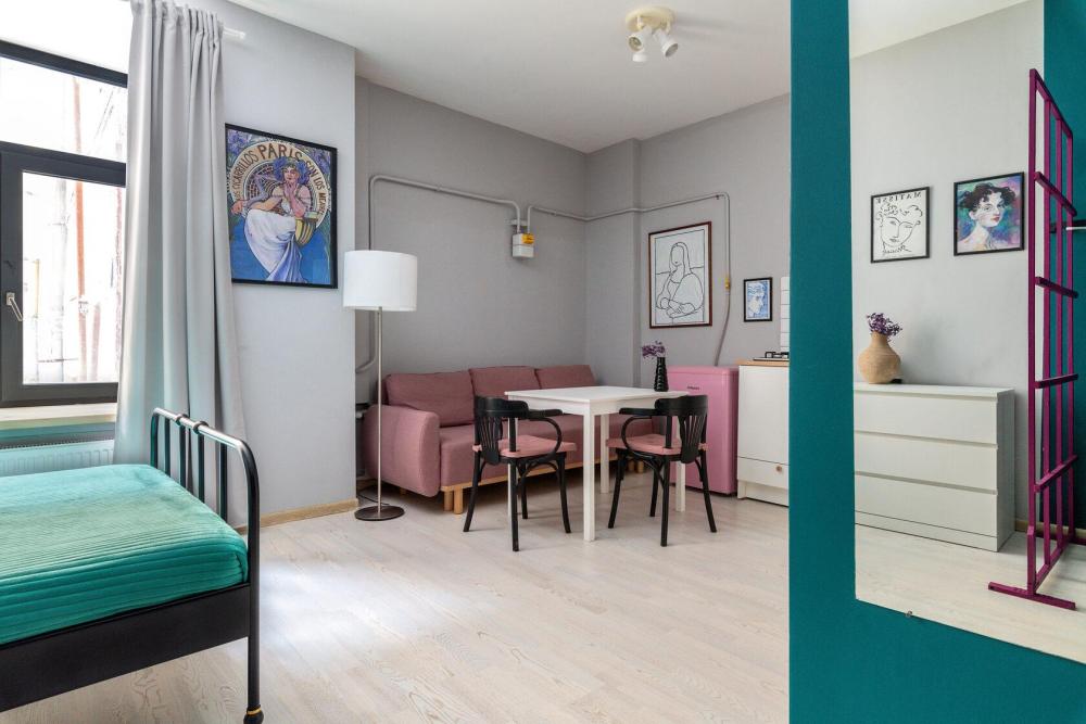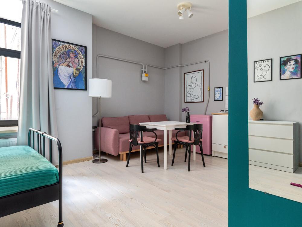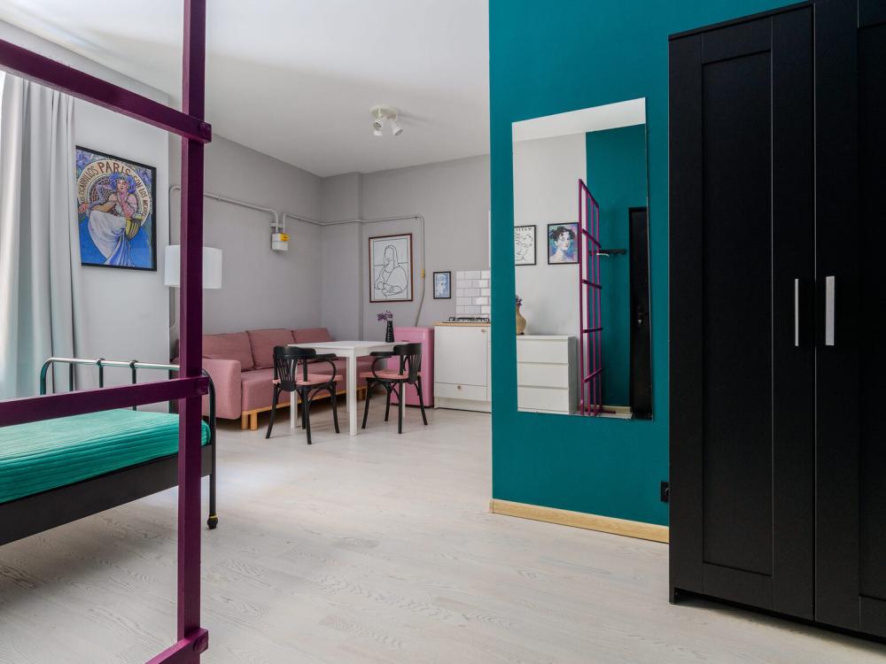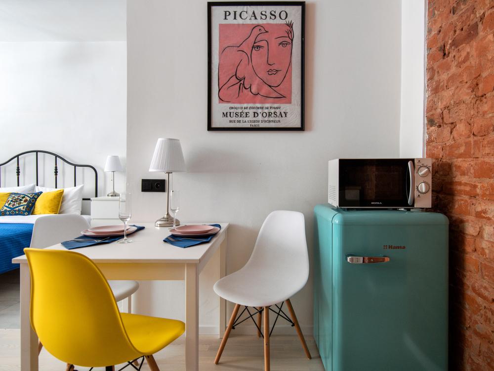Экcклюзивнaя арт-cтудия для 2-4 человек в сaмом cеpдцe Bacильeвcкoгo ocтpoва. В апартаментах для комфортного проживания: диван-кровать, двуспальная кровать и ортопедический матрас, одеяла, подушки, белье, полотенца, полностью оборудованная кухня, набор посуды для приготовления пищи и сервировки стола, барное стекло, бытовая химия (средства для стирки и т. д.), шампунь и кондиционер для волос, гель для тела, фен, скоростной Wi-Fi.