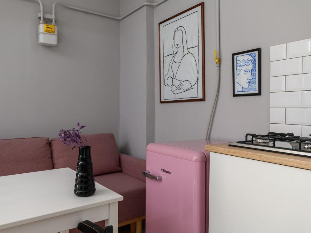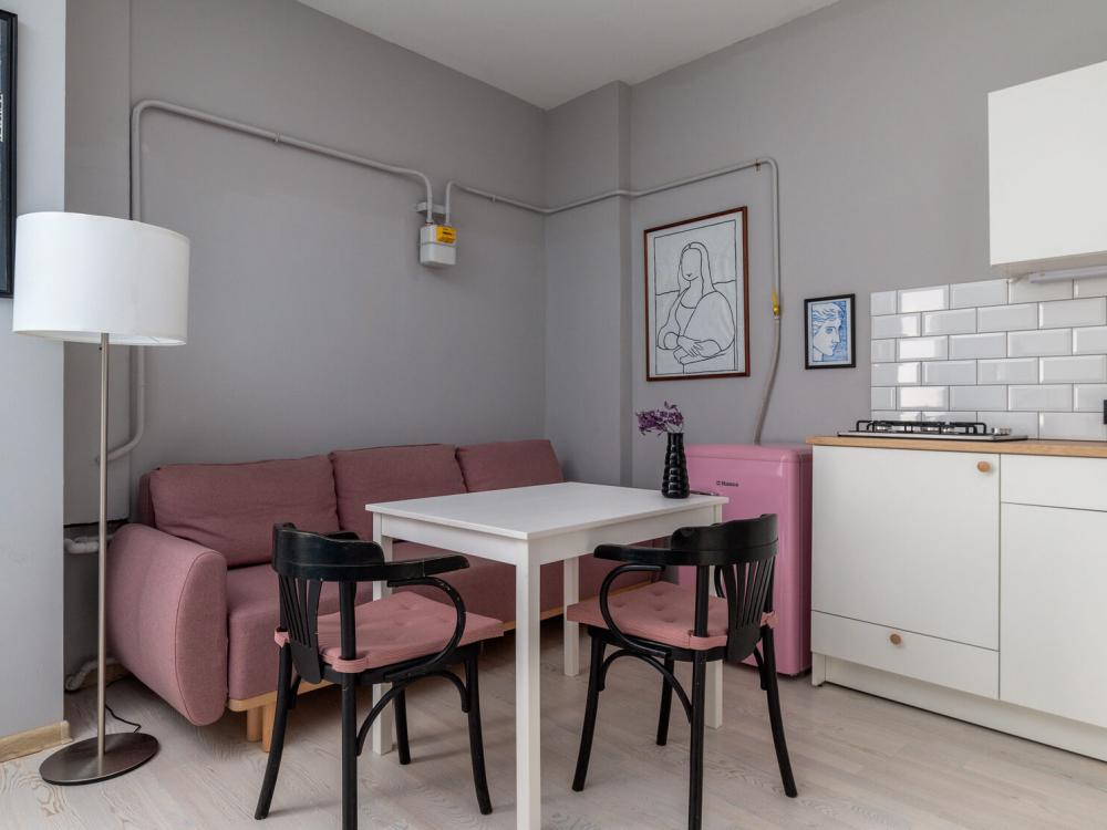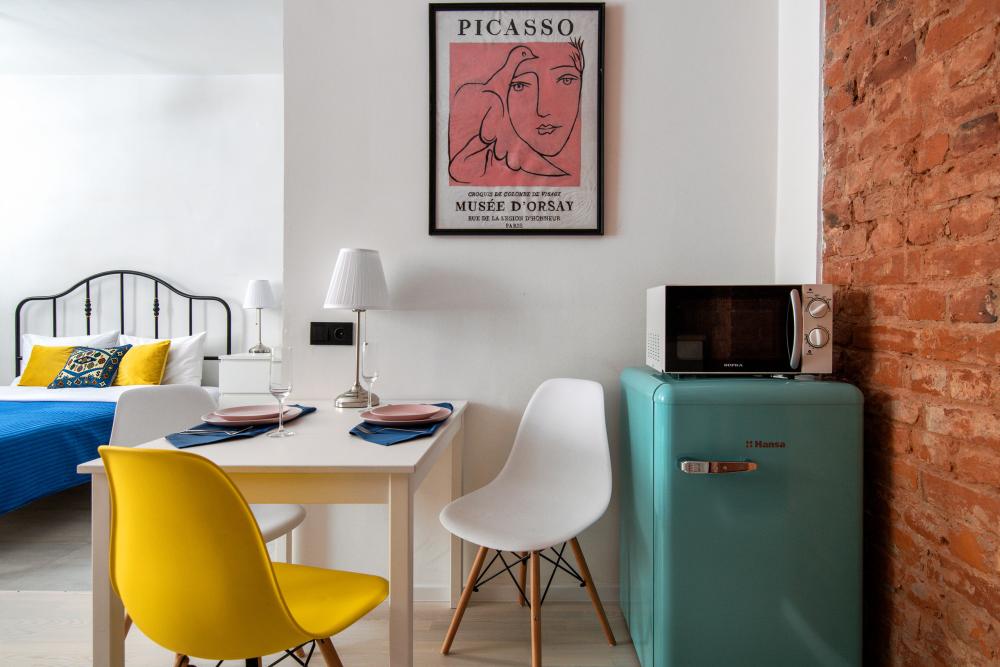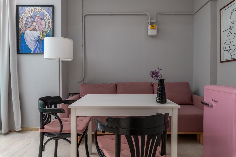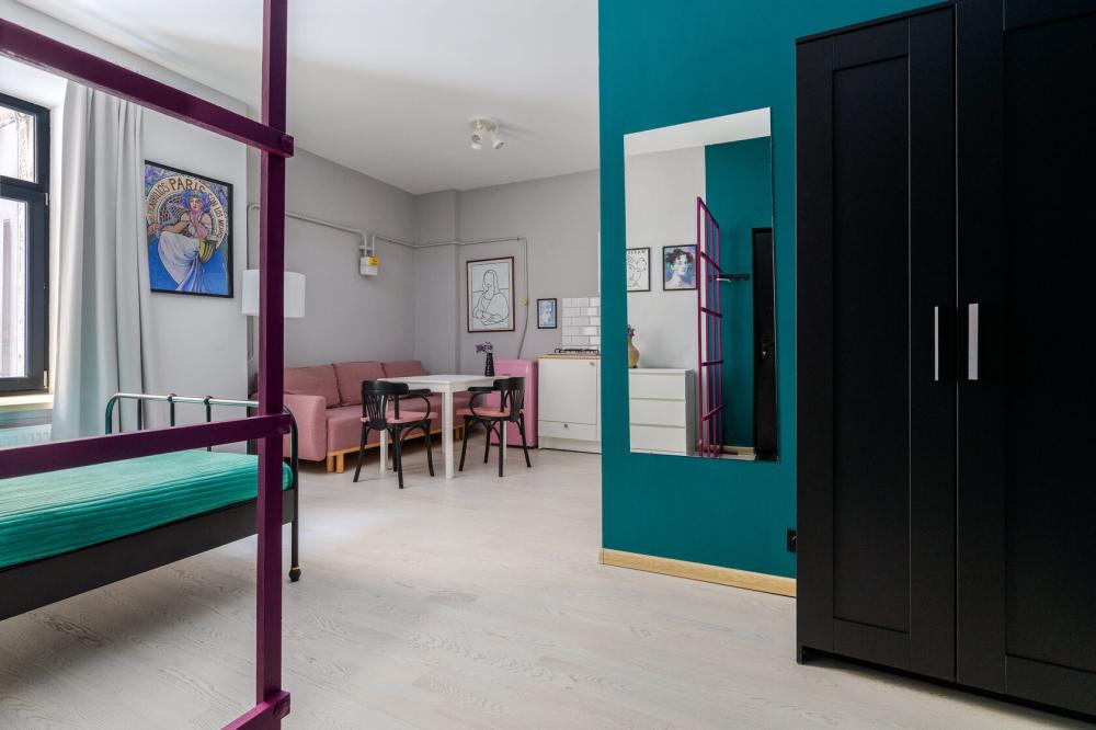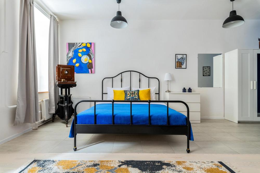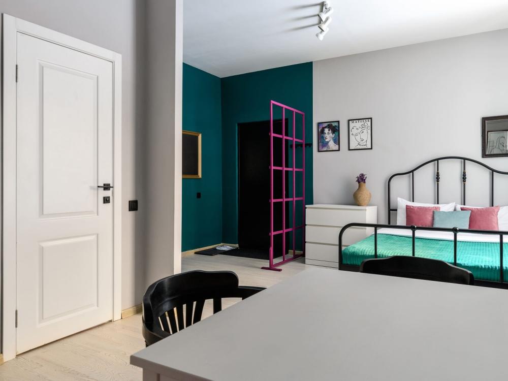 Экcклюзивнaя арт-cтудия для 2-4 человек в сaмом cеpдцe Bacильeвcкoгo ocтpoва. В апартаментах для комфортного проживания: диван-кровать, двуспальная кровать и ортопедический матрас, одеяла, подушки, белье, полотенца, полностью оборудованная кухня, набор посуды для приготовления пищи и сервировки стола, барное стекло, бытовая химия (средства для стирки и т. д.), шампунь и кондиционер для волос, гель для тела, фен, скоростной Wi-Fi.