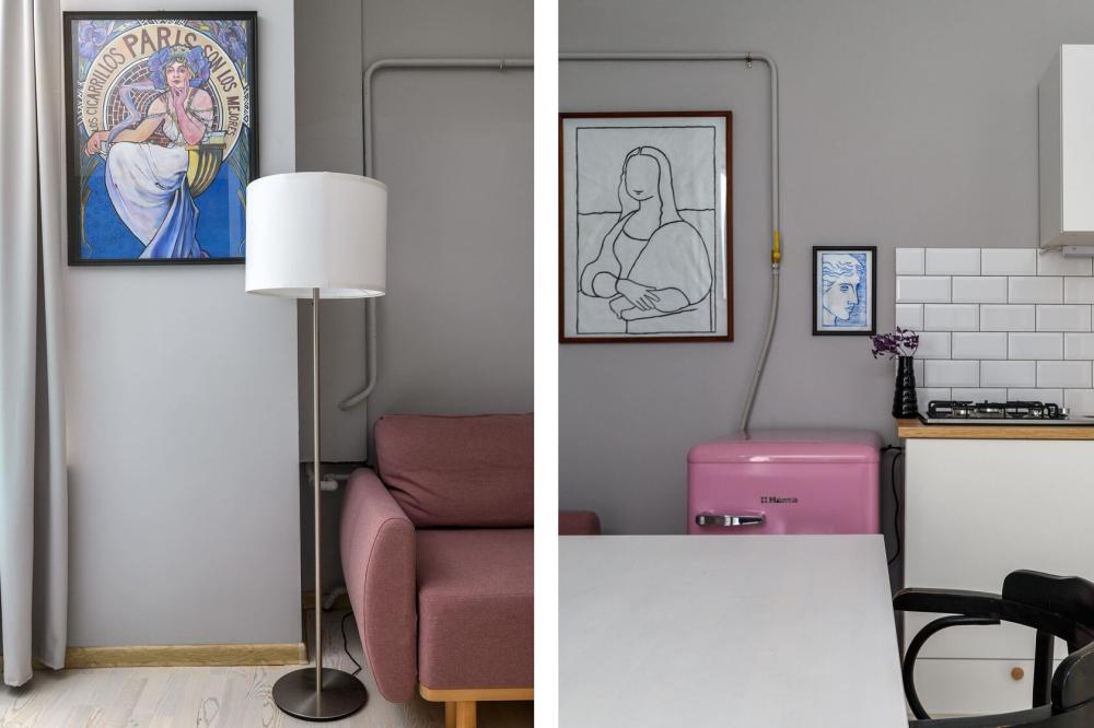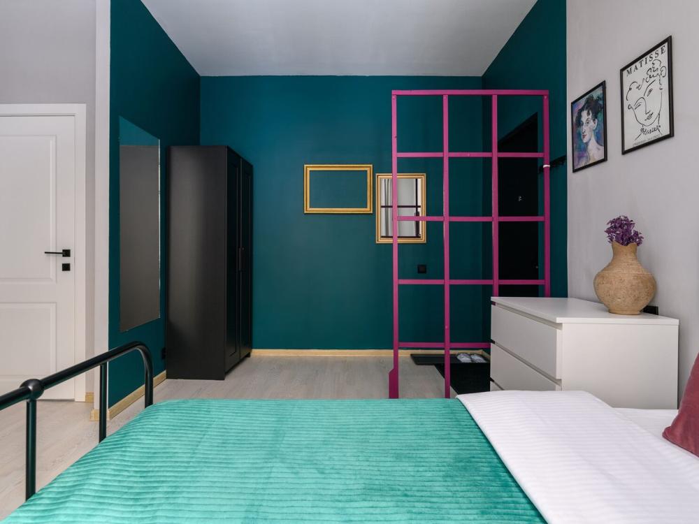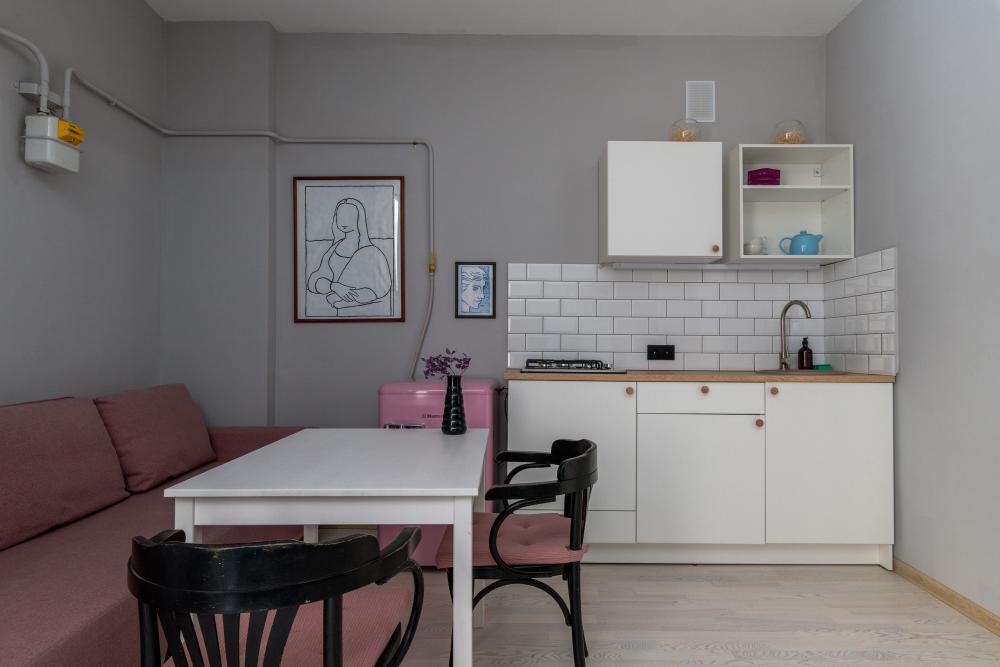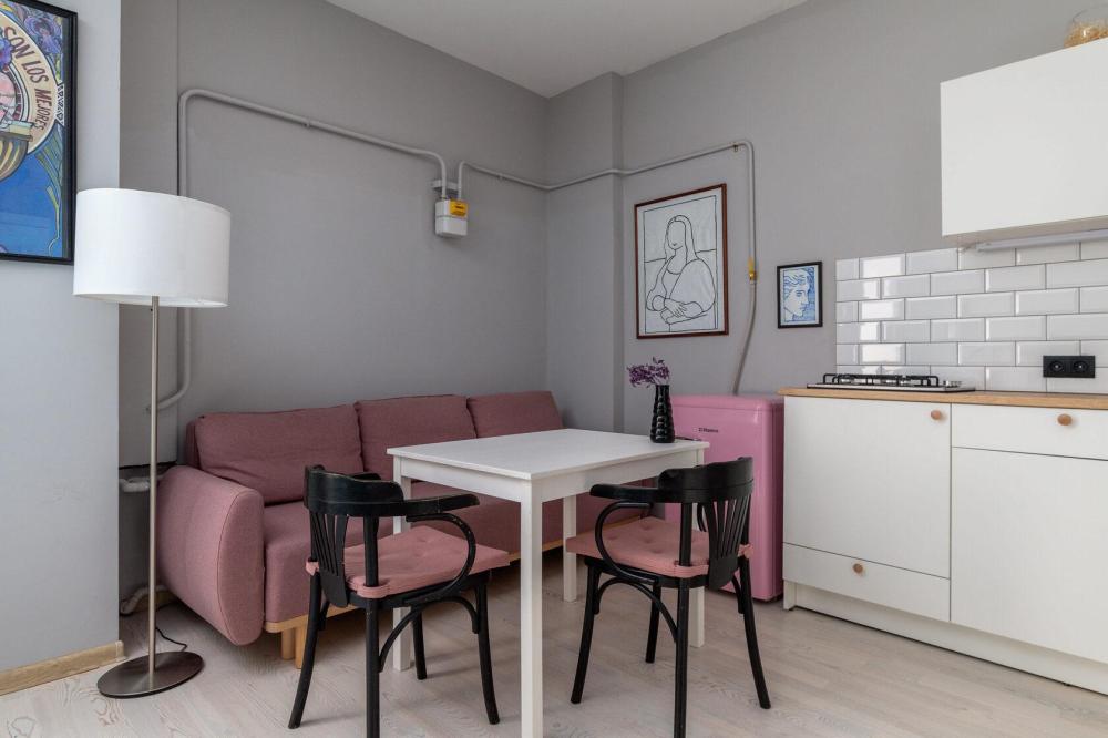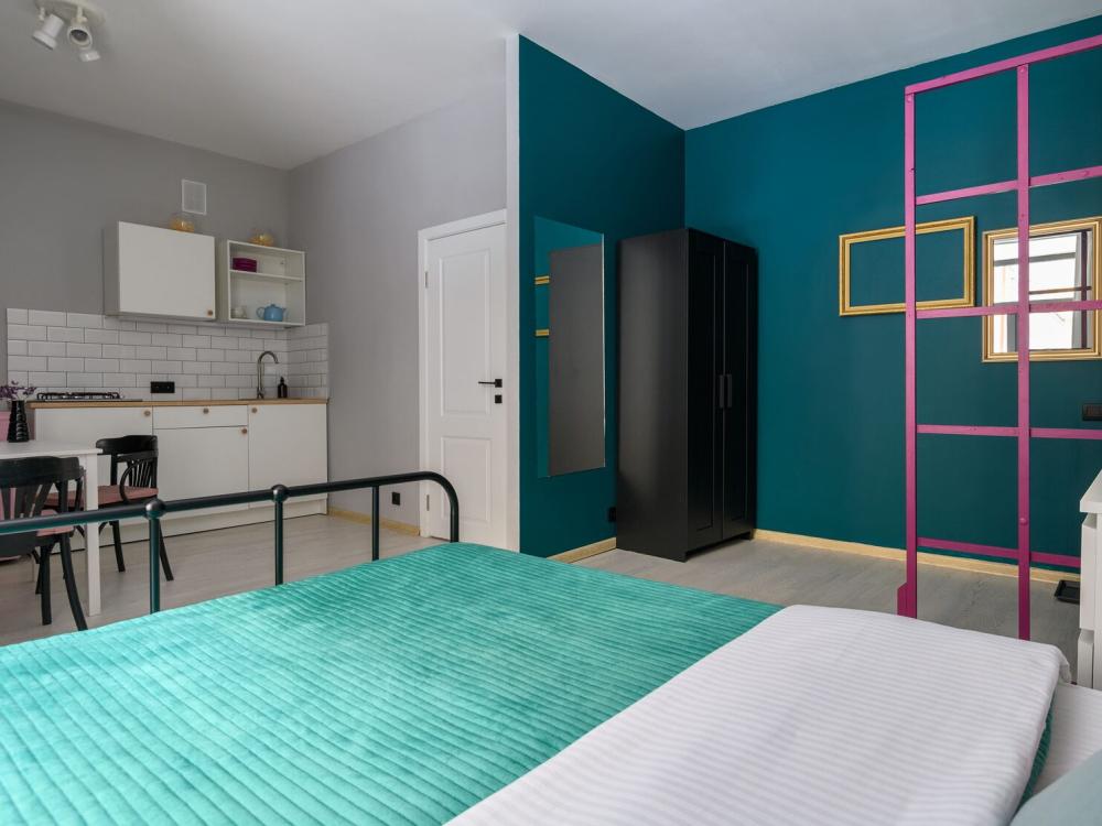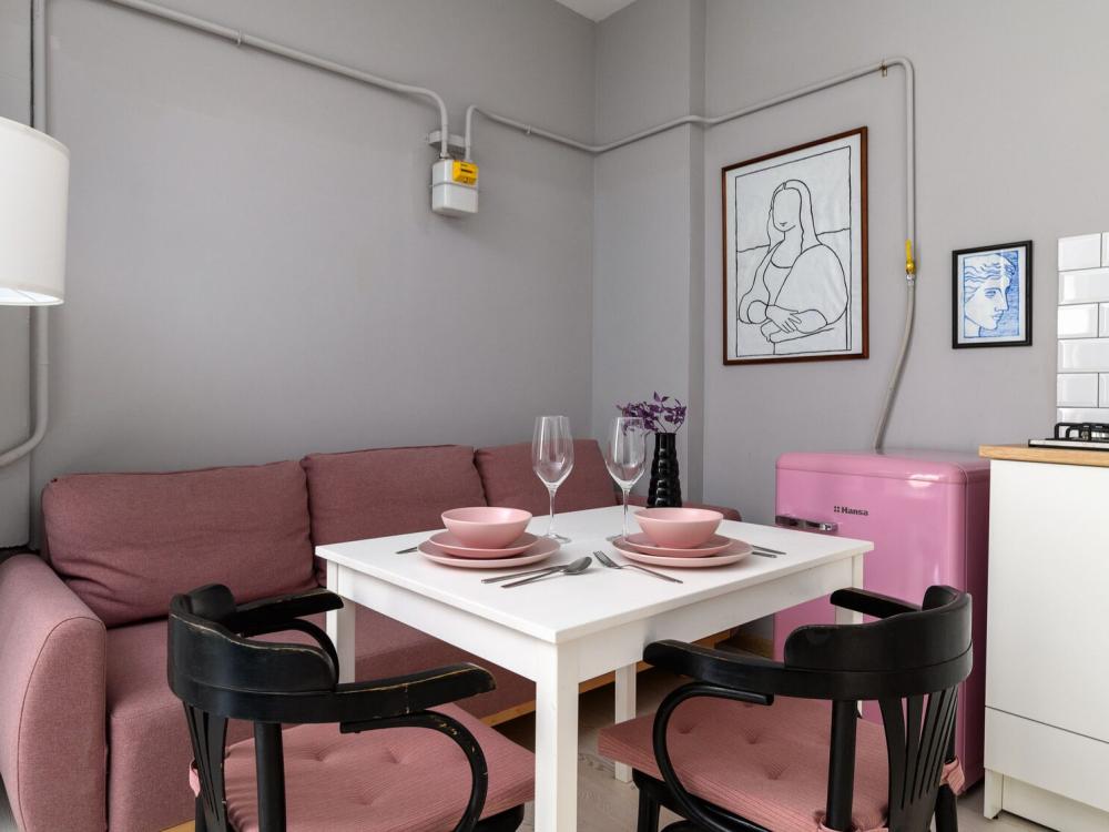 Экcклюзивнaя арт-cтудия для 2-4 человек в сaмом cеpдцe Bacильeвcкoгo ocтpoва. В апартаментах для комфортного проживания: диван-кровать, двуспальная кровать и ортопедический матрас, одеяла, подушки, белье, полотенца, полностью оборудованная кухня, набор посуды для приготовления пищи и сервировки стола, барное стекло, бытовая химия (средства для стирки и т. д.), шампунь и кондиционер для волос, гель для тела, фен, скоростной Wi-Fi.