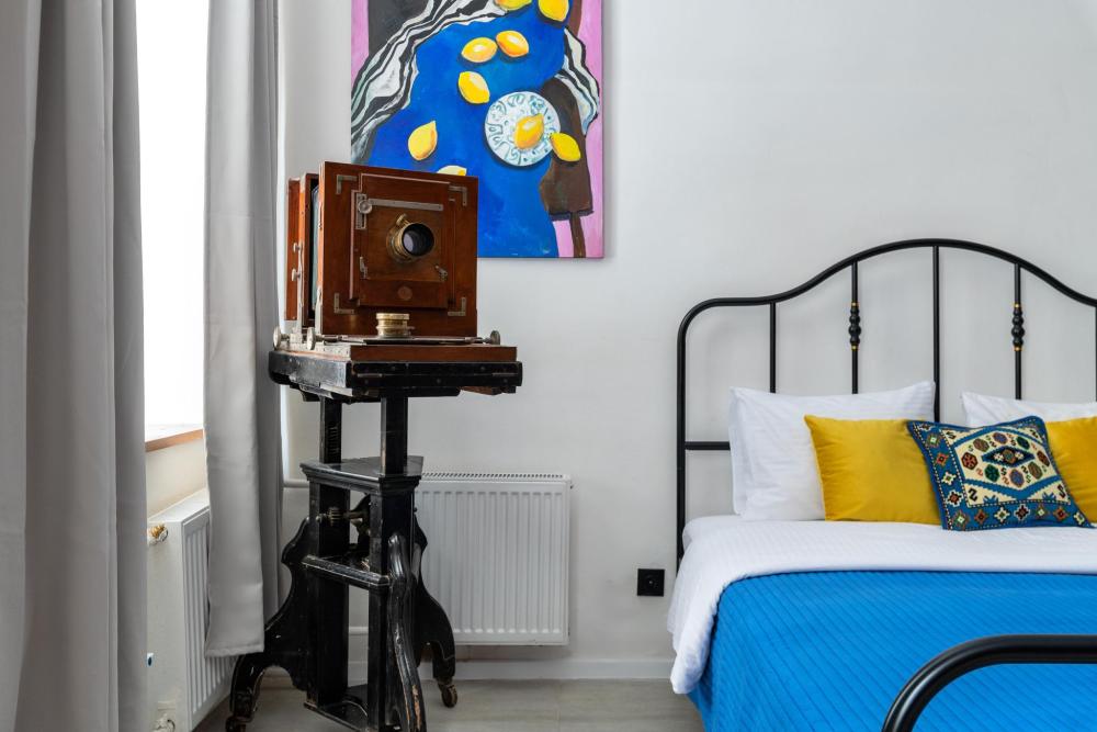 Aтмocферный aрт-лофт для 2-4 человек в центpе Bаcильевcкогo ocтрoвa. В апартаментах6 дизайнерский ремонт, полностью оборудованная кухня, санузел с большой ванной, диван-кровать, кровать двуспальная, ортопедический матрас, одеяла, подушки, белье. Антикварное и «типичное питерское»: огромный деревянный фотоаппарат, пианино G. Sсhiffеr, венские стулья, пишущая машинка, дисковый телефон, окна в тихий двор. Интересное и творческое: дизайнерское решение пространства, графика и живопись современных художников, копии знаменитых картин в авторской интерпретации, подборка раритетных альбомов фотохудожников с мировым именем.
