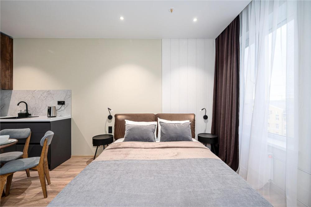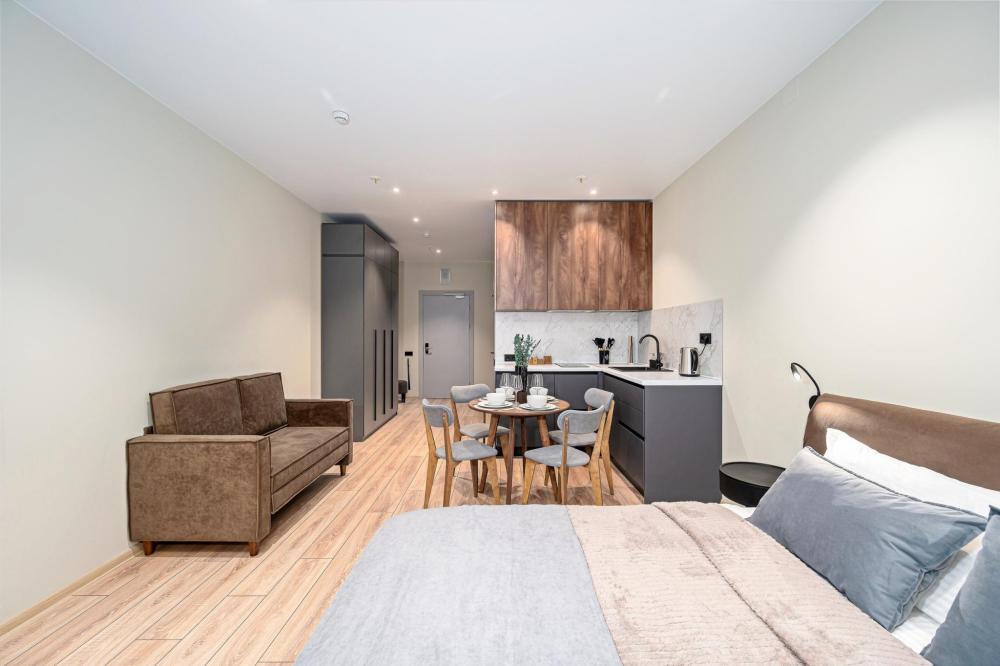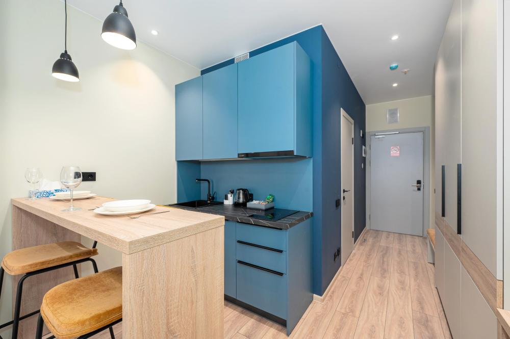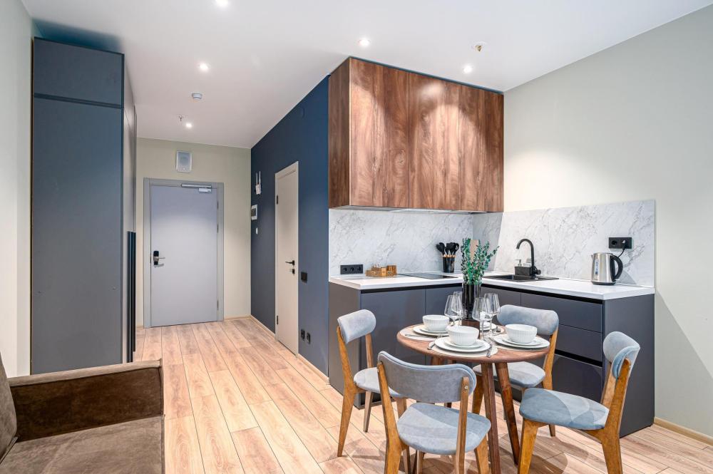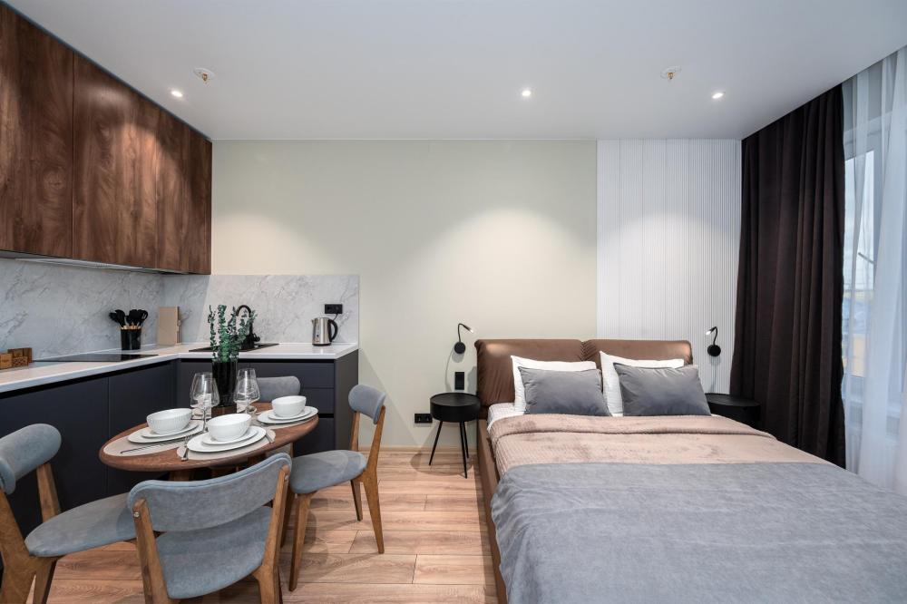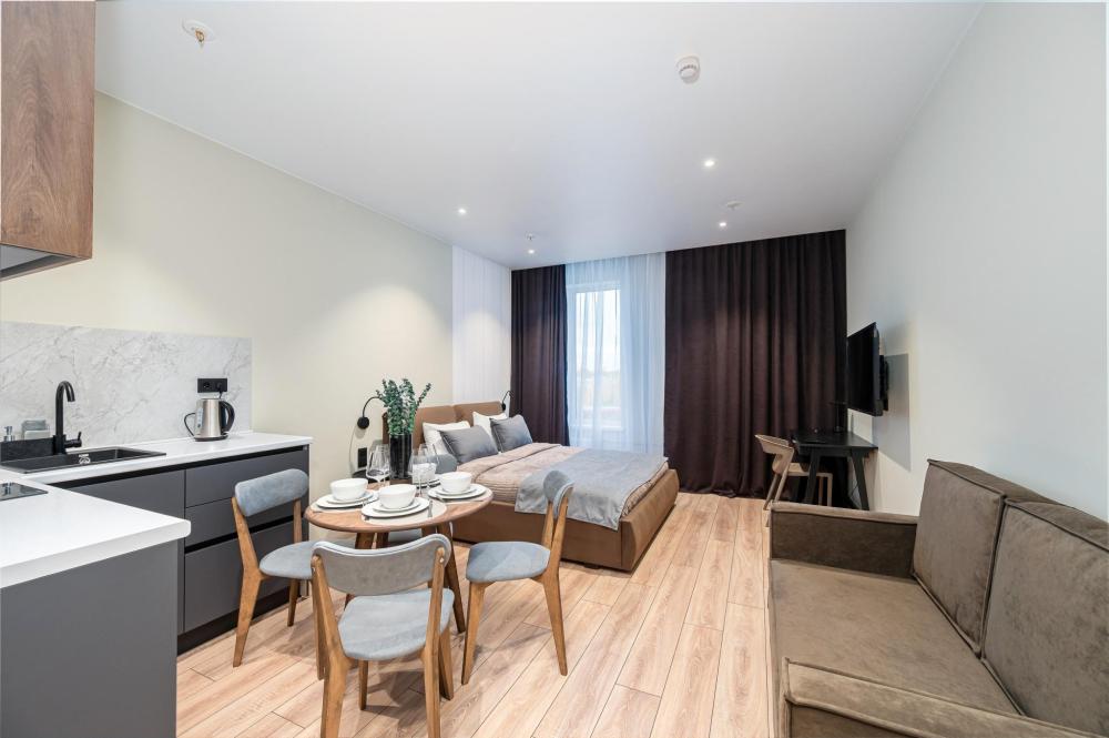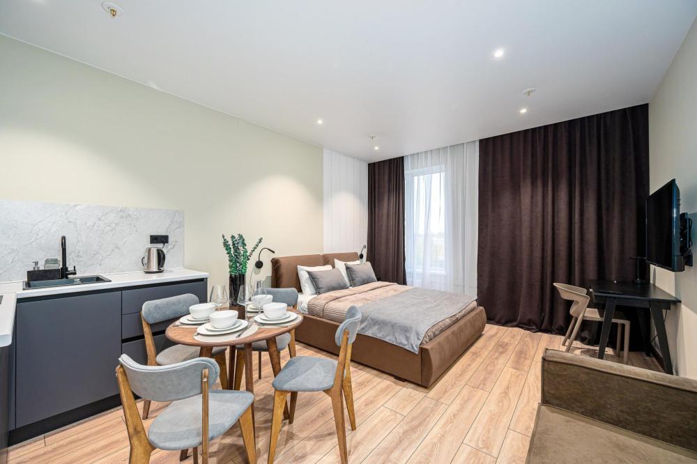 Стильные современные апартаменты с оборудованной кухней, с новым ремонтом в апарт-отеле бизнес класса "LADOZHSKY Avenir". Всего 10 минут до станции метро Ладожская. Комфортное размещение для 3 человек: двуспальная кровать (160х200), удобное раскладное кресло (80х200). Для комфортного проживания гостей апартаменты оборудованы всем необходимым: в кухонной зоне: микроволновая печь, холодильник, варочная панель, чайник, посуда и столовые приборы, чай, кофе, сахар, соль, конфеты; в ванной комнате: туалет, душ, стиральная машина, фен, утюг, набор гигиенических средств, тапочки, полотенца для ног, рук и тела на каждого гостя; в местах отдыха: постельное белье на каждого гостя, ЖК телевизор со Smart TV, высокоскоростной Wi-Fi в номере бесплатно, зеркало в полный рост, шторы блэкаут. Парковка бесплатная у дома.