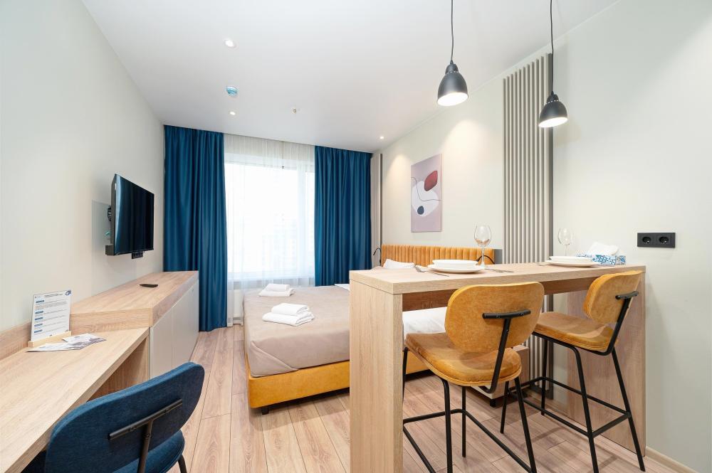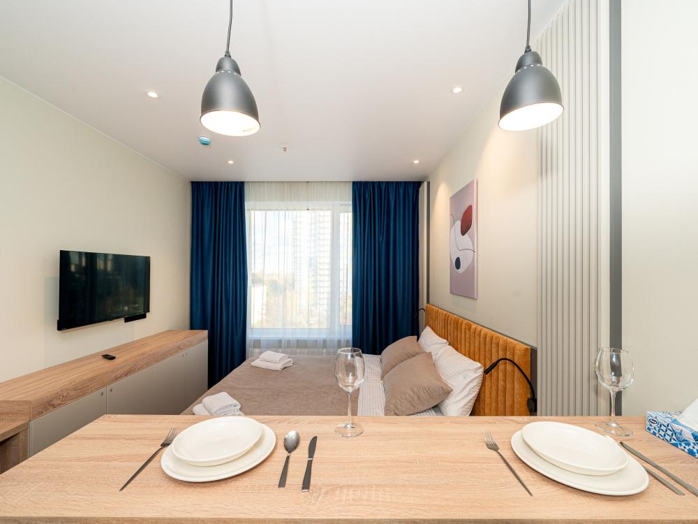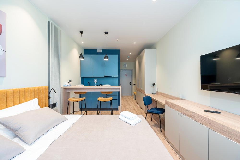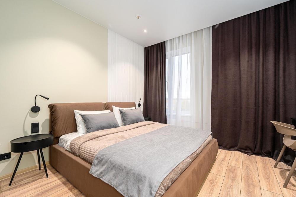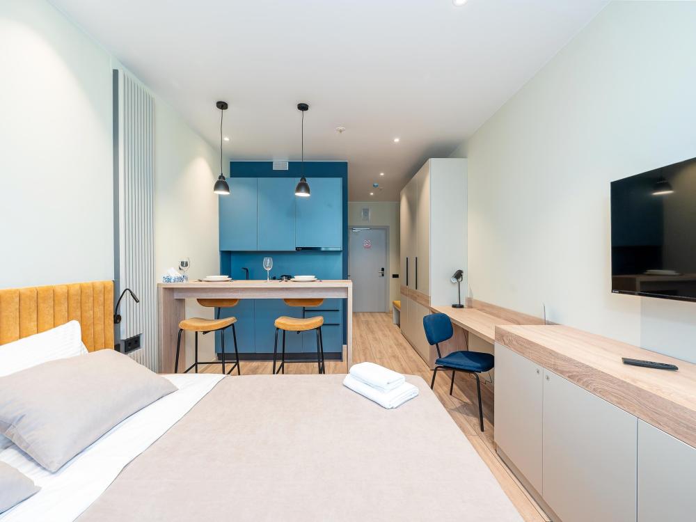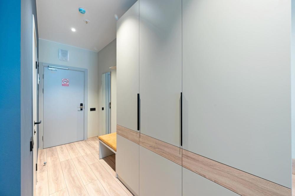 Стильные современные апартаменты с оборудованной кухней, с новым ремонтом в апарт-отеле бизнес класса "LADOZHSKY Avenir". Всего 10 минут до станции метро Ладожская. Комфортное размещение для 3 человек: двуспальная кровать (160х200), удобное раскладное кресло (80х200). Для комфортного проживания гостей апартаменты оборудованы всем необходимым: в кухонной зоне: микроволновая печь, холодильник, варочная панель, чайник, посуда и столовые приборы, чай, кофе, сахар, соль, конфеты; в ванной комнате: туалет, душ, стиральная машина, фен, утюг, набор гигиенических средств, тапочки, полотенца для ног, рук и тела на каждого гостя; в местах отдыха: постельное белье на каждого гостя, ЖК телевизор со Smart TV, высокоскоростной Wi-Fi в номере бесплатно, зеркало в полный рост, шторы блэкаут. Парковка бесплатная у дома.