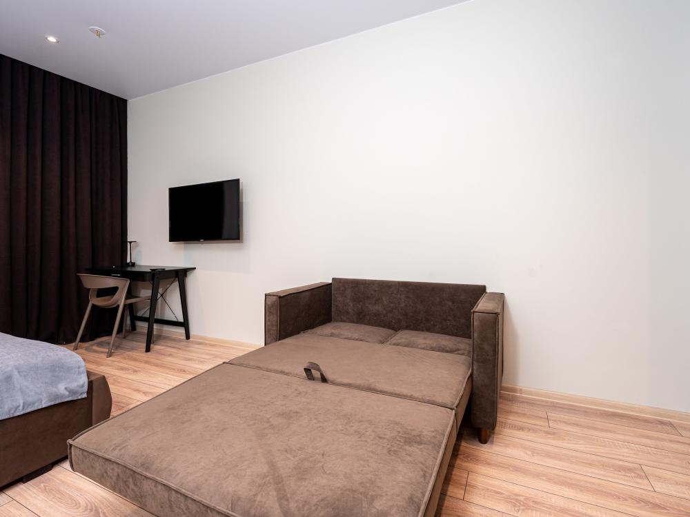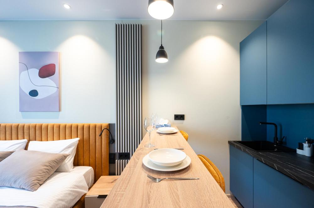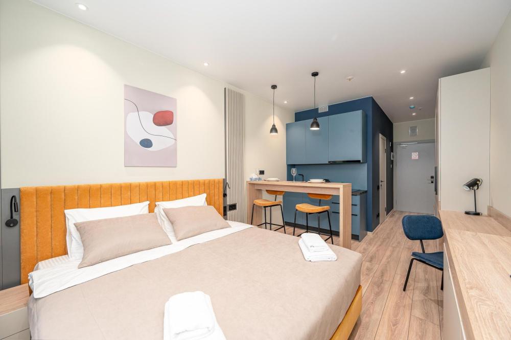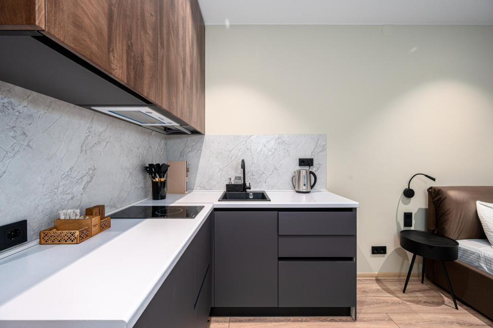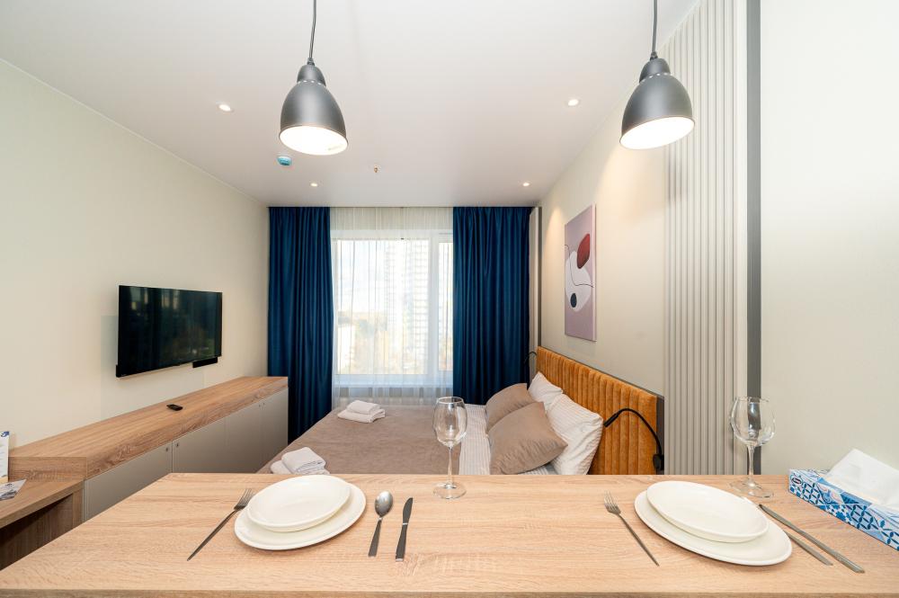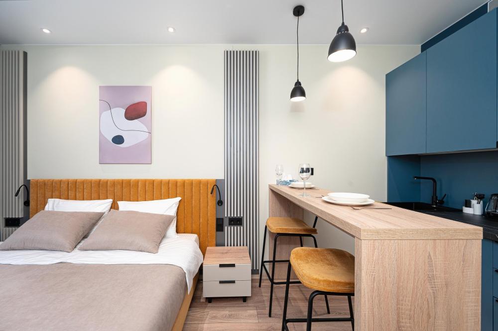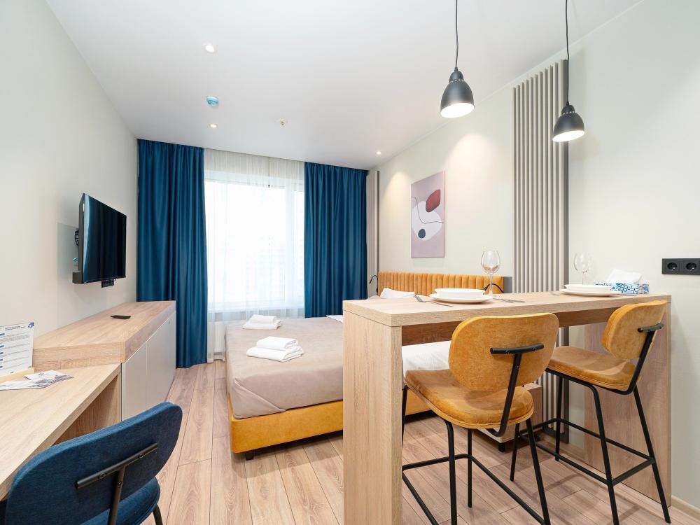 Стильные современные апартаменты с оборудованной кухней, с новым ремонтом в апарт-отеле бизнес класса "LADOZHSKY Avenir". Всего 10 минут до станции метро Ладожская. Комфортное размещение для 3 человек: двуспальная кровать (160х200), удобное раскладное кресло (80х200). Для комфортного проживания гостей апартаменты оборудованы всем необходимым: в кухонной зоне: микроволновая печь, холодильник, варочная панель, чайник, посуда и столовые приборы, чай, кофе, сахар, соль, конфеты; в ванной комнате: туалет, душ, стиральная машина, фен, утюг, набор гигиенических средств, тапочки, полотенца для ног, рук и тела на каждого гостя; в местах отдыха: постельное белье на каждого гостя, ЖК телевизор со Smart TV, высокоскоростной Wi-Fi в номере бесплатно, зеркало в полный рост, шторы блэкаут. Парковка бесплатная у дома.