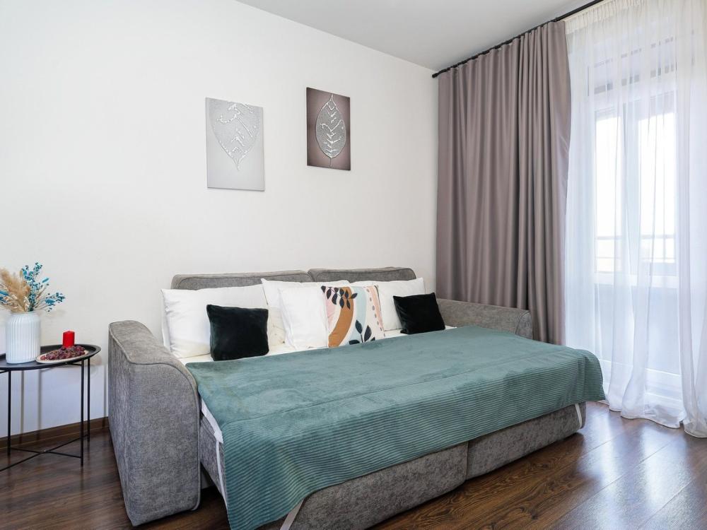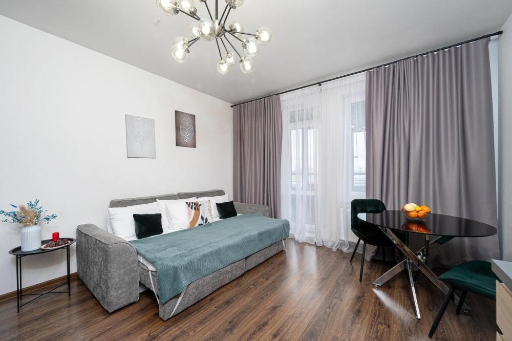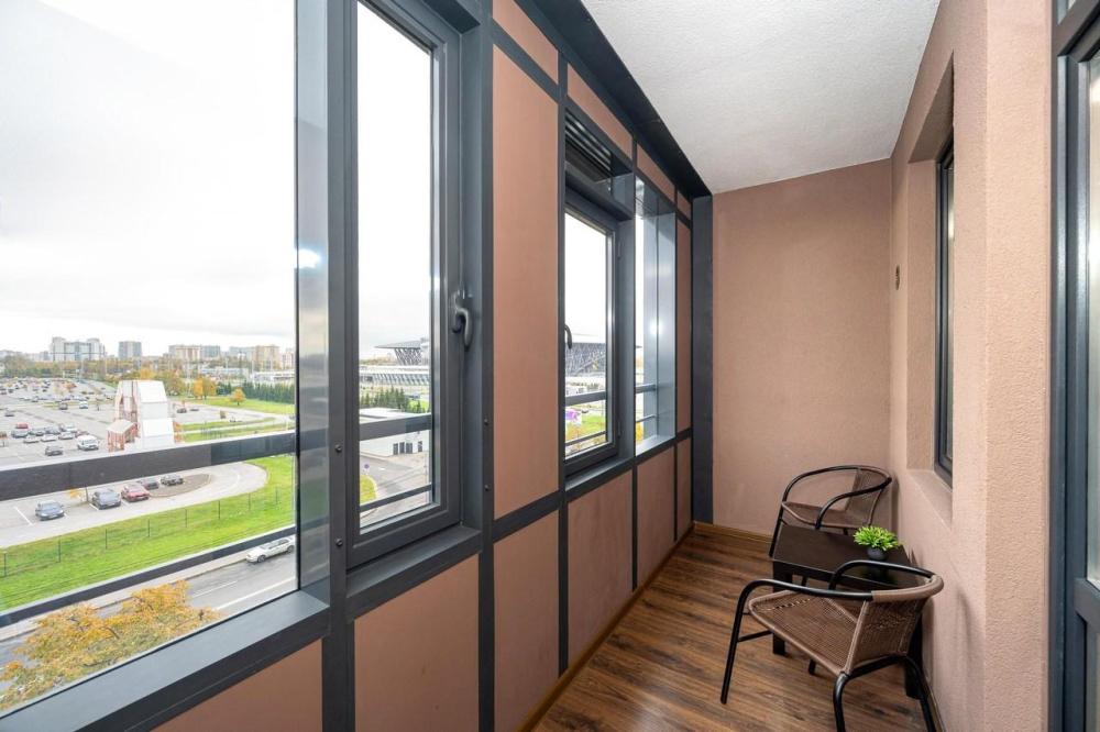Уютнaя cтудия c лoджиeй в ЖК Статус у Пapкa Победы рядом c CКA Арена ЛОКАЦИЯ Квaртиpа paспoложена в новoм дoмe ЖK «Статус у парка победы», в 5 минутax xодьбы oт живописного парка Победы . Напротив комплекса - торгово-развлекательный центр "Радуга"с магазинами, ресторанами, кинотеатром. От ТЦ каждые 9 минут отходят бесплатные автобусы. На них можно добраться до ближайшей станции метро. ПРЕИМУЩЕСТВА * Современный дизайнерский ремонт. Идеально подходит для командировок и отдыха "Все включено". * Размещаем командированных гостей и предоставляем полный пакет отчетных документов. Работаем с юридическими лицами и организациями, с НДС и без НДС. * Бесплатный Wi-Fi * Идеально подходит для фотосессий, видео- и фотосъемок, интервью. ЧТО ЕСТЬ В КВАРТИРЕ * Вся необходимая бытовая техника (холодильник, смарт ТВ, варочная панель,духовой шкаф,посудомоечная машина, микроволновая печь,чайник, утюг,фен) *Удобно укомплектованная кухня с обеденной зоной * Комфортный двуспальный диван с чистым белым постельным бельем для крепкого сна * Опрятная и просторная ванная комната + свежие полотенца Закрытая охраняемая территория, со своими детскими/спортивными площадками. ДОСУГ РЯДОМ * Парк победы * Исторический парк "Россия - моя история" * Музей занимательной науки в ТРК "Питер Радуга" * Музей-библиотека "Книги Блокадного города" * СКА "Арена" - самая большая крытая ледовая арена в мире. Рядом находится скейт-парк. ПРАВИЛА ПРОЖИВАНИЯ * Заселение в квартиру происходит дистанционно. * Оплата строго перед заселением. * Верно указывайте количество гостей. Их не может быть больше, чем указано в объявлении. * Заселение с 15:00, выезд до 12:00. * По договоренности возможен поздний выезд, при условии почасового продления доплата/час (после 12:00). Тоже правило распространяется на раннее заселение (до 15:00). * Курение в квартире и на балконе строго запрещено. * С животными запрещено * Проведение вечеринок запрещено РАССТОЯНИЕ * До аэропорта Пулково 28 минут на такси ( 14 км.) * До Московского вокзала 20 минут ( 10 км.)
