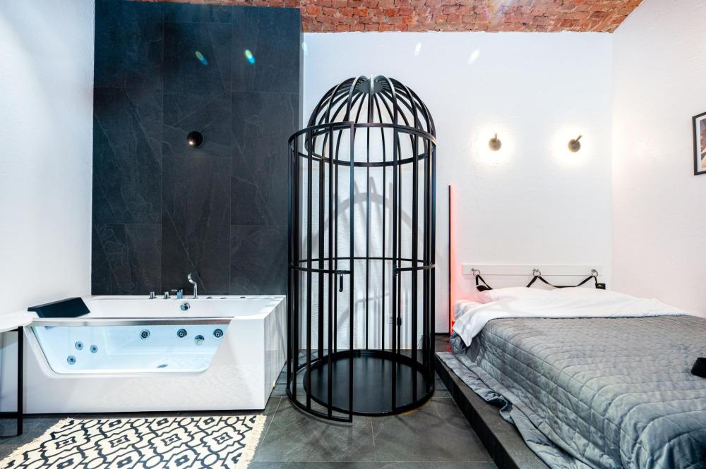 Уникальная студия с особенной атмосферой для приватного отдыха, романтических встреч и ролевых сценариев. Здесь вы сможете расслабиться, раскрыться и получить новые ощущения в комфортной обстановке. Квартира создает уникальное настроение: приглушенный свет, продуманная атмосфера, качественный интерьер и профессиональный инвентарь. Чистота и гигиена - наш приоритет. Перед каждым гостем проводится глубокая уборка со специальными средствами, кварцевание квартиры, обработка поверхностей антисептиком, смена белья и полотенец. Расположение: На Невском проспекте в центре города, всего 5 минут до метро. В квартире вас ждет: - Удобна кровать 160х200 с точками крепления - Х-крест - Клетка - Джакузи в комнате - Просторный санузел - Качели с несколькими точками фиксации - Надёжное кованое крепление для шибари - Качественная атрибутика и аксессуары Дополнительно доступна сeкc-машина с одноразовыми насадками за 5000 р. Анонимность 100% — дистанционное заселение, без личного контакта. Условия проживания: - Заезд после 16:00, выезд до 13:00, другое время обсуждается дополнительно. При бронировании в день заселения, время заезда может измениться! - Мы используем дистанционное заселение. Вы сможете заехать и выехать КРУГЛОСУТОЧНО. - При заезде берется залог 5000 р., возвращается в день выезда. Во время проживания: Не курите Не устраивайте шумные вечеринки Не выносите инвентарь Мы оперативно отвечаем на звонки и сообщения с 9.00 до 23.00 Будем очень рады видеть Вас среди наших гостей. Постараемся превзойти Ваши ожидания!