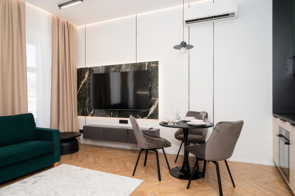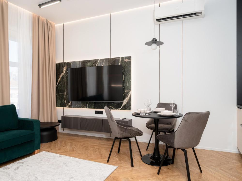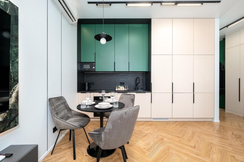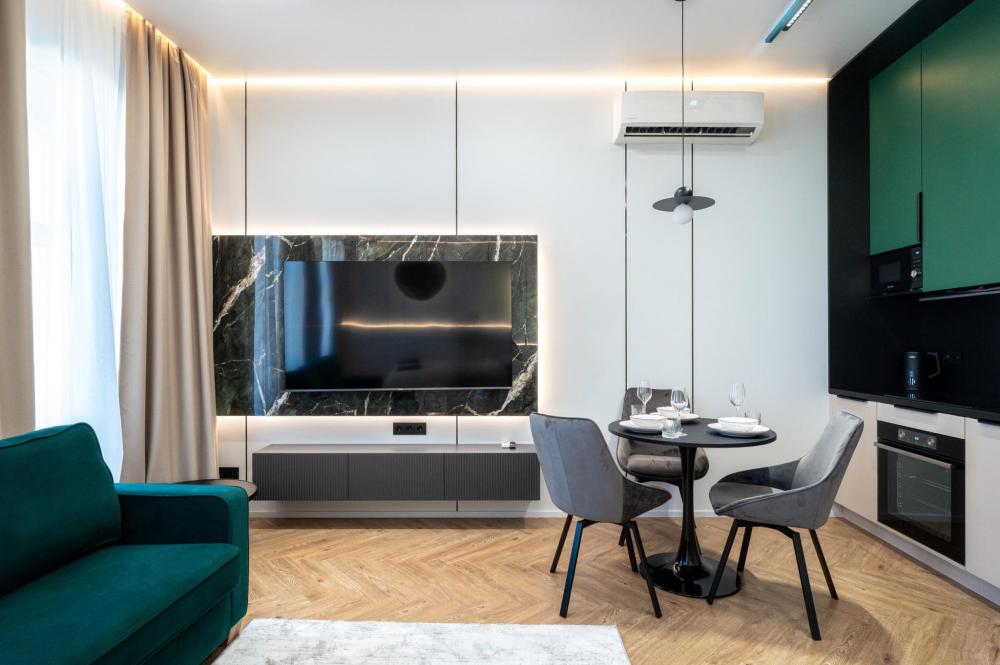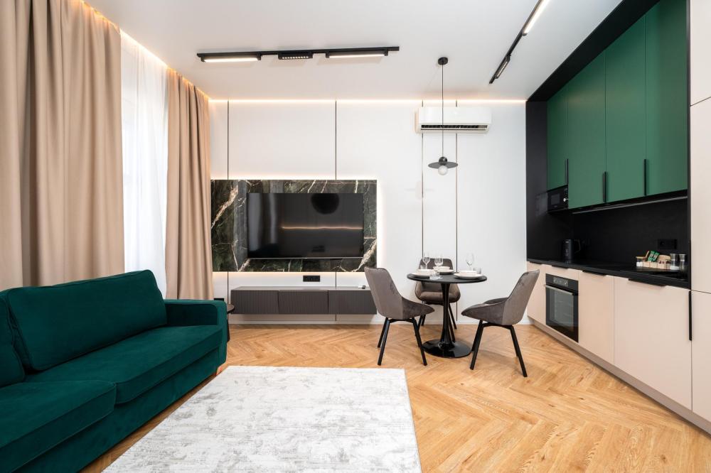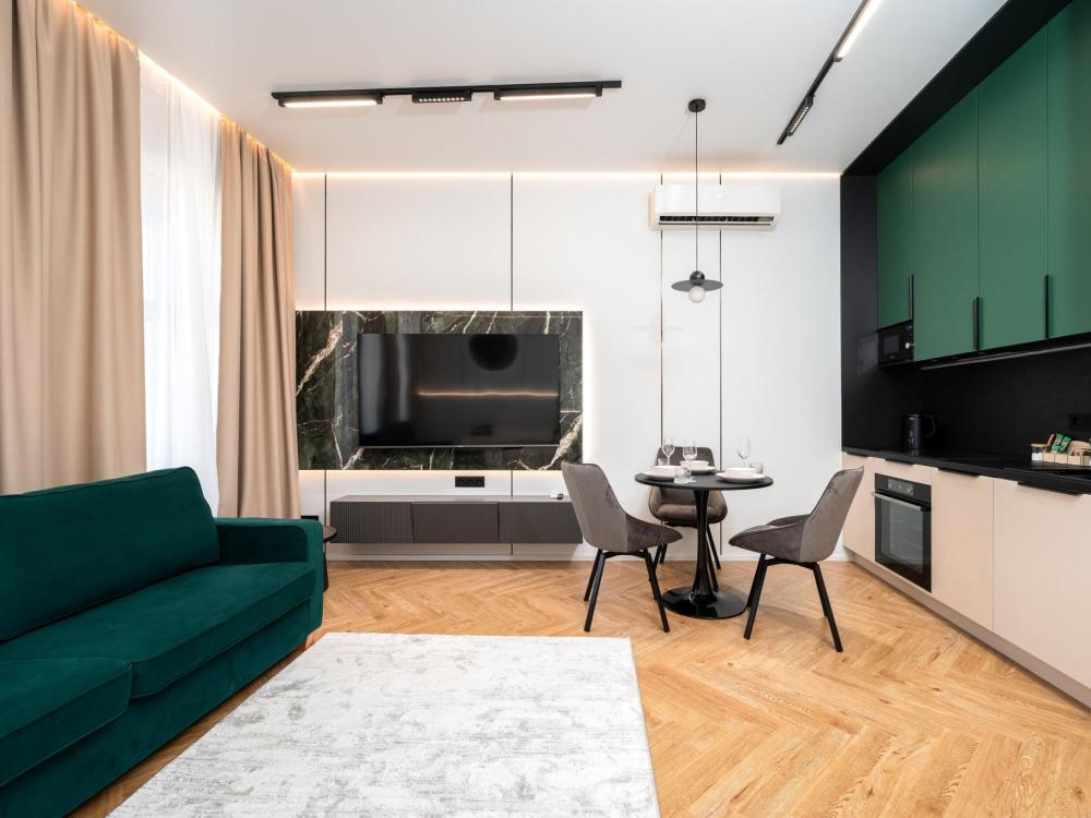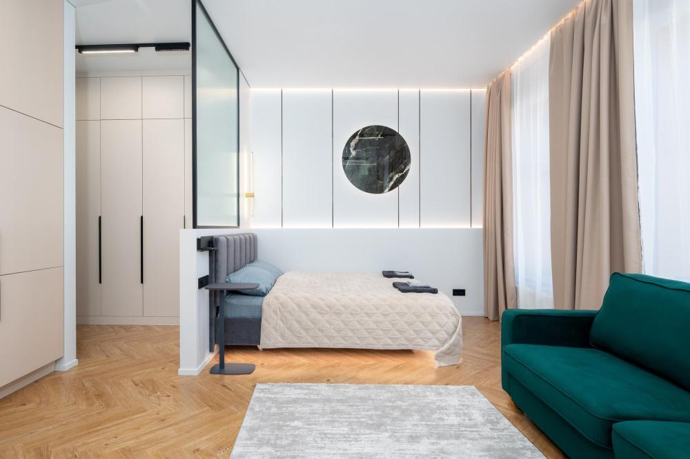 Комфортное размещение для 4 человек: двуспальная кровать (160х200) и двуспальный раскладной диван (160х200). Квартира полностью соответствует всем фото. В кухонной зоне: посудомоечная машина, микроволновая печь, плита, холодильник, чайник, посуда и столовые приборы на любой случай. Чай, кофе, сахар, соль, конфеты. В ванной комнате: туалет, ванна, фен, утюг, стиральная машина, набор гигиенических средств, тапочки, полотенца для ног, рук и тела на каждого гостя. В местах отдыха: постельное белье на каждого гостя, ЖК телевизор со Smart TV, высокоскоростной Wi-Fi в номере бесплатно, кондиционер, зеркало в полный рост.