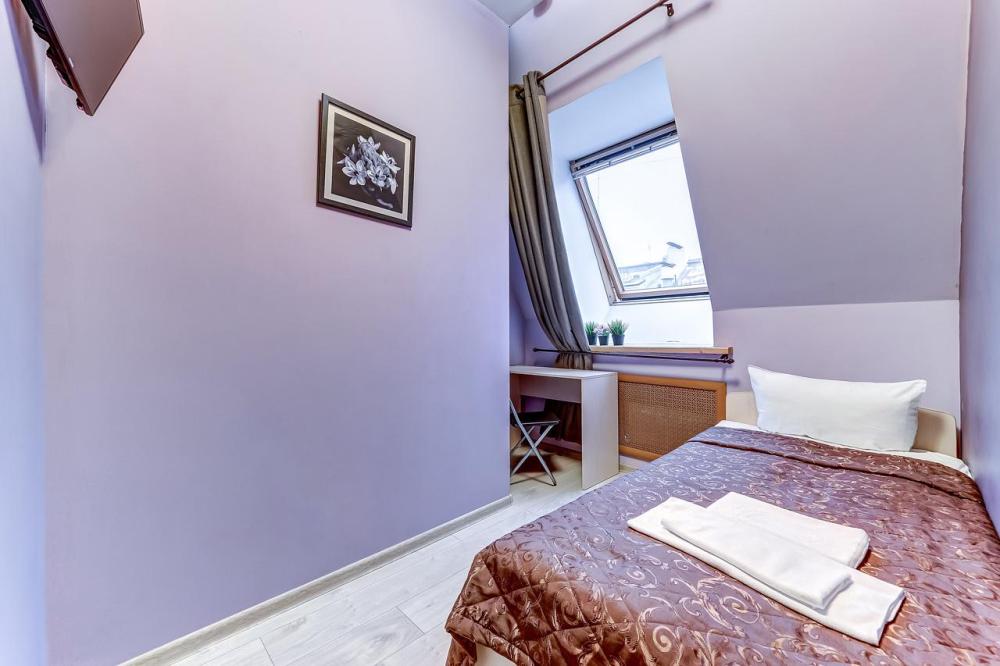 Бюджетный номер для одного гостя с окнами во двор. Душ и сан/узел в номере, 1 односпальная кровать, ЖК телевизор, полотенце, письменный столик, стул, зеркало, компактный номер 5 м².