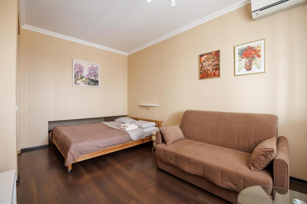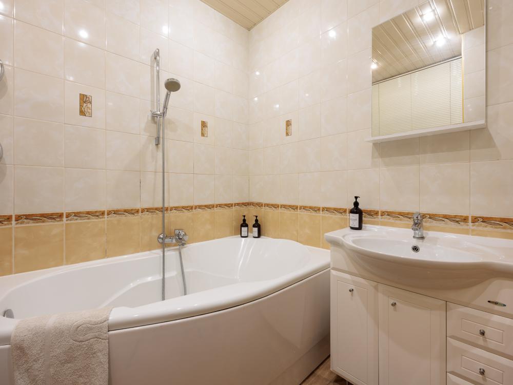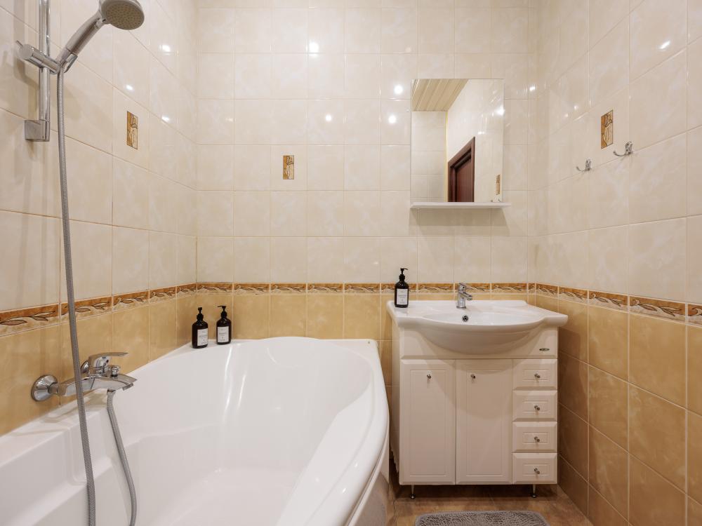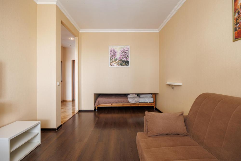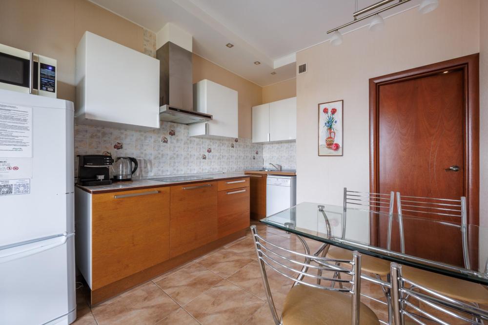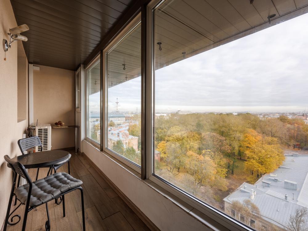 Однокомнатные апартаменты с дизайнерским ремонтом и балконом в элитном жилом комплексе "Монблан". С балкона открывается захватывающий вид на Неву, крыши Питерских домов и Смольный собор. Апартаменты оформлены в уютных тонах, современная удобная мебель подобрана известным дизайнером Максимом Мироновым. В апартаментах есть все необходимое для комфортного проживания: стиральная и посудомоечные машины, фен, микроволновая печь, кофе-машина, бесплатный wi-fi и другие полезные мелочи. Спальные места: двуспальная кровать, раскладной диван. Территория жилого комплекса закрыта, благоустроена фонтаном и ландшафтным дизайном. За безопасность дома отвечает профессиональная служба охраны. Квартира расположена в престижном районе, в самом центре города, возле Пироговской набережной. В пешей доступности находится легендарный крейсер “Аврора", “Петропавловская крепость”, Артиллерийский музей и Нахимовское училище.