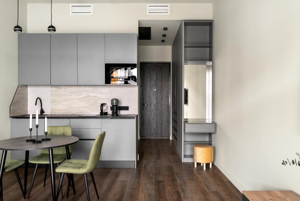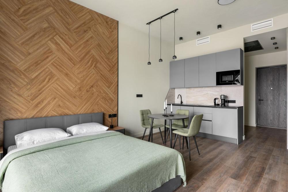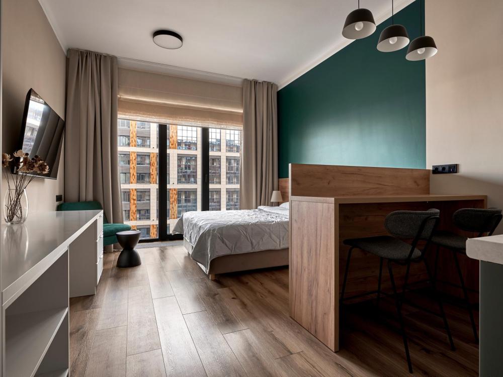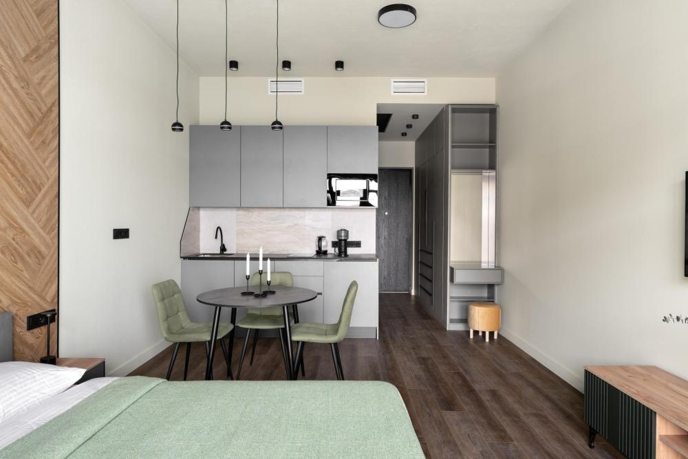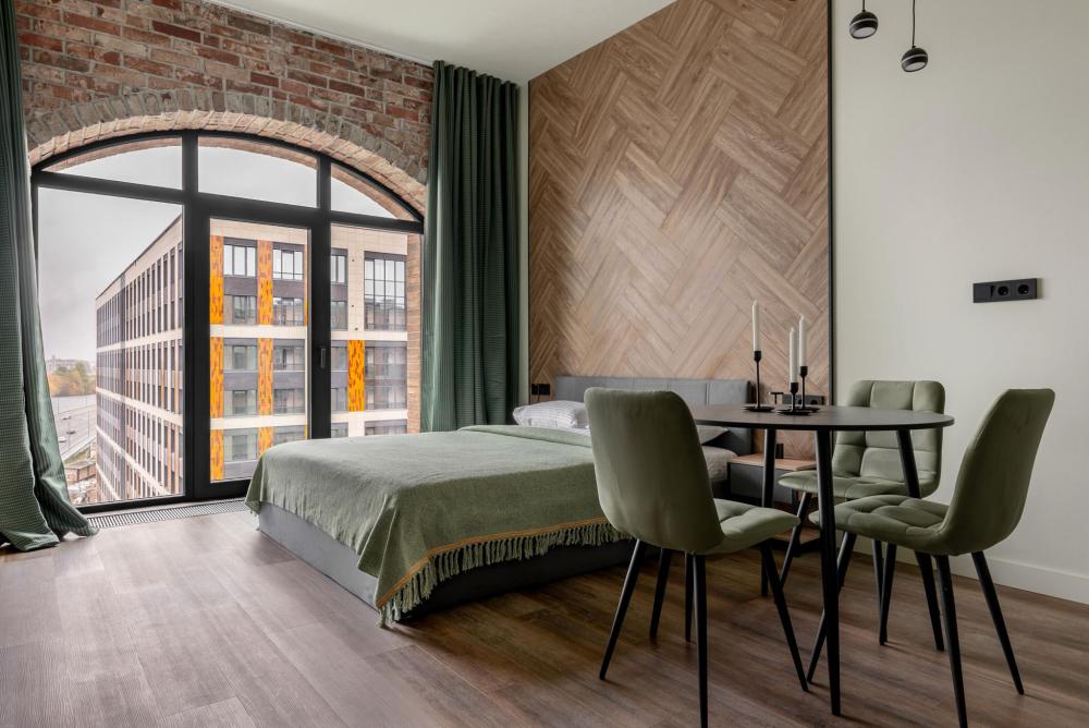 ◼ Oliva студия — стильные апартаменты на 9 этаже комплекса с видом на набережную, это современный интерьер в природных оттенках, уютная атмосфера и всё необходимое для комфортного отдыха или деловой поездки. ◼ Интерьер студии выполнен в современном стиле с элементами лофта: • кирпичная кладка, панорамные окна, теплые натуральные оттенки и акценты оливы создают атмосферу спокойствия и уюта; • двуспальная кровать с ортопедическим матрасом; • современная кухня с полным набором посуды и бытовой техники; • обеденная зона и мягкие стулья; • ТВ, Wi-Fi, кондиционер; • стильная ванная комната и всё для ухода! ◼ Внимание: корпус введен в эксплуатацию в январе 2024 г., сейчас продолжаются отделочные работы на этажах и работы по благоустройству территории в строго разрешенное законодательством время проведения шумных работ; указанные неудобства компенсируются пониженной стоимостью аренды апартамента!◼ * В стоимость проживания не включена ежедневная уборка со сменой постельного белья и полотенец — оплачивается дополнительно по запросу.