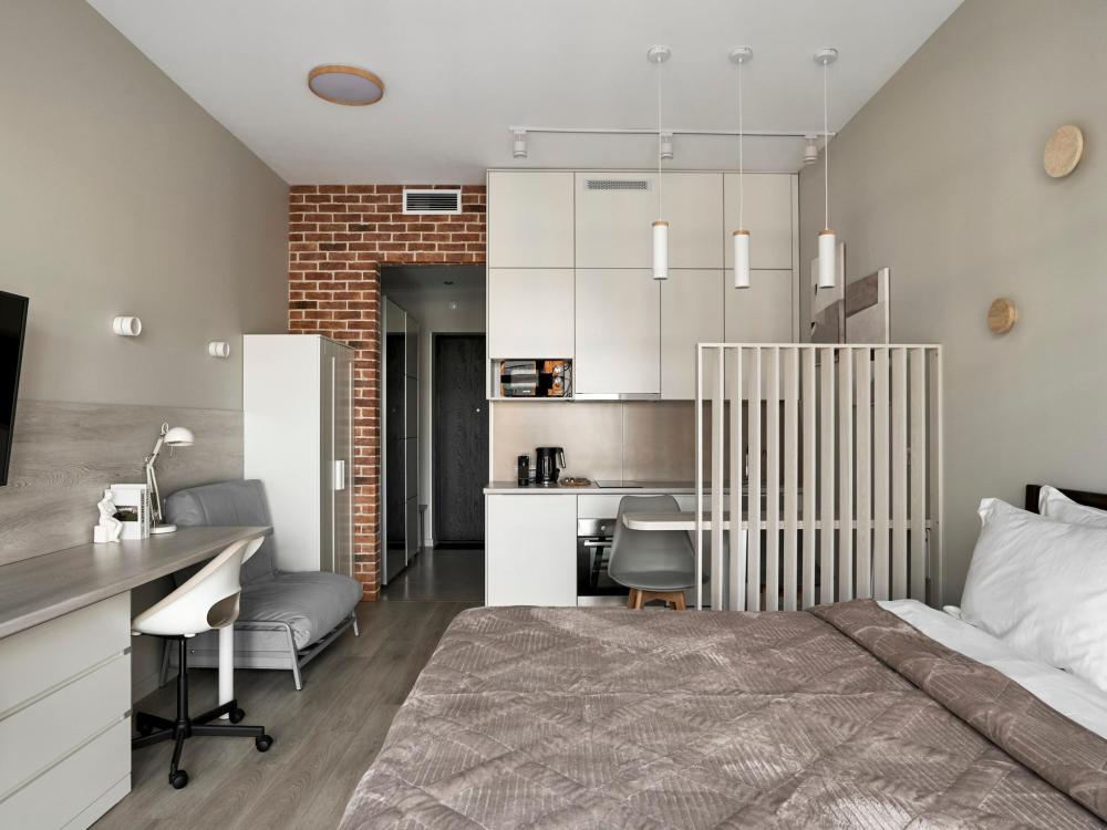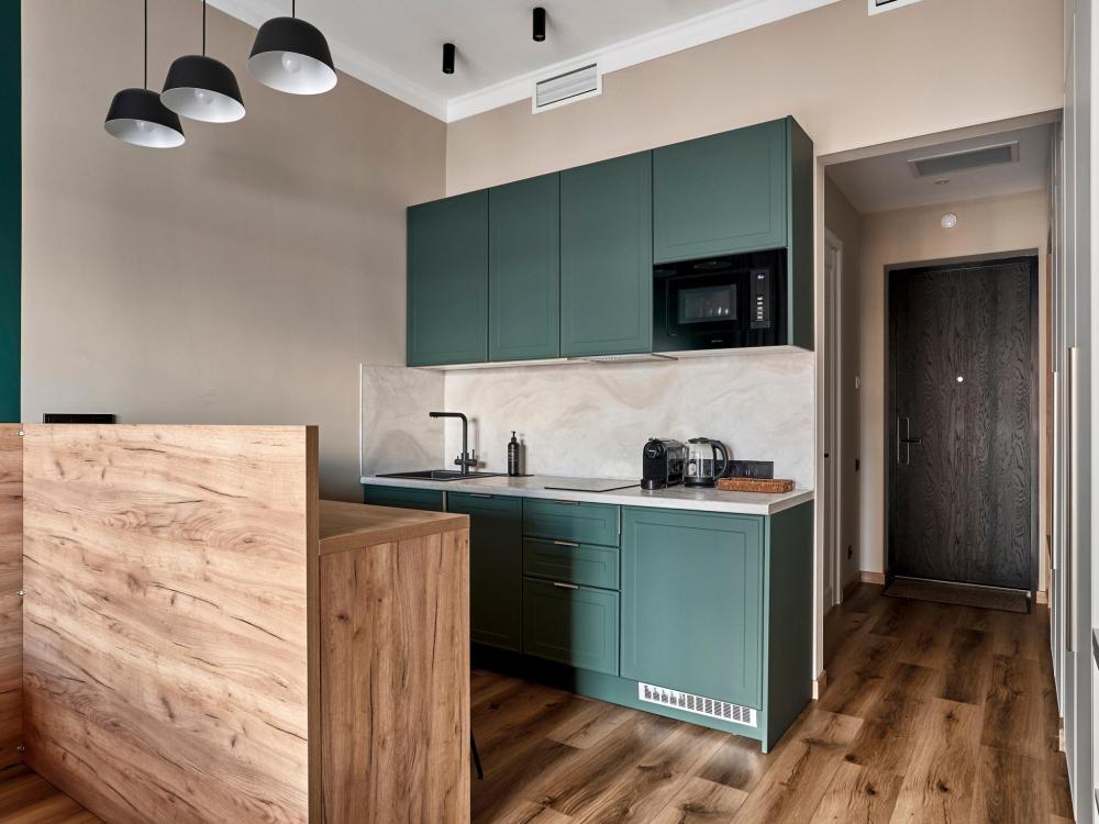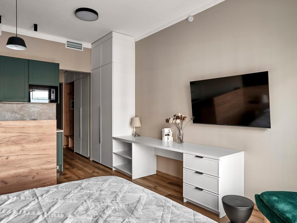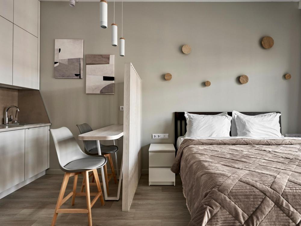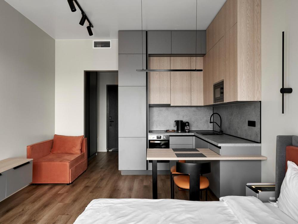 ◼ Oliva студия — стильные апартаменты на 9 этаже комплекса с видом на набережную, это современный интерьер в природных оттенках, уютная атмосфера и всё необходимое для комфортного отдыха или деловой поездки. ◼ Интерьер студии выполнен в современном стиле с элементами лофта: • кирпичная кладка, панорамные окна, теплые натуральные оттенки и акценты оливы создают атмосферу спокойствия и уюта; • двуспальная кровать с ортопедическим матрасом; • современная кухня с полным набором посуды и бытовой техники; • обеденная зона и мягкие стулья; • ТВ, Wi-Fi, кондиционер; • стильная ванная комната и всё для ухода! ◼ Внимание: корпус введен в эксплуатацию в январе 2024 г., сейчас продолжаются отделочные работы на этажах и работы по благоустройству территории в строго разрешенное законодательством время проведения шумных работ; указанные неудобства компенсируются пониженной стоимостью аренды апартамента!◼ * В стоимость проживания не включена ежедневная уборка со сменой постельного белья и полотенец — оплачивается дополнительно по запросу.
