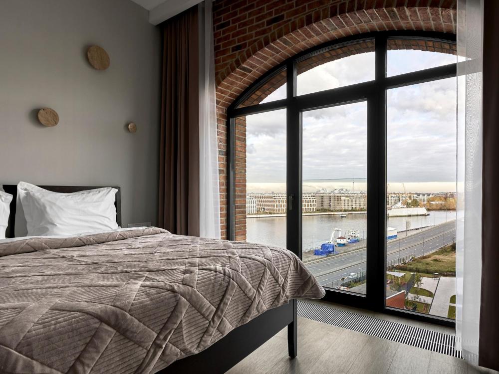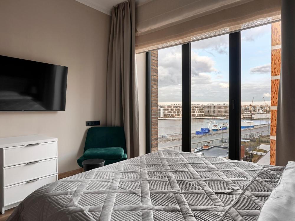 ◼ Эксклюзивные видовые Апартаменты Family площадью 70м² c 2-мя спальнями и кухней-гостиной с видом из панорамным видом из окон на реку Неву, Газпром Арену и Лахта-Центр для семейной пары с детьми или 6-х гостей Санкт-Петербурга! ◼ Высокие потолки, панорамные окна, отделка одной из стен клинкерным кирпичом, безупречная звукоизоляция, климатконтроль. ◼ В апартаменте есть все необходимое: 2 двуспальные кровати "King size" в спальнях, удобный раскладной диван (шириной 160 см), просторная кухня- гостиная. Кухонная зона: обеденная группа, плита, микроволновая печь, холодильник, чайник, посуда, столовые приборы, капсульная кофемашина Nespresso c набором капсул. Гардеробный шкаф с утюгом и гладильной доской. В ванной комнате фен, гигиенические принадлежности и набор полотенец, стиральная и сушильная машины. ◼ Внимание: корпус введен в эксплуатацию в январе 2024 г., сейчас продолжаются отделочные работы на этажах и работы по благоустройству территории в строго разрешенное законодательством время проведения шумных работ; указанные неудобства компенсируются пониженной стоимостью аренды апартамента! * В стоимость проживания не включена ежедневная уборка со сменой постельного белья и полотенец — оплачивается дополнительно по запросу.