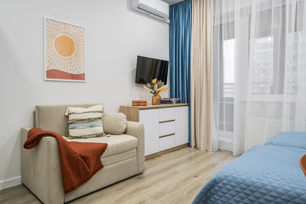 Добро пожаловать в современную квартиру-студию с дизайнерским ремонтом и бесконтактным заездом 24/7, с размещением