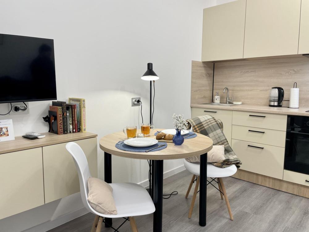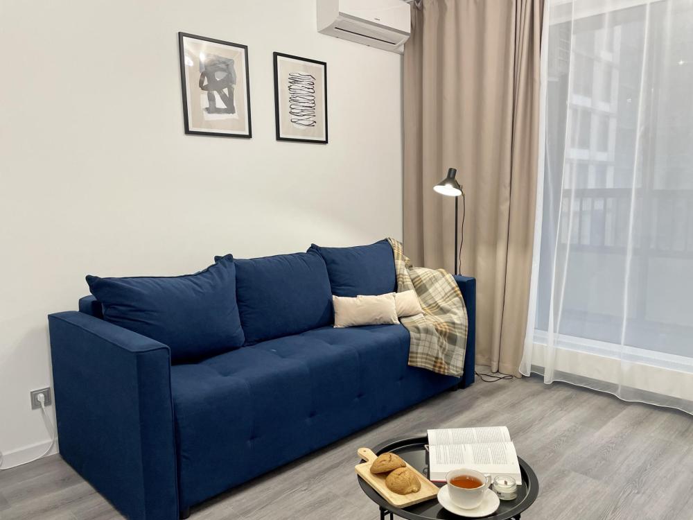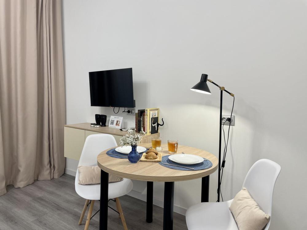 Светлая студия с дизайнерским ремонтом на берегу Невы Квартира для тех, кто ценит чистоту, порядок и домашний уют. Район с развитой инфраструктурой и удобной транспортной развязкой. Жилoй комплeкс распoлaгаeтcя нa набeрежнoй, чтo пoзволит вaм вcтречaть рaсcвeты и прoвoжать зaкaты нa бepeгу Невы. Квартира оснащена: - Уютный раскладной диван; - Свежее постельное бельё, комплект полотенец для каждого гостя; - Кухня, со всеми кухонными принадлежностями и бытовой техникой (чайник, холодильник, микроволновая печь, электрическая плита, посуда для приготовления и сервировки). - Сушилка, гладильная доска, утюг; - Совмещенный санузел с душевой кабиной; - Скоростной wi-fi; - Телевизор. Квартира подойдет для проживание 2-х гостей. Наши преимущества: - Круглосуточное дистанционное заселение. - Квартира 100% соответствует фото. - Работаем с командированными и организациями. - Предоставляем по запросу отчетные документы. - Оснащенность всем необходимым. Правила заселения: Расчетное время заезда с 14: 00 Расчетное время выезда до 12: 00 - При заселении обязательно предъявление паспорта По согласованию, за дополнительную плату допускается размещение с животными. Так же при проживании с животными вносится повышенный залог в размере 5000 рублей, который возвращается после проверки квартиры при условии сохранности имущества и чистоты. Квартира не предоставляется: - Для проведения шумных праздников и вечеринок; - Для лиц, курящих в помещении; - Лицам, не достигшим 23 лет. !!! ВНИМАНИЕ !!! Мы не предоставляем услуги регистрации иностранным гражданам !!! Остались вопросы? Свяжитесь с нами звонки принимаем с 9: 00 до 23: 00. Забронируйте прямо сейчас и наслаждайтесь отдыхом или работой в идеальных условиях! Твоя Квартира