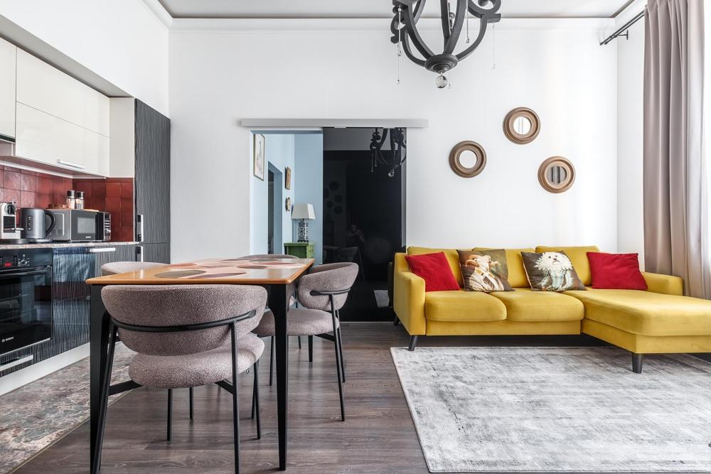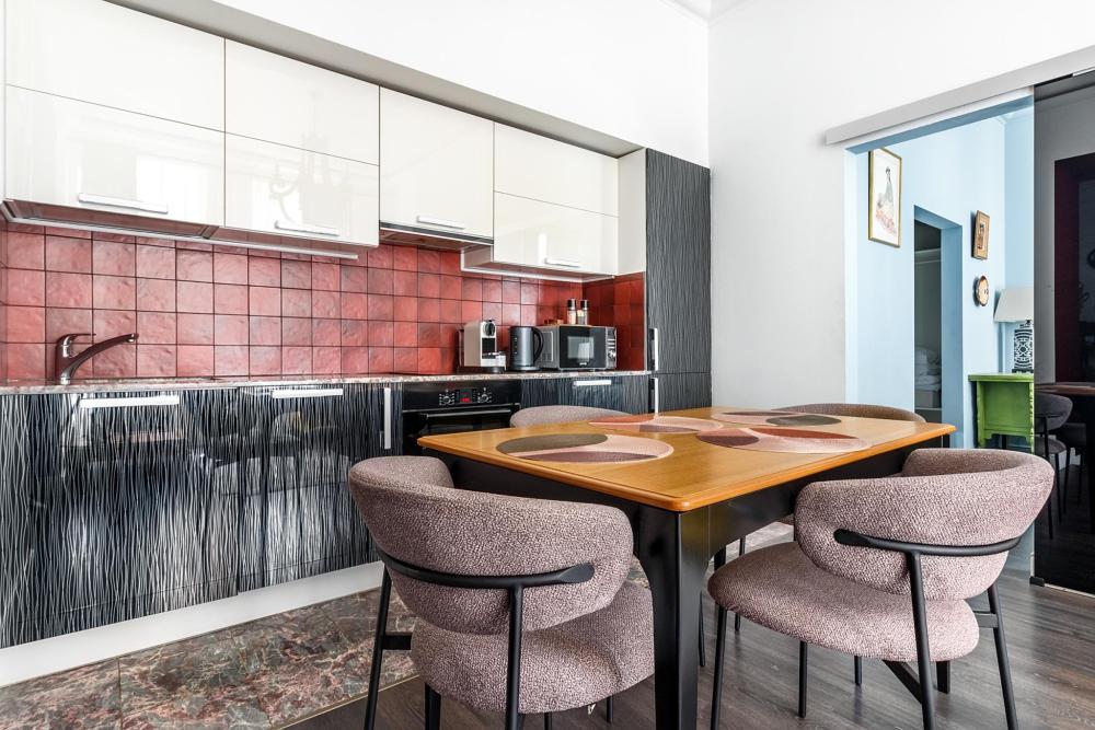 Уютная дизайнерская квартира-студия в тихом дворике исторического центра Петербурга, кухня-гостиная с отдельной спальней и гардеробной комнатой. Локация. Квартира расположена в центре Санкт-Петербурга. Канал Грибоедова и мойка, Исаакиевский собор, Невский проспект, множество достопримечательностей в пешей доступности от апартаментов. В самом доме, и вокруг него, расположены кафе, магазины и рестораны. Окна квартиры выходят в тихий, светлый внутренний двор. В закрытом дворе имеется парковочное место. Описание. Общая площадь квартиры 58 м2. Высота потолки 3.3 м. В квартире дизайнерский качественный ремонт. Квартира расположена на третьем этаже (лифта нет). В квартире есть все, для комфортного проживания. Кухня полностью оборудована бытовой техникой (включая и посудомоечную машину). Стиральная машина установлена в отдельно бытовой комнате / кладовке. В спальне имеется просторная гардеробная комната. Телевизор в гостиной. Размеры спальных мест: Двуспальная кровать в спальне: ширина — 200 см, длина — 200 см. Полутораспальный диван в гостиной: ширина — 140 см, длина — 200 см. Санузел раздельный: отдельно туалет. Отдельно душевая кабина и 2 раковины. Имеется бойлер.