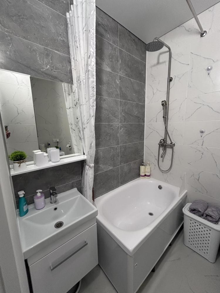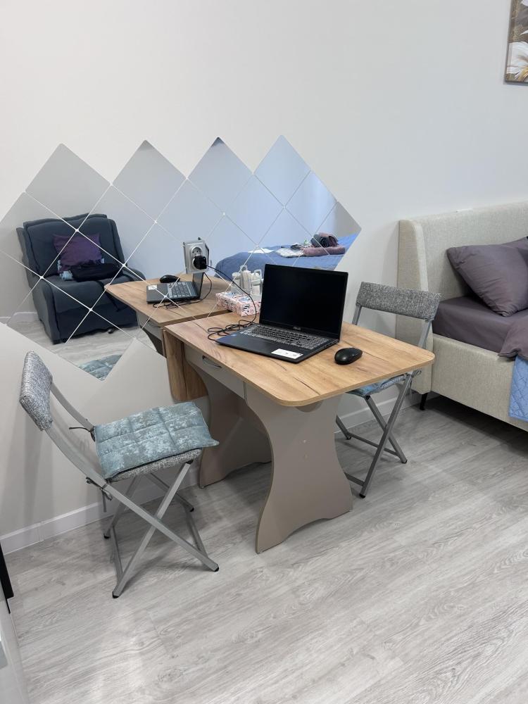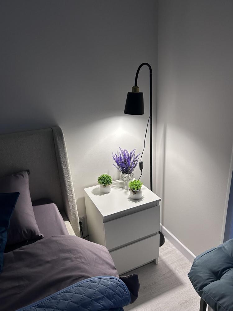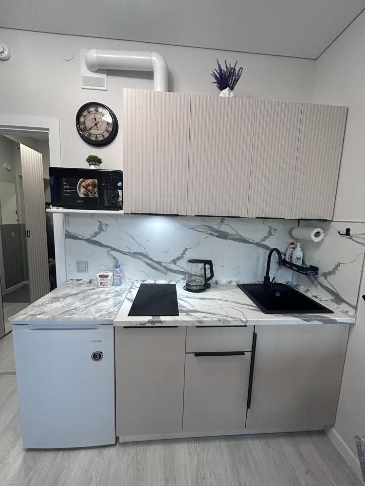 В квартире имеется: - Двуспальная кровать Аскона (160*200) с матрасом Аскона; - Раскладное кресло-кровать как дополнительное спальное место; - Прикроватная тумба, абажур; - Свежее постельное белье, полотенца для каждого гостя, одноразовые средства гигиены; - Новая кухня со всей необходимой бытовой техникой (холодильник, микроволновая печь, эл. плита, чайник, посуда), обеденный стол, стулья, чай, кофе, сахар, соль, перец; - Совмещенный санузел с ванной, стиральная машина с множественными режимами стирки для самых деликатных вещей; - Сушилка, гладильная доска, утюг с функцией пара, фен; - Скоростной интернет (200мб/с); - Телевизор.