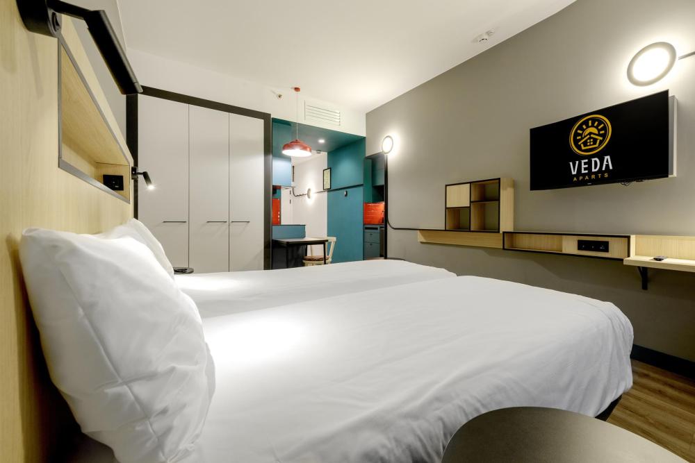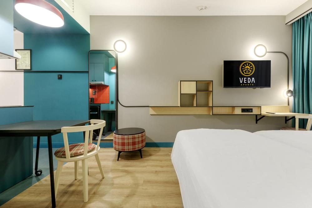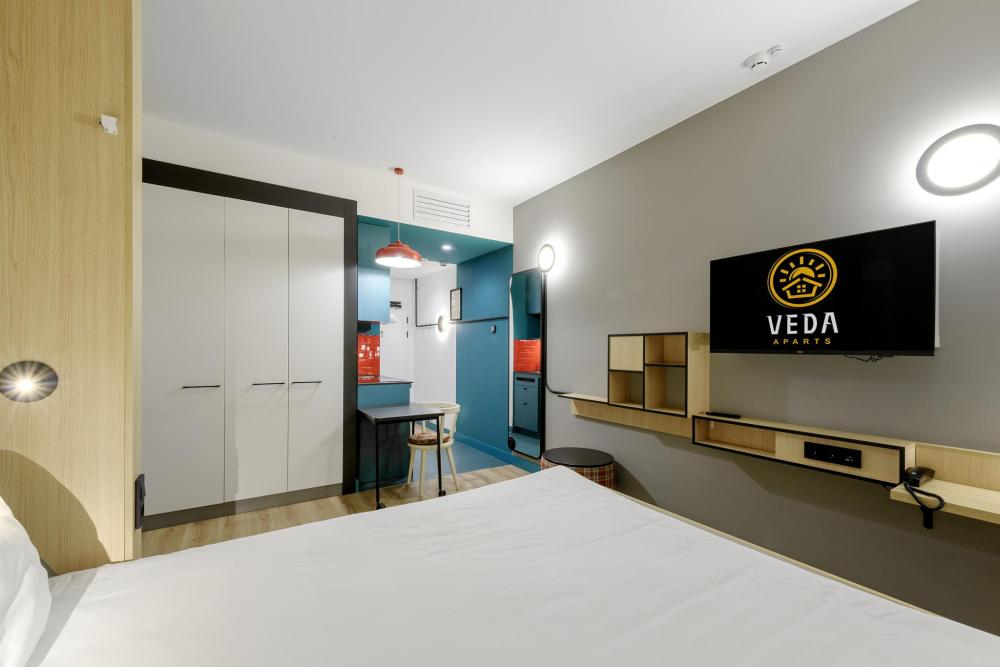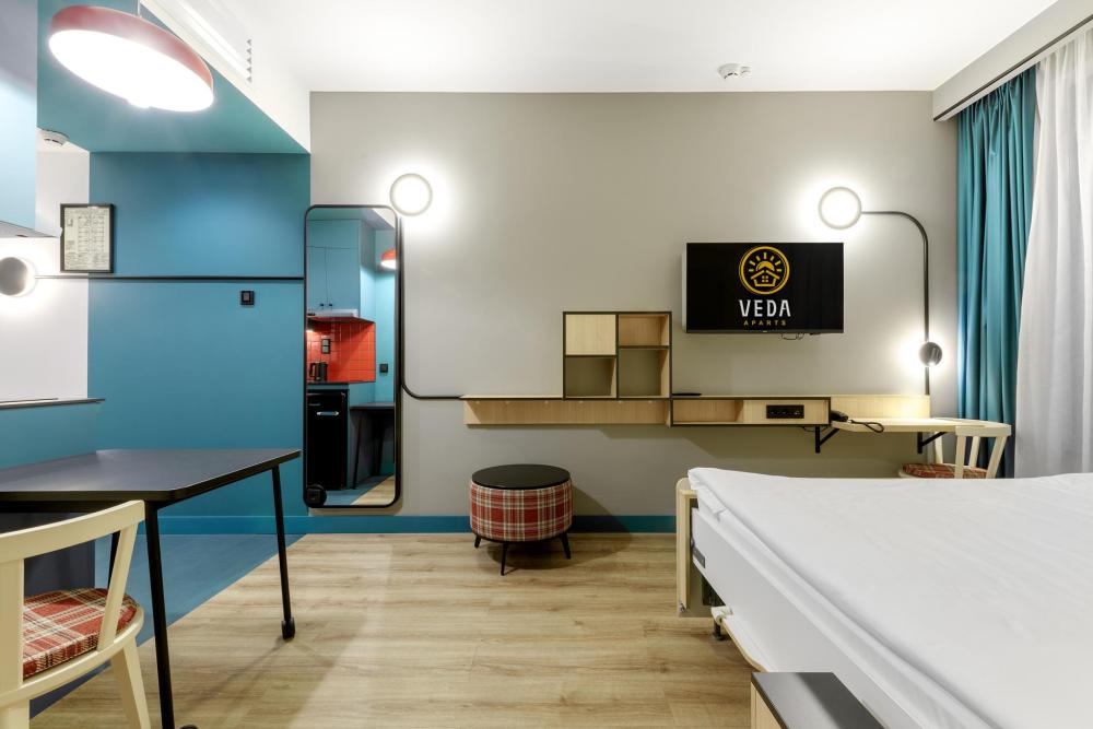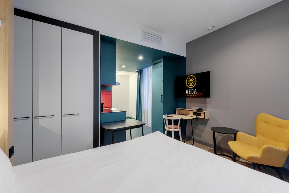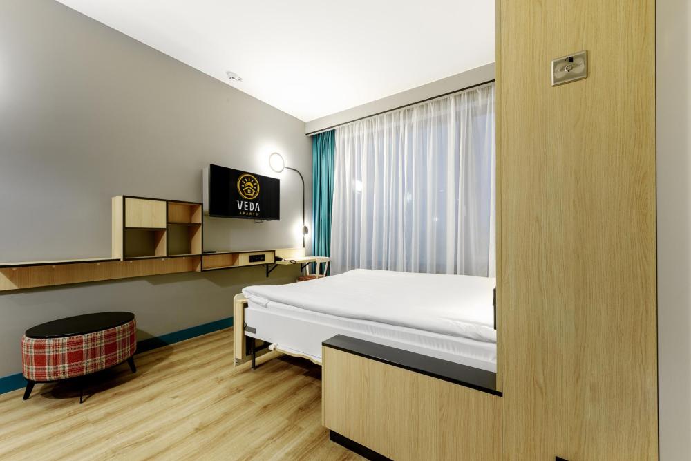 Рады приветствовать Вас в сети «VEDA Aparts» – уют и комфорт в самом сердце Северной столицы! Найти нас легко: Пулковское шоссе, дом 14. Ближайшие станции метро «Московская». Предлагаем Вам апартаменты в современном ЖК Domina Пулково – идеальный выбор для отдыха, и в то же время для проведения насыщенного досуга в центре города. Аэропорт "Пулково" - 10 минут на машине. Отличная локация для бизнес встреч - совсем близко - «Экспофорум» — конгрессно-выставочный центр. (14 минут на машине). Мы позаботились о Вашем удобстве, предоставляя все необходимое для комфортного проживания. Бесплатный Wi-Fi, современный ЖК-телевизор с широким выбором кабельных каналов, а также стиральная машина в индивидуальном пользовании. К Вашим услугам из техники: электрическая плита, духовой шкаф, микроволновая печь, гладильные принадлежности. Окна выходят на улицу. Спальные места - 2: одна двуспальная кровать. Наши правила заботы: • Мы обеспечиваем безопасность системой видеонаблюдения в общих зонах. • Поддержание идеальной чистоты благодаря тщательной уборке. • Для обеспечения Вашего комфорта и безопасности у нас действуют простые правила: курение и размещение с питомцами не допускаются. Количество проживающих гостей должно соответствовать указанному при бронировании. Заезд осуществляется с 14:00, выезд – до 11:00 (возможность раннего заезда или позднего выезда оговаривается индивидуально и оплачивается отдельно). Для заселения необходимо предоставить паспортные данные и адрес регистрации (фото) в соответствии с постановлением правительства РФ № 341 от 20.03.2024. Заселение без документов, удостоверяющих личность, к сожалению, невозможно. Обязательна оплата проживания и страхового депозита в размере 5000 руб., который вносится онлайн (за сохранность имущества, ключей и соблюдение правил проживания). После проверки состояния апартаментов, залог будет возвращен на Вашу карту после 23:00 в день выезда или на следующий рабочий день. В случае нарушения правил проживания, мы вправе удержать залог. Мы предлагаем бесконтактное заселение. После оформления бронирования свяжитесь с нашим администратором по телефону, указанному в ваучере, для получения инструкций. После внесения всех платежей Вам будет предоставлена информация о доступе в апартаменты. Можем предоставить отчетные документы по требованию. Забронируйте сейчас и подарите себе незабываемый отдых в Санкт-Петербурге! Мы гарантируем оптимальное соотношение цены и качества. Наша команда всегда на связи с 10:00 до 22:00 и готова ответить на любые Ваши вопросы. Ваш комфорт – наш приоритет! Будем рады видеть Вас!