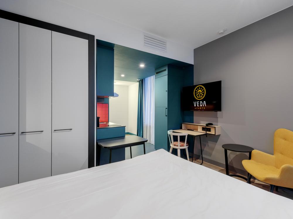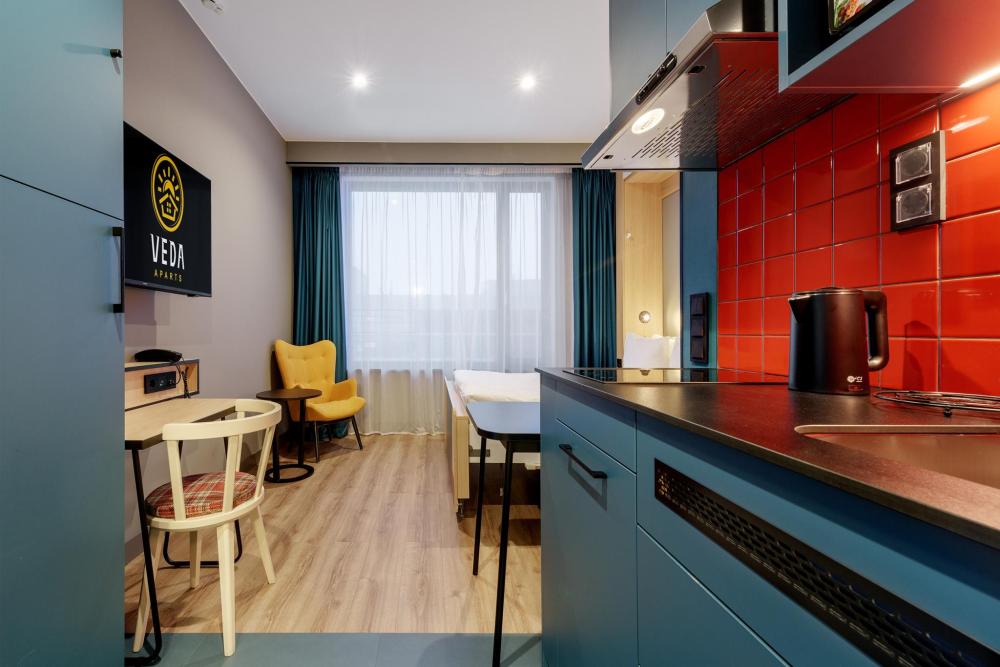 Рады приветствовать Вас в сети «VEDA Aparts» – уют и комфорт в самом сердце Северной столицы! Найти нас легко: Пулковское шоссе, дом 14. Ближайшие станции метро «Московская». Предлагаем Вам апартаменты в современном ЖК Domina Пулково – идеальный выбор для отдыха, и в то же время для проведения насыщенного досуга в центре города. Аэропорт "Пулково" - 10 минут на машине. Отличная локация для бизнес встреч - совсем близко - «Экспофорум» — конгрессно-выставочный центр. (14 минут на машине). Мы позаботились о Вашем удобстве, предоставляя все необходимое для комфортного проживания. Бесплатный Wi-Fi, современный ЖК-телевизор с широким выбором кабельных каналов, а также стиральная машина в индивидуальном пользовании. К Вашим услугам из техники: электрическая плита, духовой шкаф, посудомоечная машина, микроволновая печь, гладильные принадлежности. Окна выходят на улицу. Спальные места - 2: двуспальная кровать. Наши правила заботы: • Мы обеспечиваем безопасность системой видеонаблюдения в общих зонах. • Поддержание идеальной чистоты благодаря тщательной уборке. • Для обеспечения Вашего комфорта и безопасности у нас действуют простые правила: курение и размещение с питомцами не допускаются. Количество проживающих гостей должно соответствовать указанному при бронировании. Заезд осуществляется с 14:00, выезд – до 11:00 (возможность раннего заезда или позднего выезда оговаривается индивидуально и оплачивается отдельно). Для заселения необходимо предоставить паспортные данные и адрес регистрации (фото) в соответствии с постановлением правительства РФ № 341 от 20.03.2024. Заселение без документов, удостоверяющих личность, к сожалению, невозможно. Обязательна оплата проживания и страхового депозита в размере 5000 руб., который вносится онлайн (за сохранность имущества, ключей и соблюдение правил проживания). После проверки состояния апартаментов, залог будет возвращен на Вашу карту после 23:00 в день выезда или на следующий рабочий день. В случае нарушения правил проживания, мы вправе удержать залог. Мы предлагаем бесконтактное заселение. После оформления бронирования свяжитесь с нашим администратором по телефону, указанному в ваучере, для получения инструкций. После внесения всех платежей Вам будет предоставлена информация о доступе в апартаменты. Можем предоставить отчетные документы по требованию. Забронируйте сейчас и подарите себе незабываемый отдых в Санкт-Петербурге! Мы гарантируем оптимальное соотношение цены и качества. Наша команда всегда на связи с 10:00 до 22:00 и готова ответить на любые Ваши вопросы. Ваш комфорт – наш приоритет! Будем рады видеть Вас!