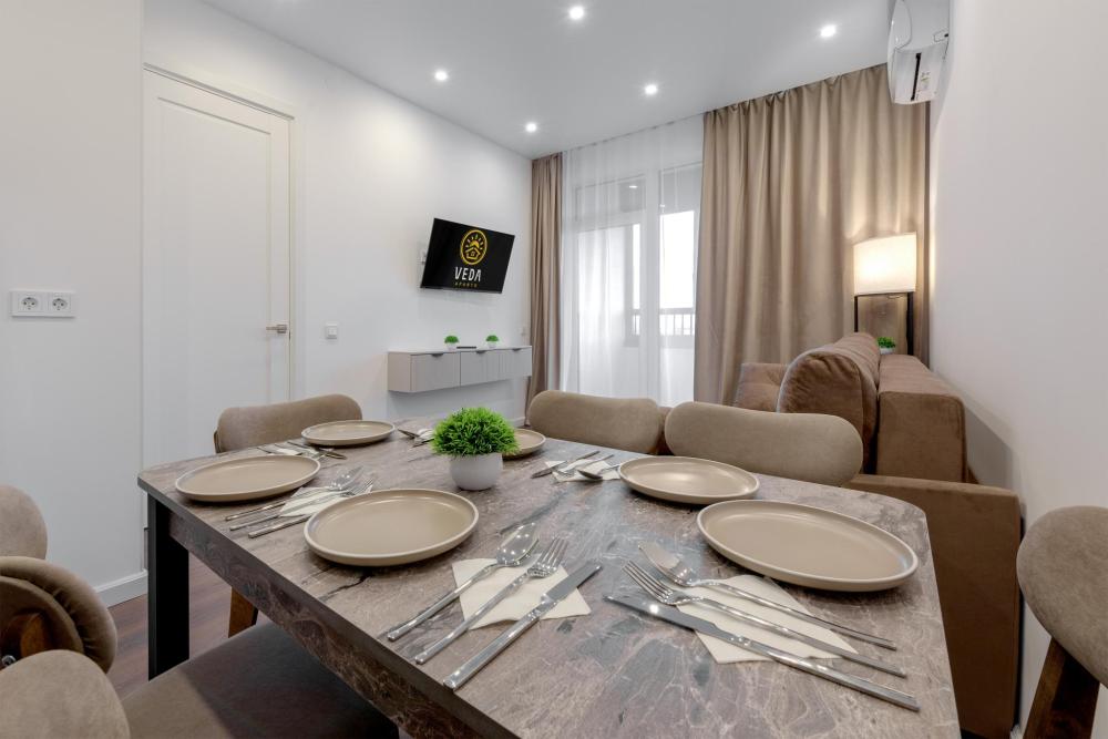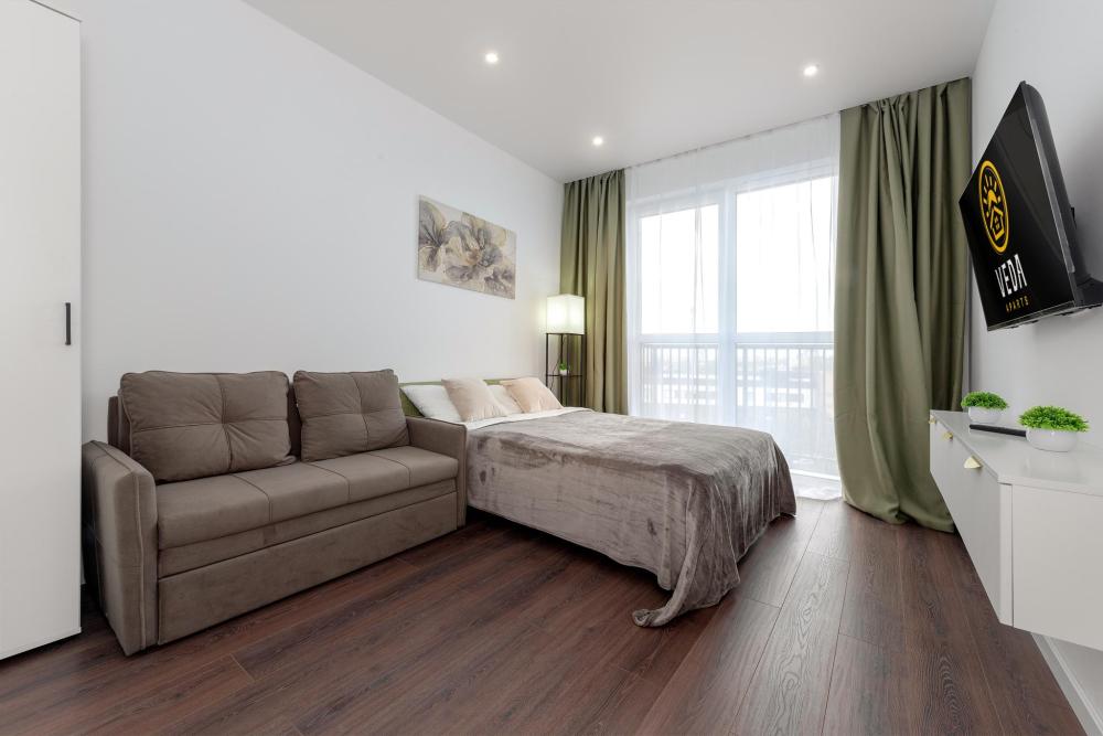 Рады приветствовать Вас в сети «VEDA Aparts» – уют и комфорт в самом сердце Северной столицы! Найти нас легко: Проспект Энергетиков, д 2, к 1, стр 1 Ближайшие станции метро «Ладожская». Предлагаем Вам двухкомнатную квартиру планировки «евро» в современном ЖК. Мы позаботились о Вашем удобстве, предоставляя все необходимое для комфортного проживания. Бесплатный Wi-Fi, современный ЖК-телевизор с широким выбором кабельных каналов, а также стиральная и сушильная машины в индивидуальном пользовании. К Вашим услугам из техники: электрическая плита, микроволновая печь, гладильные принадлежности, фен. Есть застекленный балкон - лоджия и открытый балкон. Окна выходят на улицу. Спальные места - 6: двуспальная кровать, двуспальный раскладной диван-кровать - в спальне. И двуспальный раскладной диван-кровать в кухне-гостиной. Наши правила заботы: • Мы обеспечиваем безопасность системой видеонаблюдения в общих зонах. • Поддержание идеальной чистоты благодаря тщательной уборке. • Для обеспечения Вашего комфорта и безопасности у нас действуют простые правила: курение и размещение с питомцами не допускаются. Количество проживающих гостей должно соответствовать указанному при бронировании. Заезд осуществляется с 14:00, выезд – до 11:00 (возможность раннего заезда или позднего выезда оговаривается индивидуально и оплачивается отдельно). Для заселения необходимо предоставить паспортные данные и адрес регистрации (фото) в соответствии с постановлением правительства РФ № 341 от 20.03.2024. Заселение без документов, удостоверяющих личность, к сожалению, невозможно. Обязательна оплата проживания и страхового депозита в размере 5000 руб., который вносится онлайн переводом (за сохранность имущества, ключей и соблюдение правил проживания). После проверки состояния апартаментов, залог будет возвращен на Вашу карту после 23:00 в день выезда или на следующий рабочий день. В случае нарушения правил проживания, мы вправе удержать залог. Мы предлагаем бесконтактное заселение. После оформления бронирования свяжитесь с нашим администратором по телефону, указанному в ваучере, для получения инструкций. После внесения всех платежей Вам будет предоставлена информация о доступе в апартаменты. Можем предоставить отчетные документы по требованию. Забронируйте сейчас и подарите себе незабываемый отдых в Санкт-Петербурге! Мы гарантируем оптимальное соотношение цены и качества. Наша команда всегда на связи с 10:00 до 22:00 и готова ответить на любые Ваши вопросы. Ваш комфорт – наш приоритет! Будем рады видеть Вас!