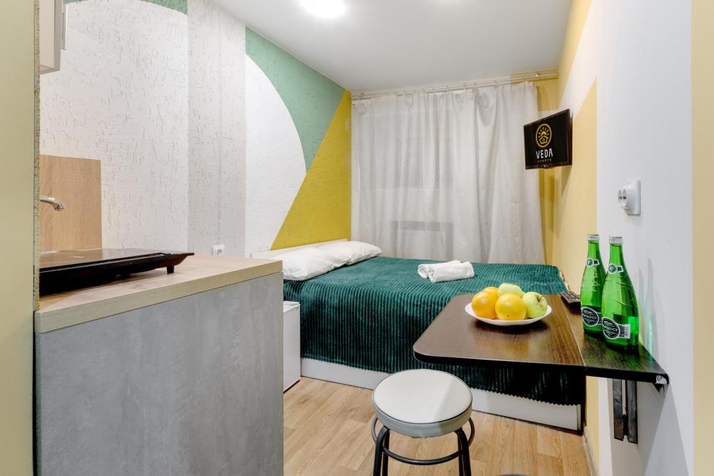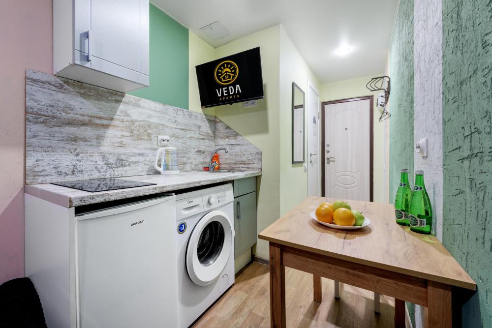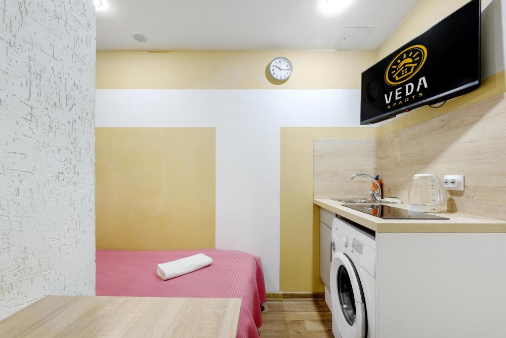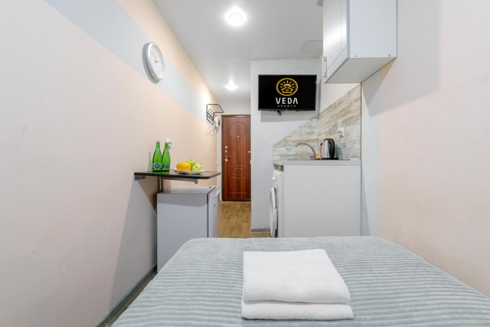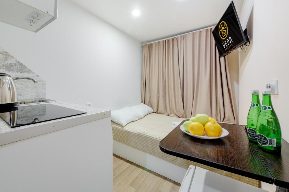 Рады приветствовать Вас в Апартаментах «VEDA Aparts» – уют и комфорт в самом сердце Северной столицы! Найти нас легко: улица Рузовская, 33. В шаговой доступности расположены станция метро «Технологический институт», «Пушкинская», «Звенигородская» Наши апартаменты – идеальный выбор. Для отдыха, и в то же время для проведения насыщенного досуга в центре города. Мы позаботились о Вашем удобстве, предоставляя все необходимое для комфортного проживания. Бесплатный Wi-Fi, современный ЖК-телевизор с широким выбором кабельных каналов, а также стиральная машина в индивидуальном пользовании. Каждая студия оборудована собственной ванной комнатой и мини-кухней, где Вы найдете все необходимое для кулинарных экспериментов. К Вашим услугам также гладильные принадлежности и микроволновая печь, находящиеся в общем доступе. Обращаем ваше внимание: в студии НЕТ окна. Наши правила заботы: • Мы обеспечиваем безопасность системой видеонаблюдения в общих зонах. • Поддержание идеальной чистоты благодаря тщательной уборке. • Для обеспечения Вашего комфорта и безопасности у нас действуют простые правила: курение и размещение с питомцами не допускаются. Количество проживающих гостей должно соответствовать указанному при бронировании. Заезд осуществляется с 14:00, выезд – до 11:00 (возможность раннего заезда или позднего выезда оговаривается индивидуально и оплачивается отдельно). Для заселения необходимо предоставить паспортные данные и адрес регистрации (фото) в соответствии с постановлением правительства РФ № 341 от 20.03.2024. Заселение без документов, удостоверяющих личность, к сожалению, невозможно. Обязательна оплата проживания и страхового депозита в размере 2000 руб., который вносится онлайн переводом (за сохранность имущества, ключей и соблюдение правил проживания). После проверки состояния апартаментов, залог будет возвращен на Вашу карту после 23:00 в день выезда или на следующий рабочий день. В случае нарушения правил проживания, мы вправе удержать залог. Мы предлагаем бесконтактное заселение. После оформления бронирования свяжитесь с нашим администратором по телефону, указанному в ваучере, для получения инструкций. После внесения всех платежей Вам будет предоставлена информация о доступе в апартаменты. Можем предоставить отчетные документы по требованию. Забронируйте сейчас и подарите себе незабываемый отдых в Санкт-Петербурге! Мы гарантируем оптимальное соотношение цены и качества. Наша команда всегда на связи с 10:00 до 22:00 и готова ответить на любые Ваши вопросы. Ваш комфорт – наш приоритет! Будем рады видеть Вас!