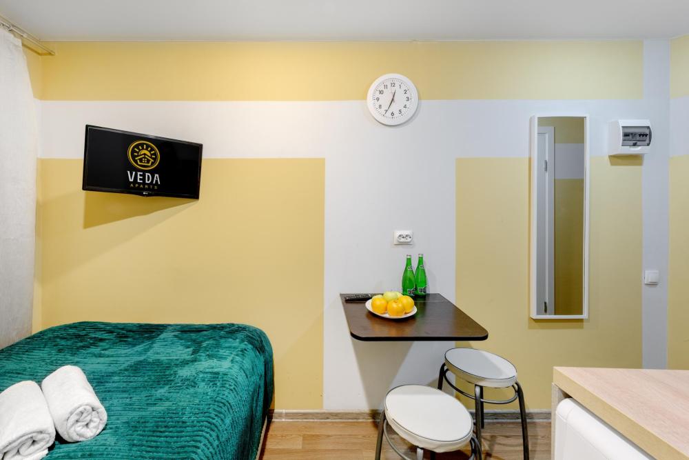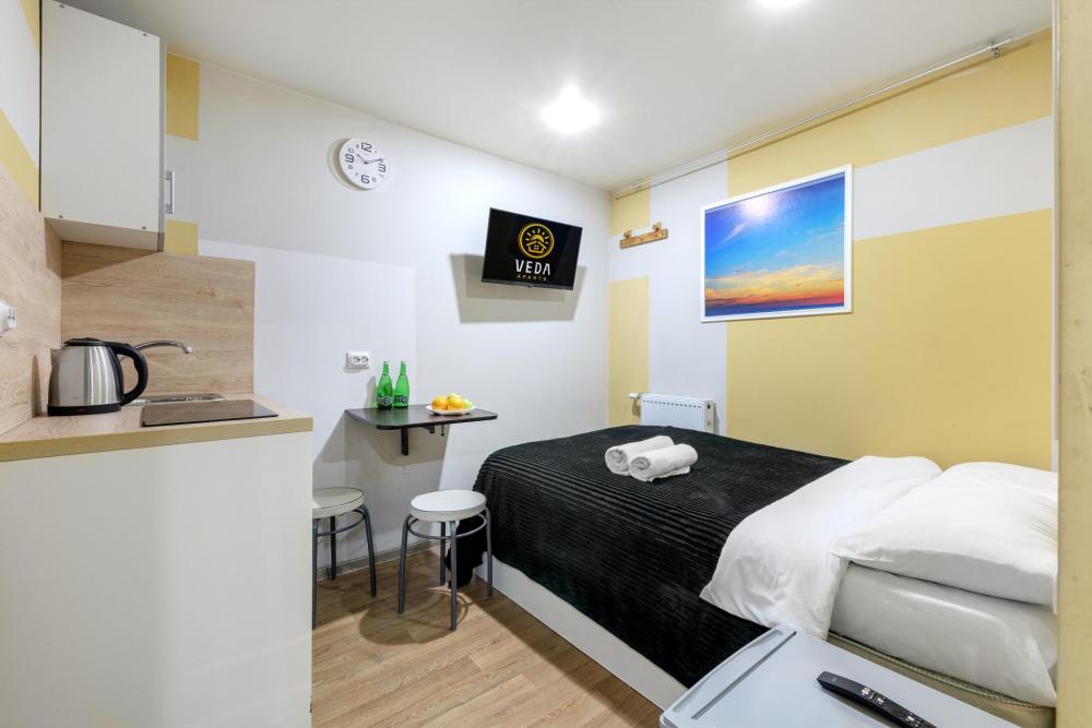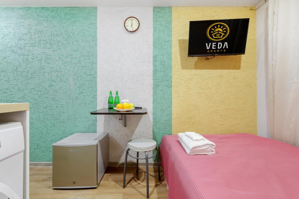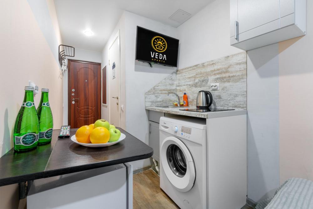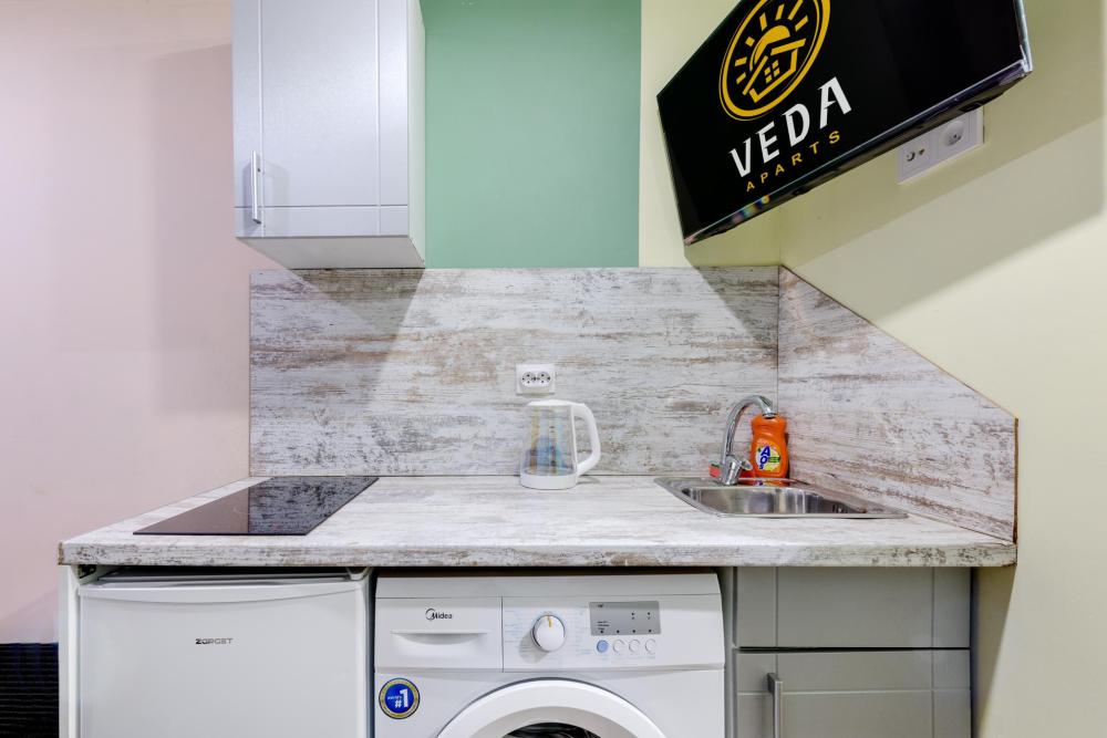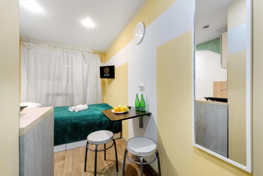 Рады приветствовать Вас в Апартаментах «VEDA Aparts» – уют и комфорт в самом сердце Северной столицы! Найти нас легко: улица Рузовская, 33. В шаговой доступности расположены станция метро «Технологический институт», «Пушкинская», «Звенигородская» Наши апартаменты – идеальный выбор. Для отдыха, и в то же время для проведения насыщенного досуга в центре города. Мы позаботились о Вашем удобстве, предоставляя все необходимое для комфортного проживания. Бесплатный Wi-Fi, современный ЖК-телевизор с широким выбором кабельных каналов, а также стиральная машина в индивидуальном пользовании. Каждая студия оборудована собственной ванной комнатой и мини-кухней, где Вы найдете все необходимое для кулинарных экспериментов. К Вашим услугам также гладильные принадлежности и микроволновая печь, находящиеся в общем доступе. Обращаем ваше внимание: в студии НЕТ окна. Наши правила заботы: • Мы обеспечиваем безопасность системой видеонаблюдения в общих зонах. • Поддержание идеальной чистоты благодаря тщательной уборке. • Для обеспечения Вашего комфорта и безопасности у нас действуют простые правила: курение и размещение с питомцами не допускаются. Количество проживающих гостей должно соответствовать указанному при бронировании. Заезд осуществляется с 14:00, выезд – до 11:00 (возможность раннего заезда или позднего выезда оговаривается индивидуально и оплачивается отдельно). Для заселения необходимо предоставить паспортные данные и адрес регистрации (фото) в соответствии с постановлением правительства РФ № 341 от 20.03.2024. Заселение без документов, удостоверяющих личность, к сожалению, невозможно. Обязательна оплата проживания и страхового депозита в размере 2000 руб., который вносится онлайн переводом (за сохранность имущества, ключей и соблюдение правил проживания). После проверки состояния апартаментов, залог будет возвращен на Вашу карту после 23:00 в день выезда или на следующий рабочий день. В случае нарушения правил проживания, мы вправе удержать залог. Мы предлагаем бесконтактное заселение. После оформления бронирования свяжитесь с нашим администратором по телефону, указанному в ваучере, для получения инструкций. После внесения всех платежей Вам будет предоставлена информация о доступе в апартаменты. Можем предоставить отчетные документы по требованию. Забронируйте сейчас и подарите себе незабываемый отдых в Санкт-Петербурге! Мы гарантируем оптимальное соотношение цены и качества. Наша команда всегда на связи с 10:00 до 22:00 и готова ответить на любые Ваши вопросы. Ваш комфорт – наш приоритет! Будем рады видеть Вас!
